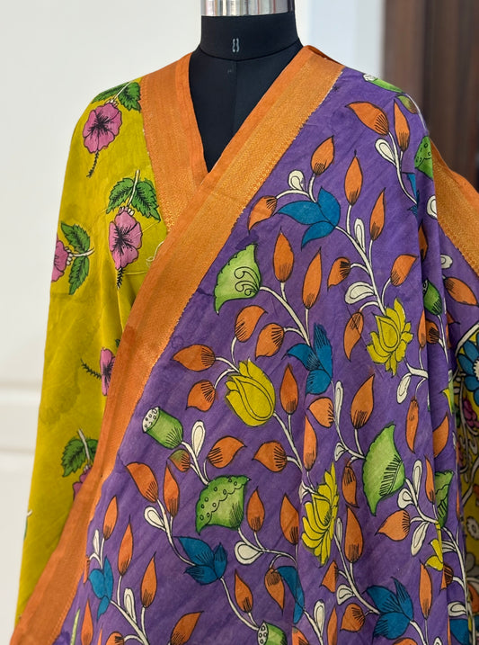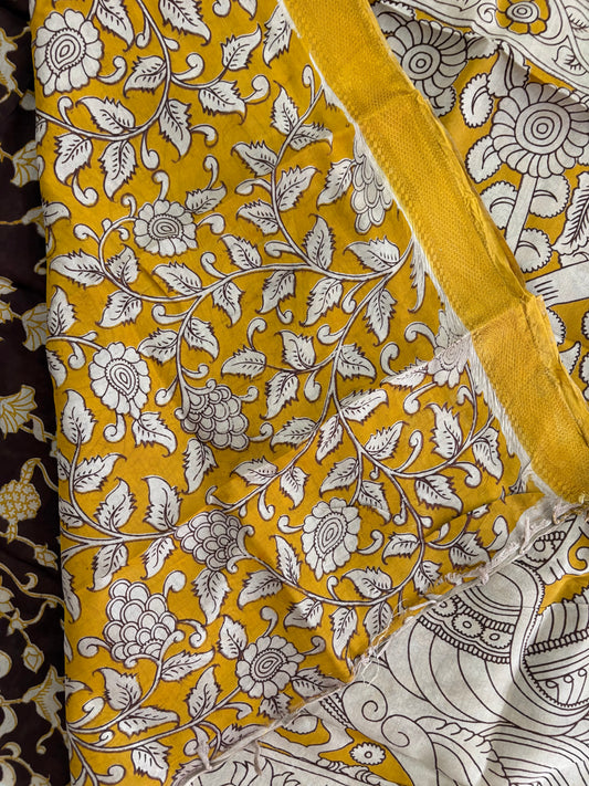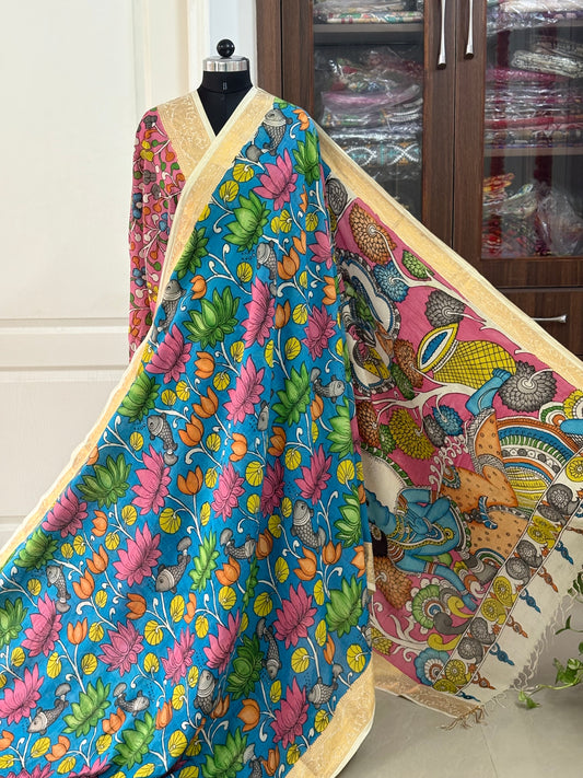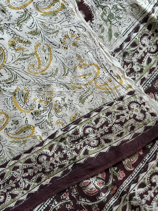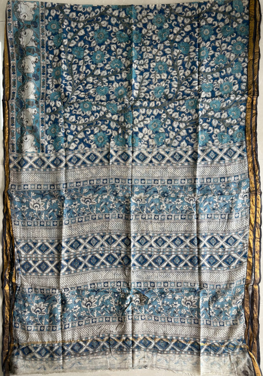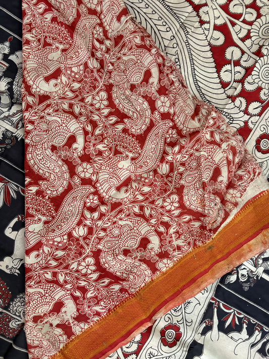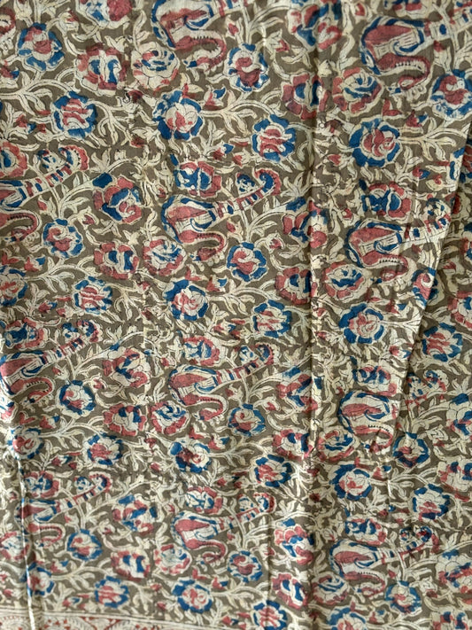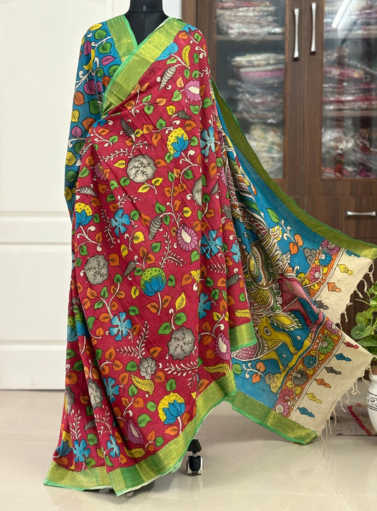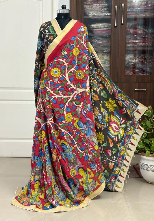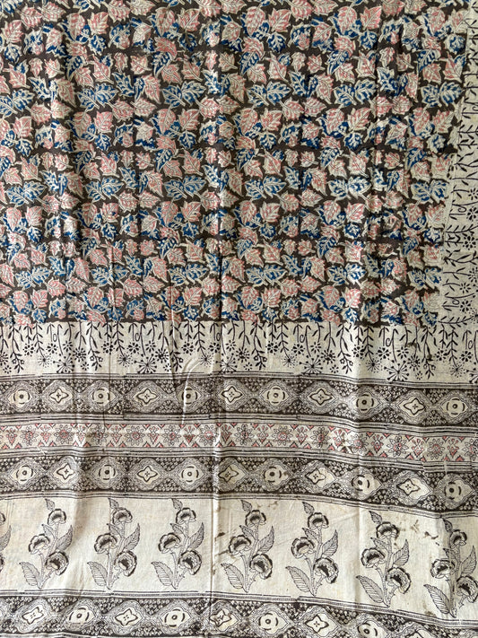 Pen Kalamkari hand painted pure cotton Saree with blouse