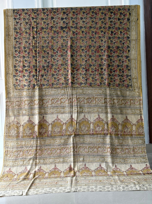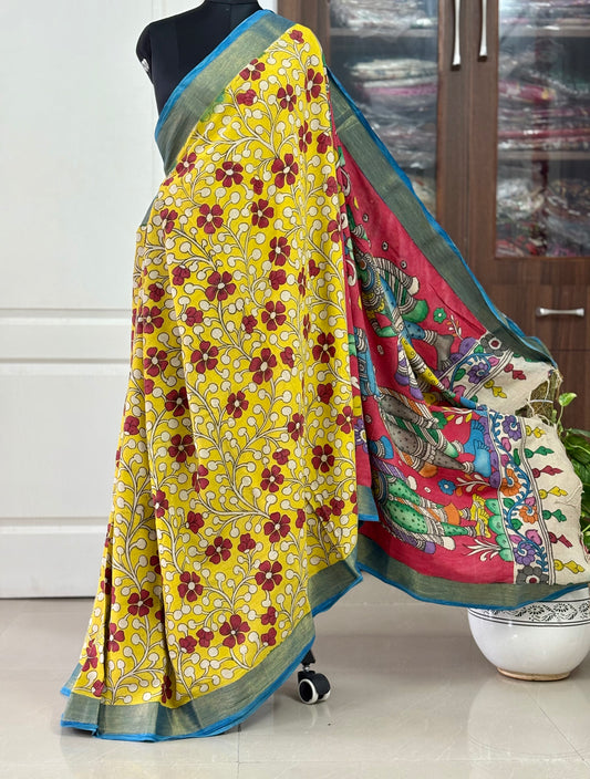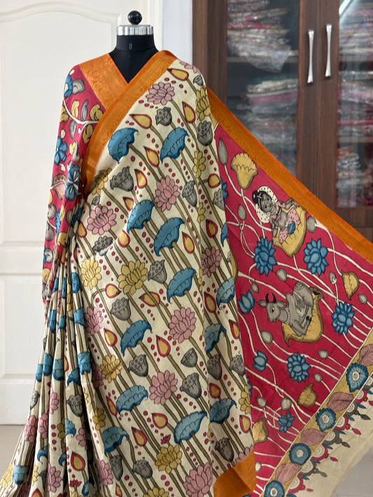 Pen Kalamkari hand painted Banglore Silk Saree with blouse