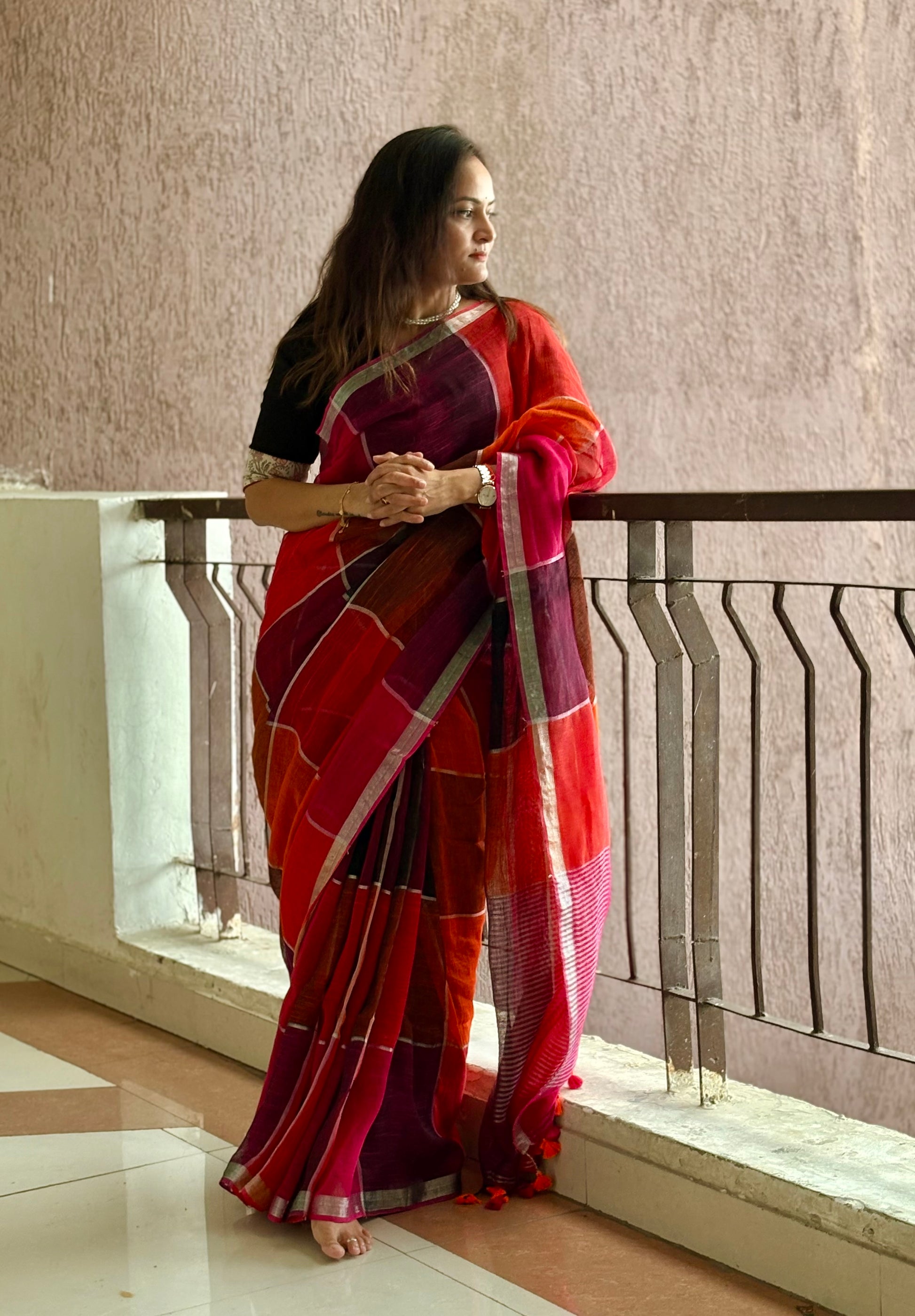 “Beautiful, Linen By Linen Saree . Pallu Accessorized With Beautiful Tassels.