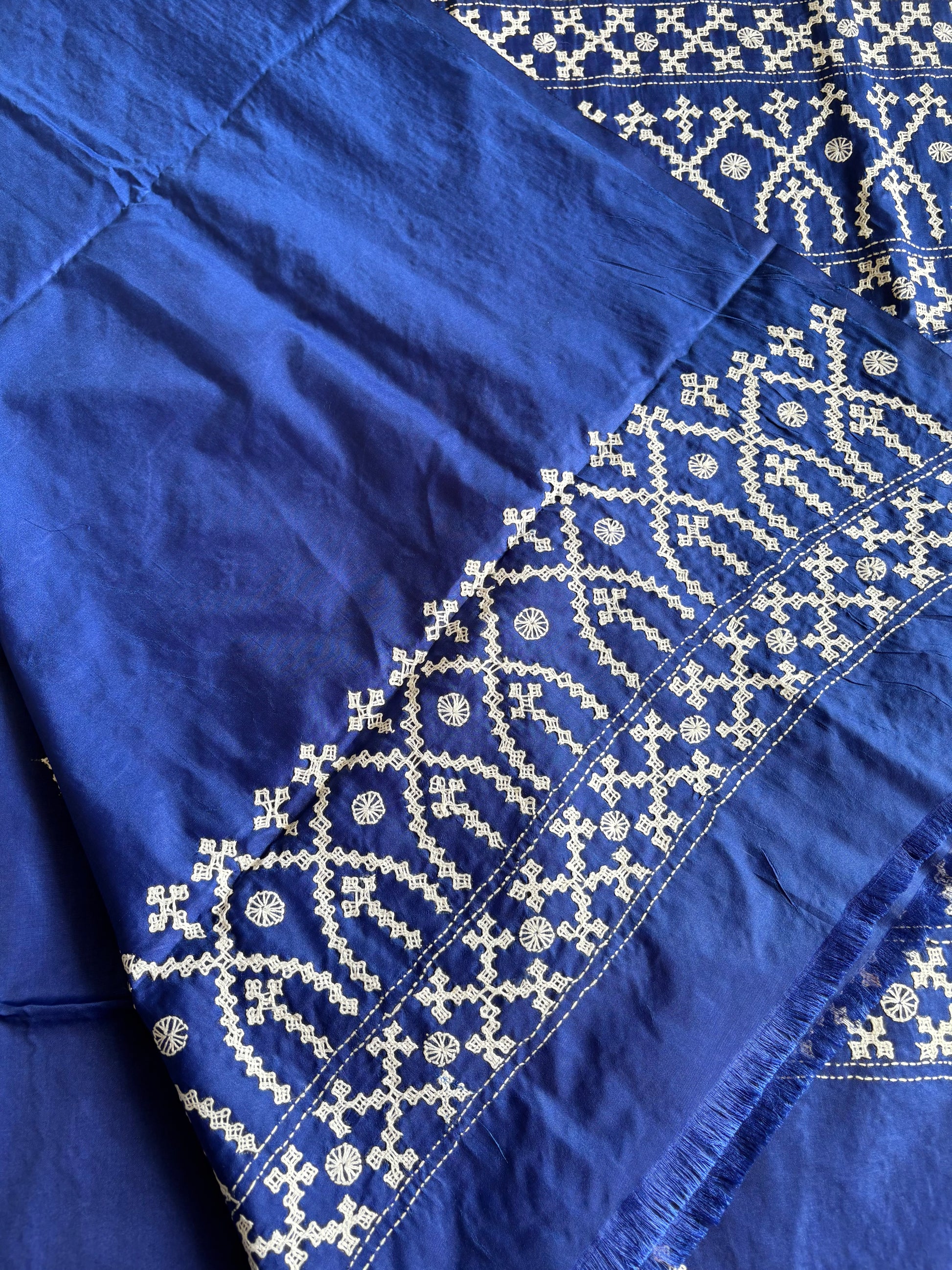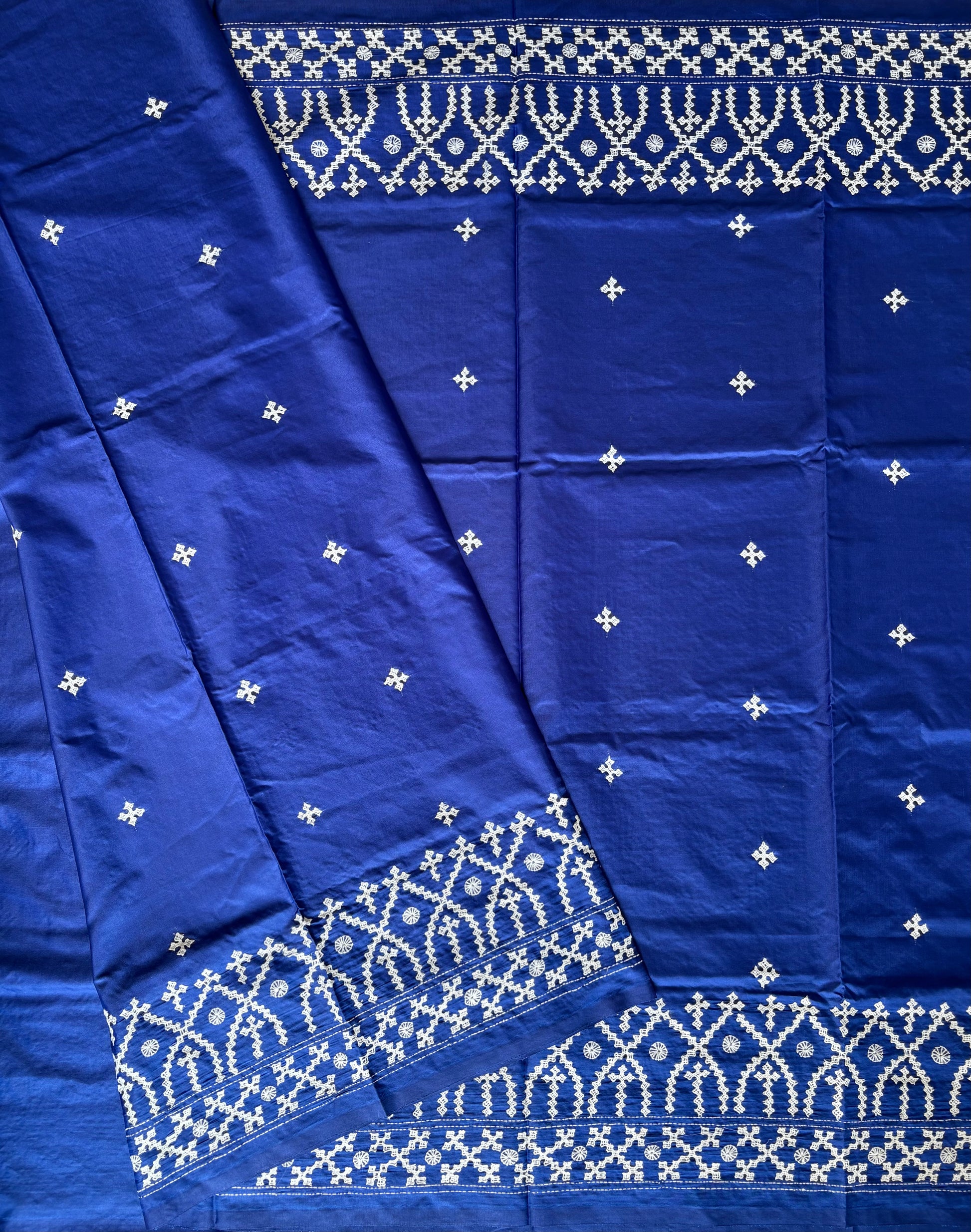 “Gujrati Stitch/Kutch Hand Embroidered Art Silk Saree.