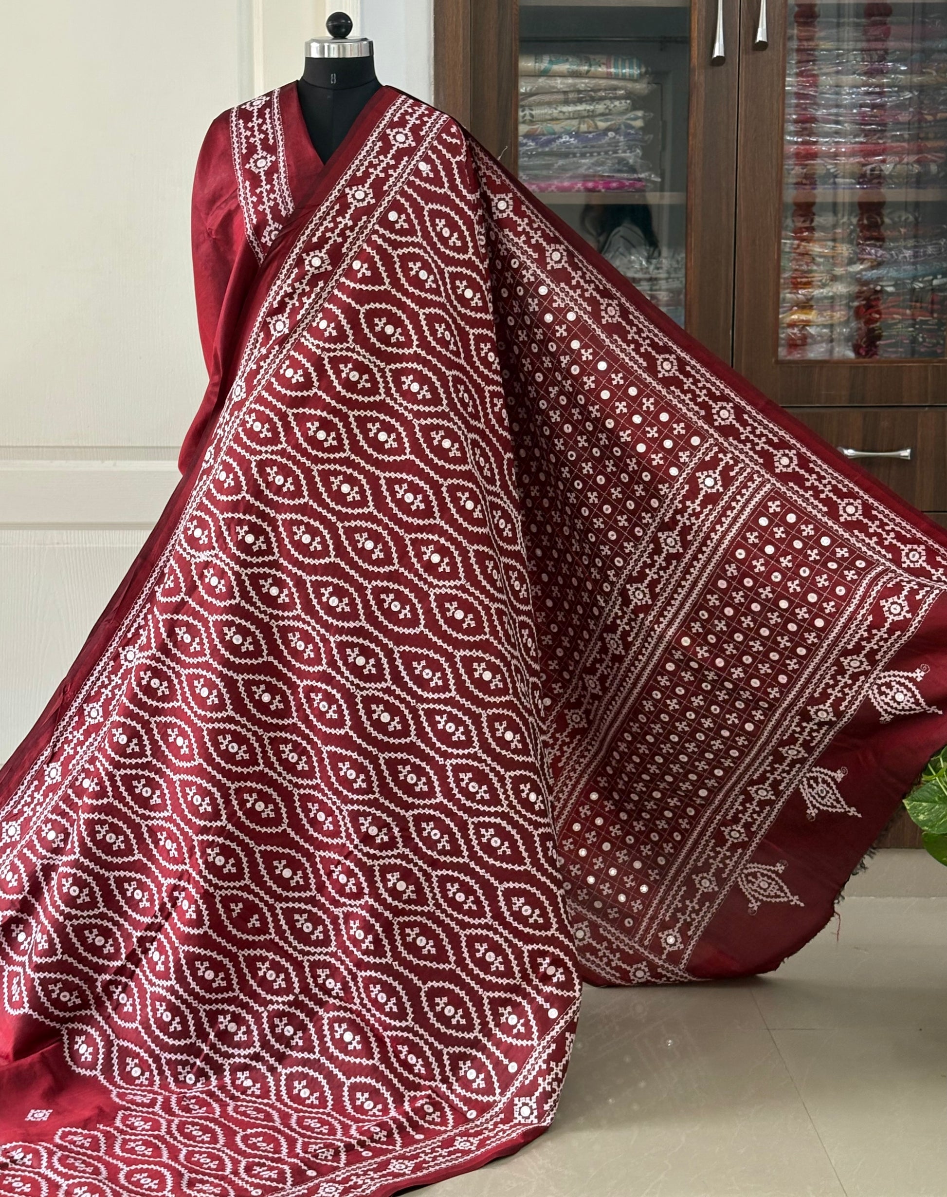 “Kutch Hand Embroidered Pure Banglore Silk Saree.”