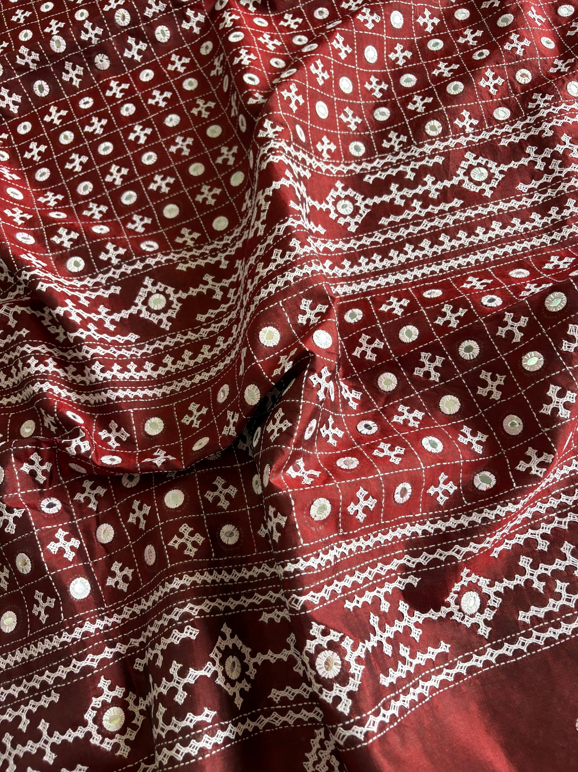 Kutch Hand Embroidered Pure Banglore Silk Saree