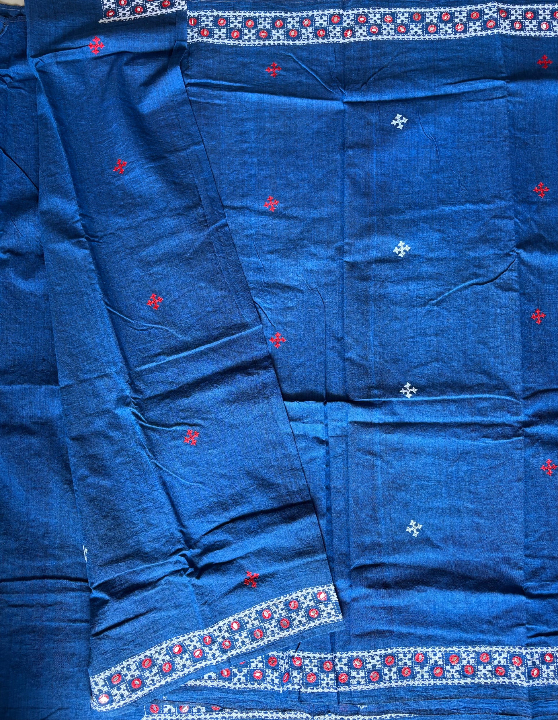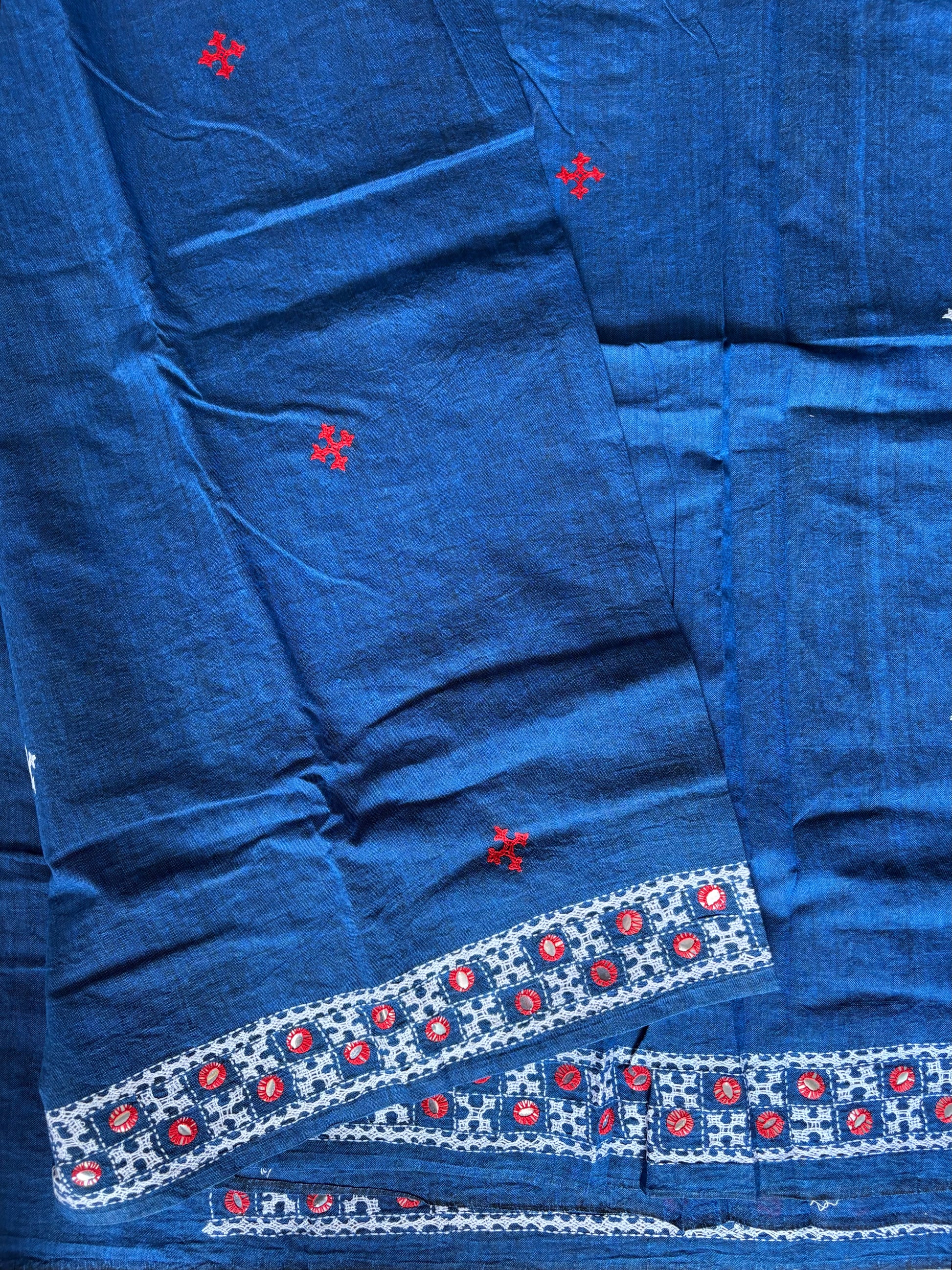 Gujrati Stitch/Kutch Hand Embroidered pure Cotton Saree