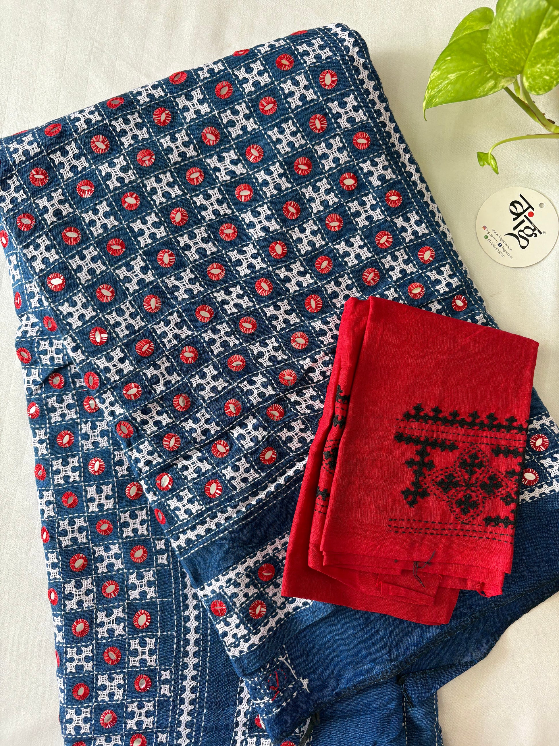 “Gujrati Stitch/Kutch Hand Embroidered South Cotton Saree with blouse.