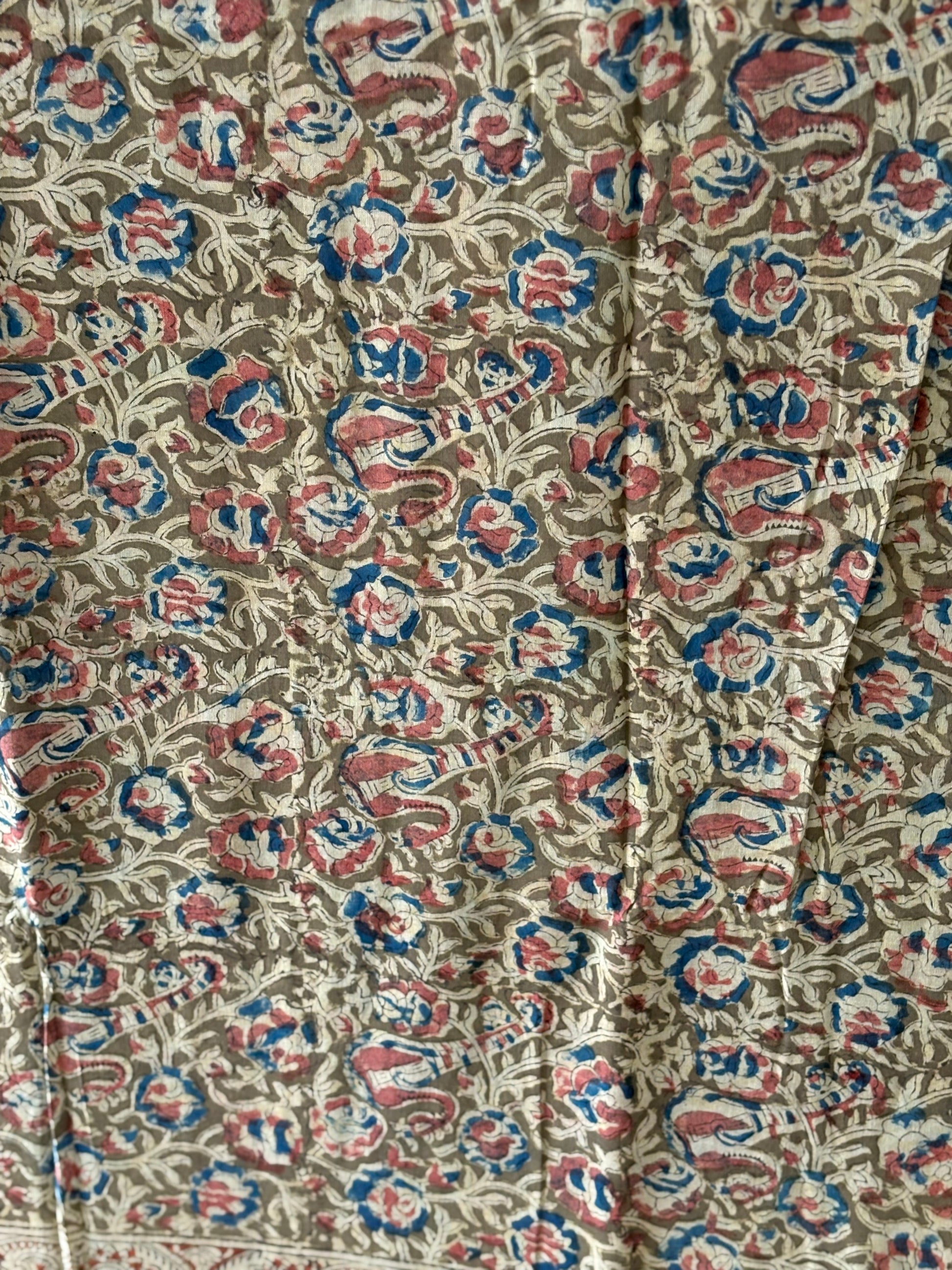 Kalamkari printed malmal cotton Saree with blouse