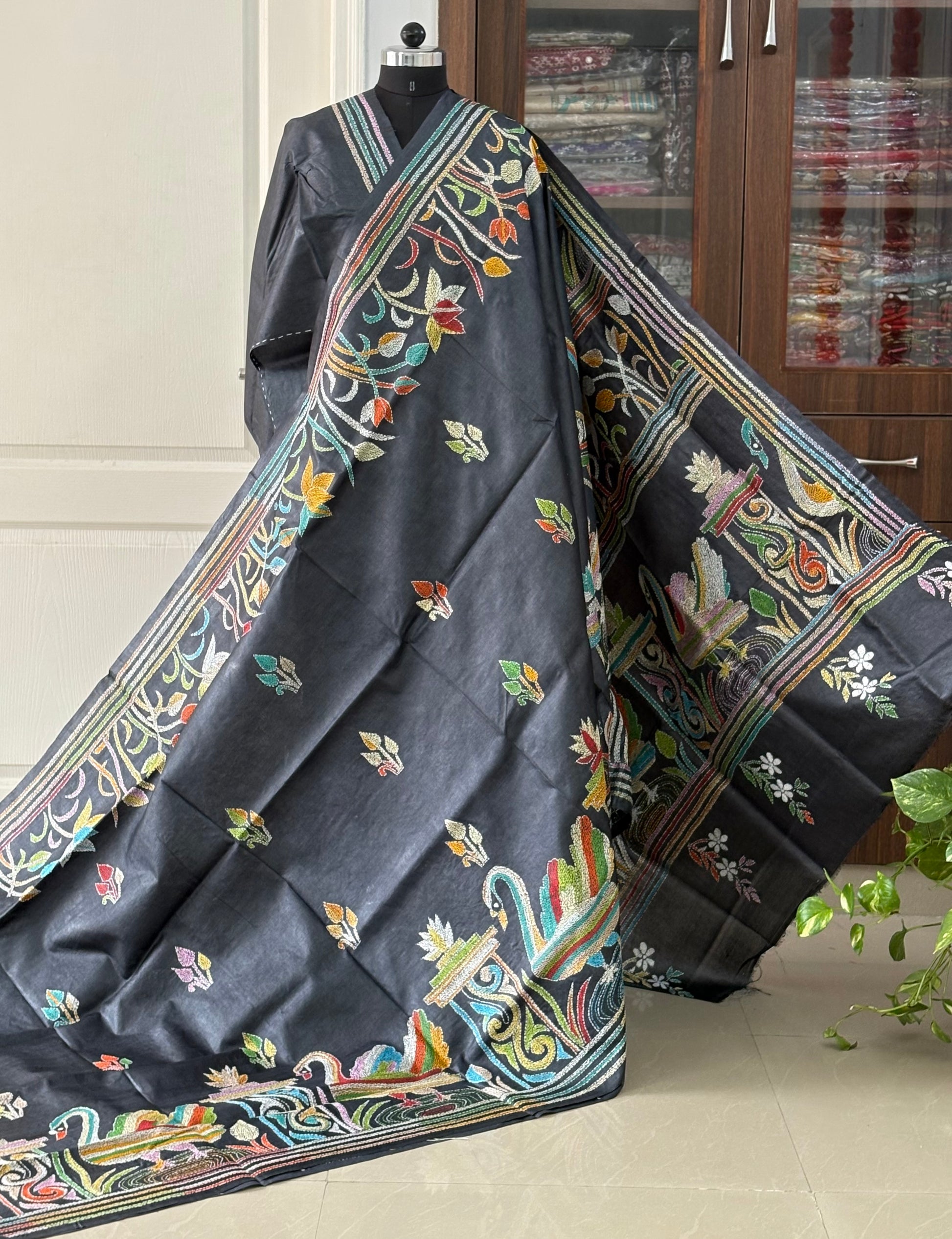 Kantha Hand Embroidered Pure Tussar Silk Saree
