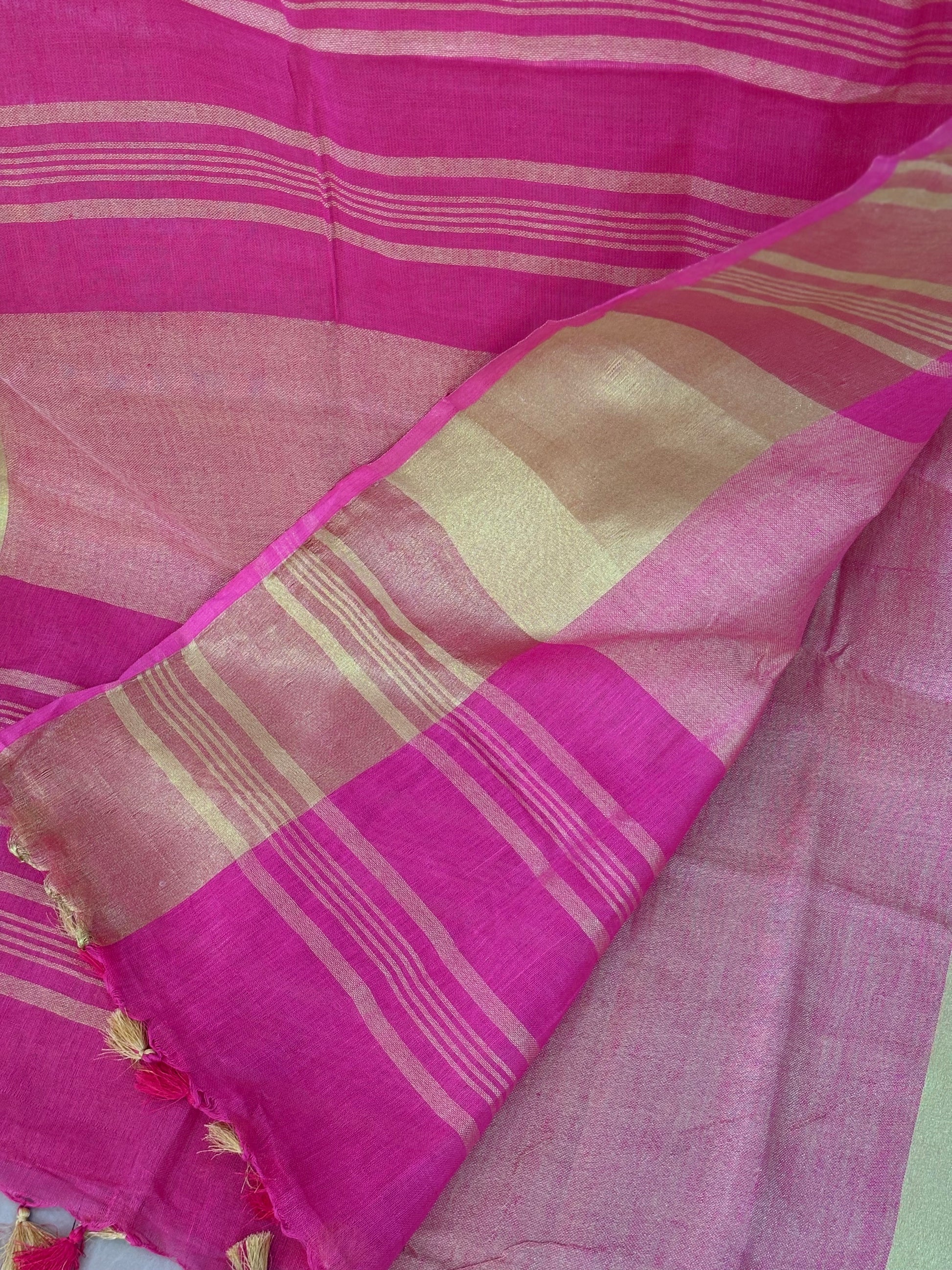 “Beautiful, Linen By Linen Saree With Blouse. Pallu Accessorized With Beautiful Tassels.