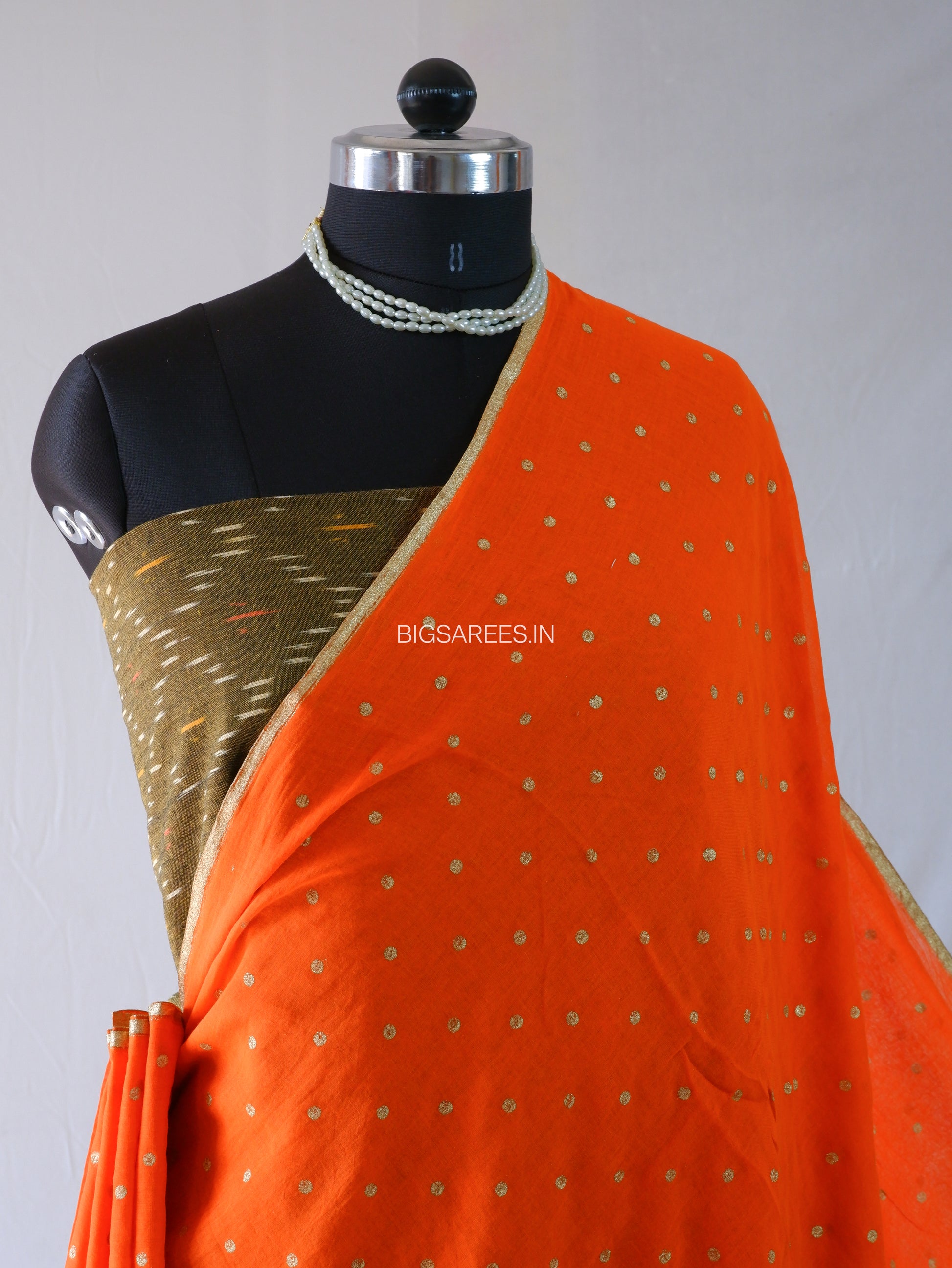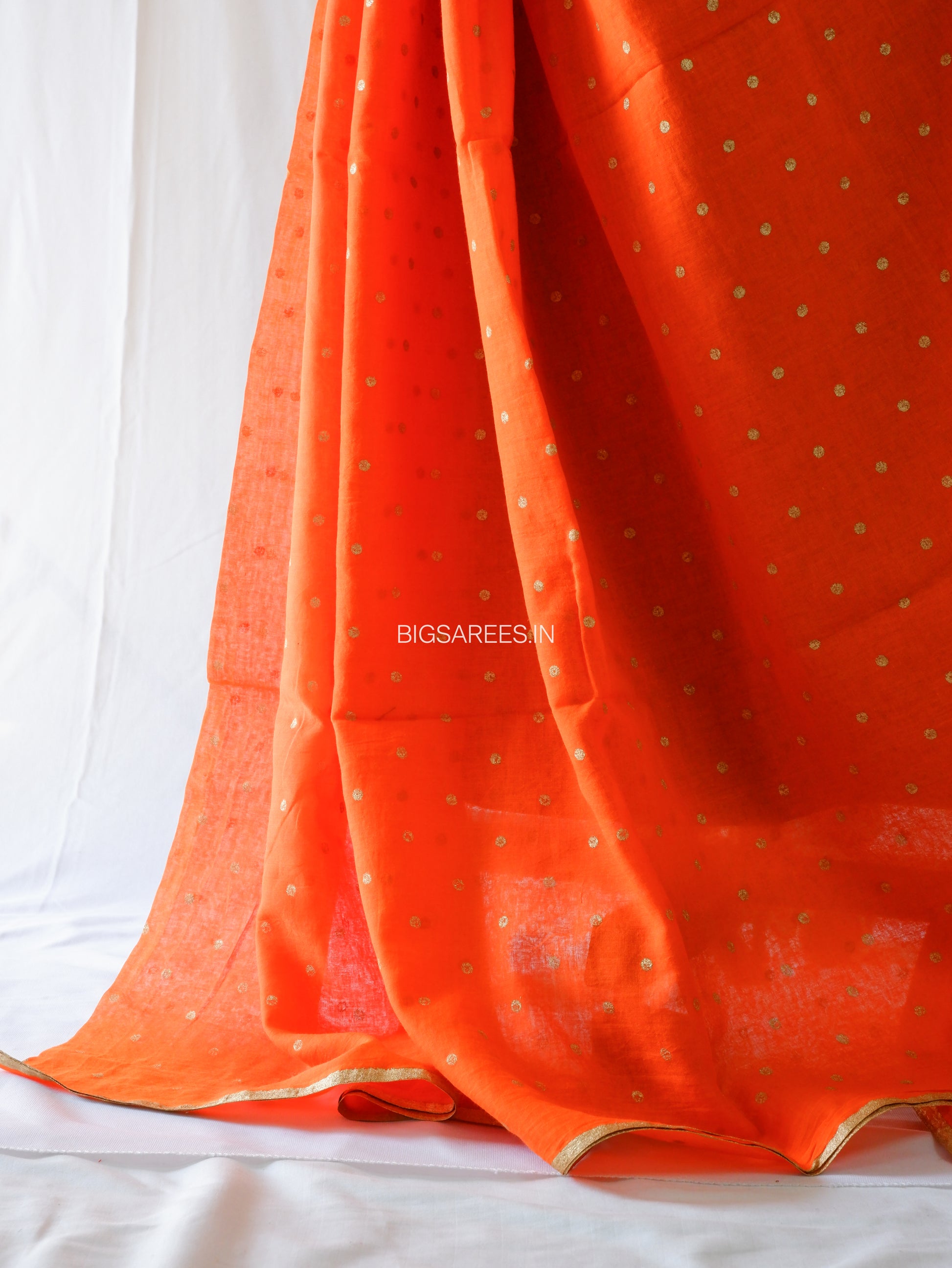 Polka Dot Saree With Blouse | Mul Cotton | Orange