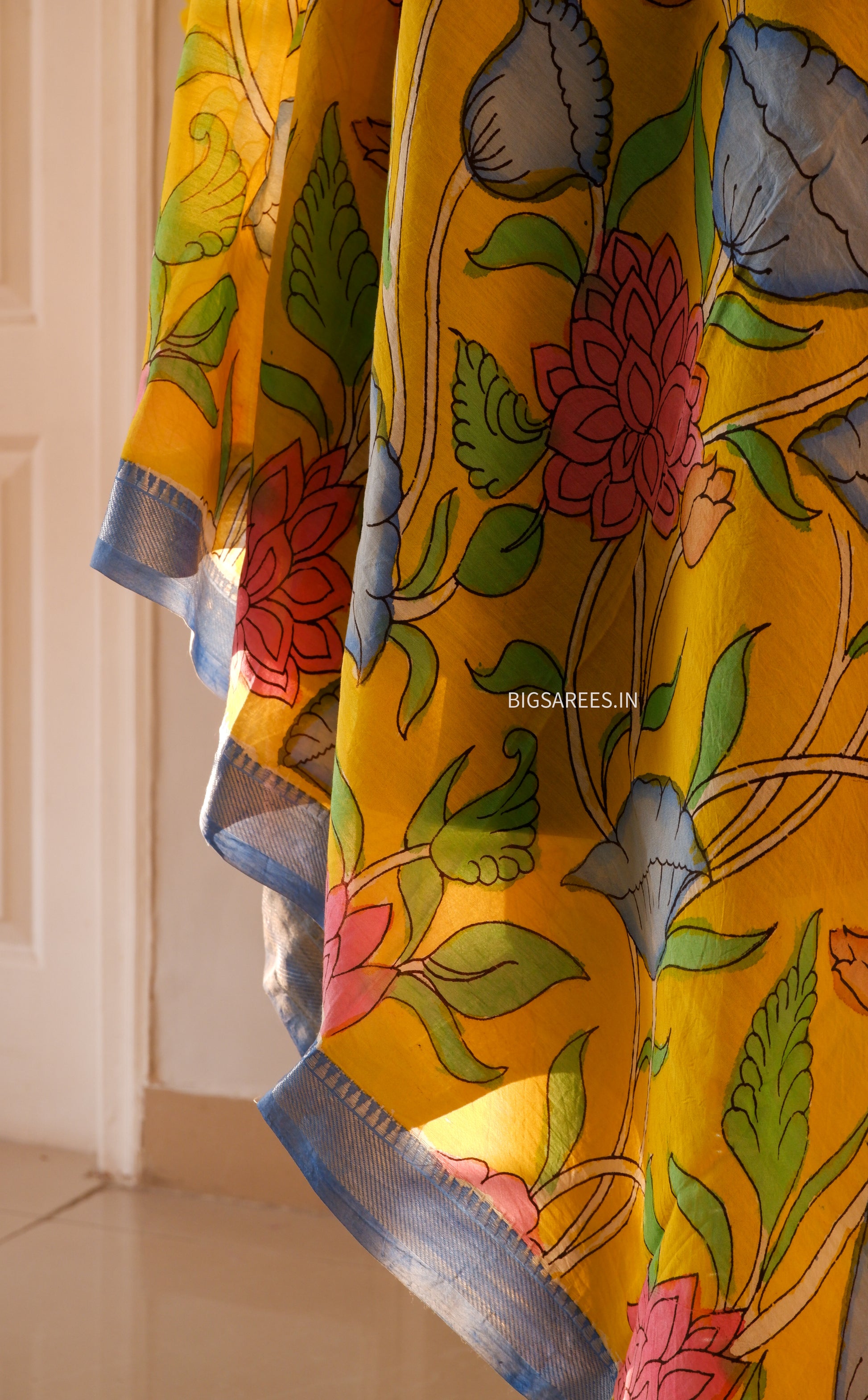 This Pen Kalamkari dupatta on Bangalore silk is a refined expression of hand-painted artistry rooted in tradition. Each motif is carefully drawn using a traditional kalam (pen), making every piece one of a kind.