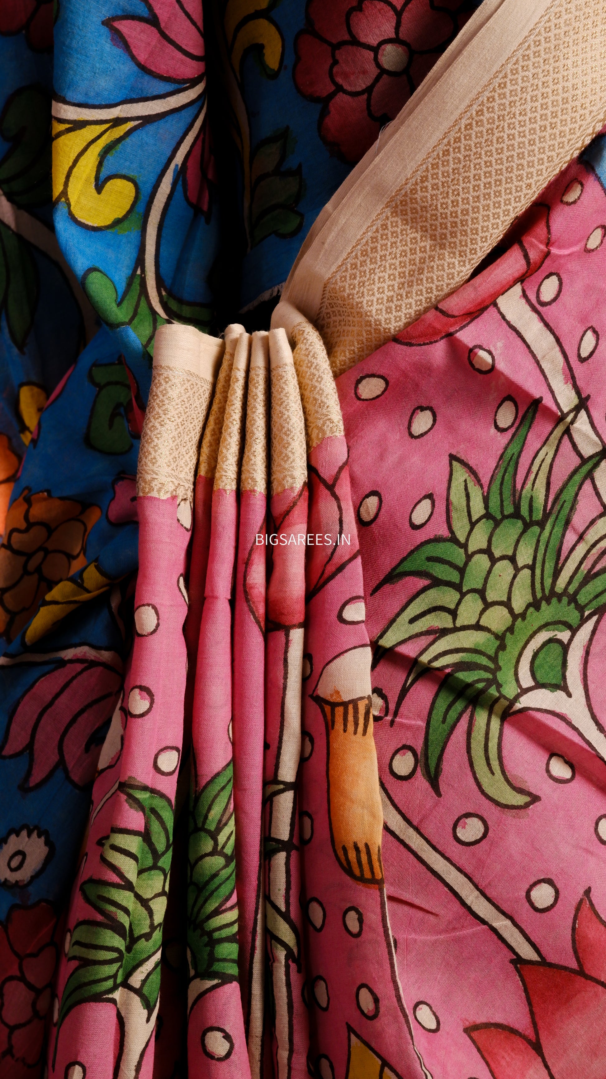 Pen Kalamkari hand painted pure cotton Saree with blouse