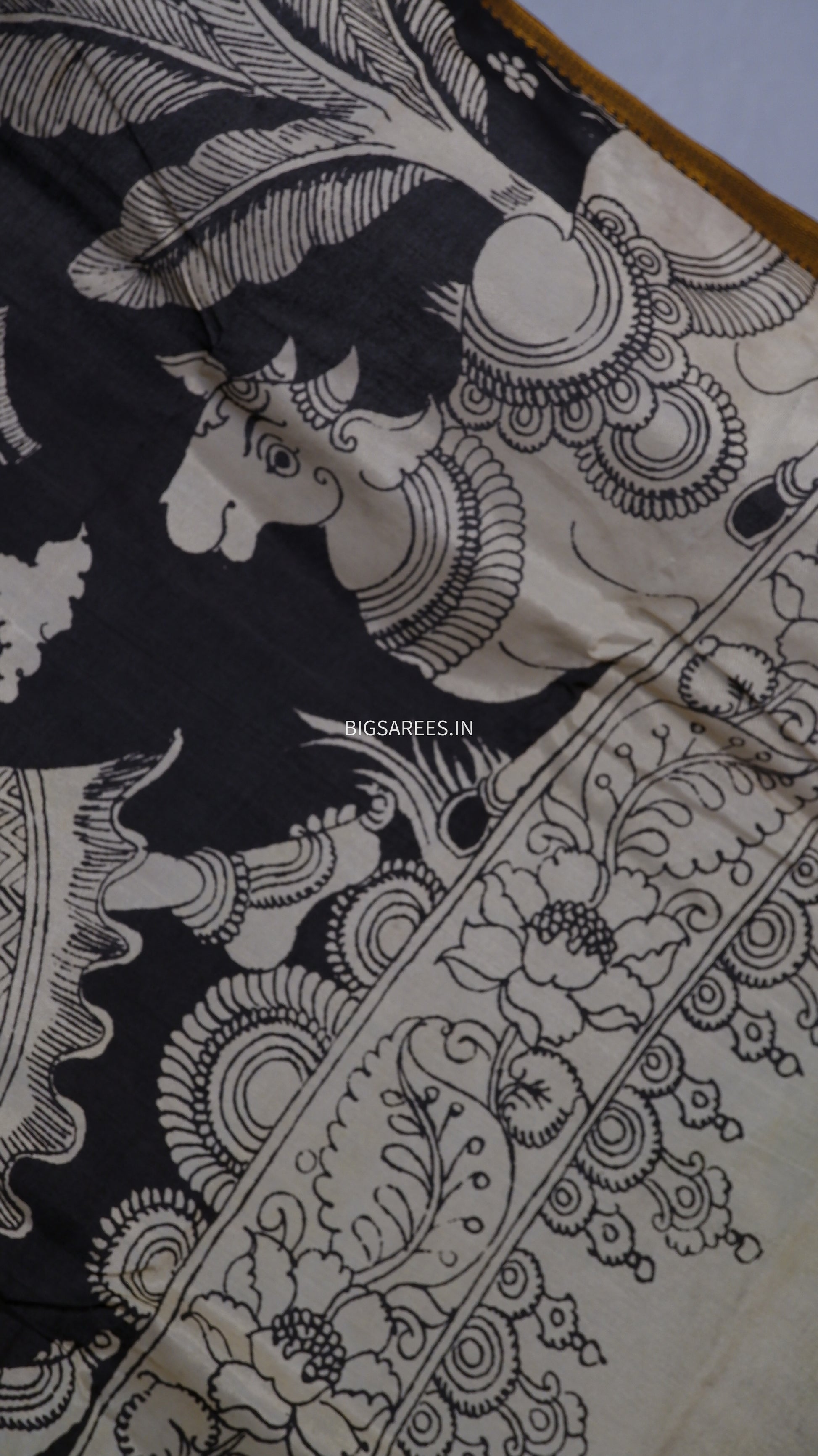 Hand-Painted Pen Kalamkari Saree in Pure Mangalgiri Silk