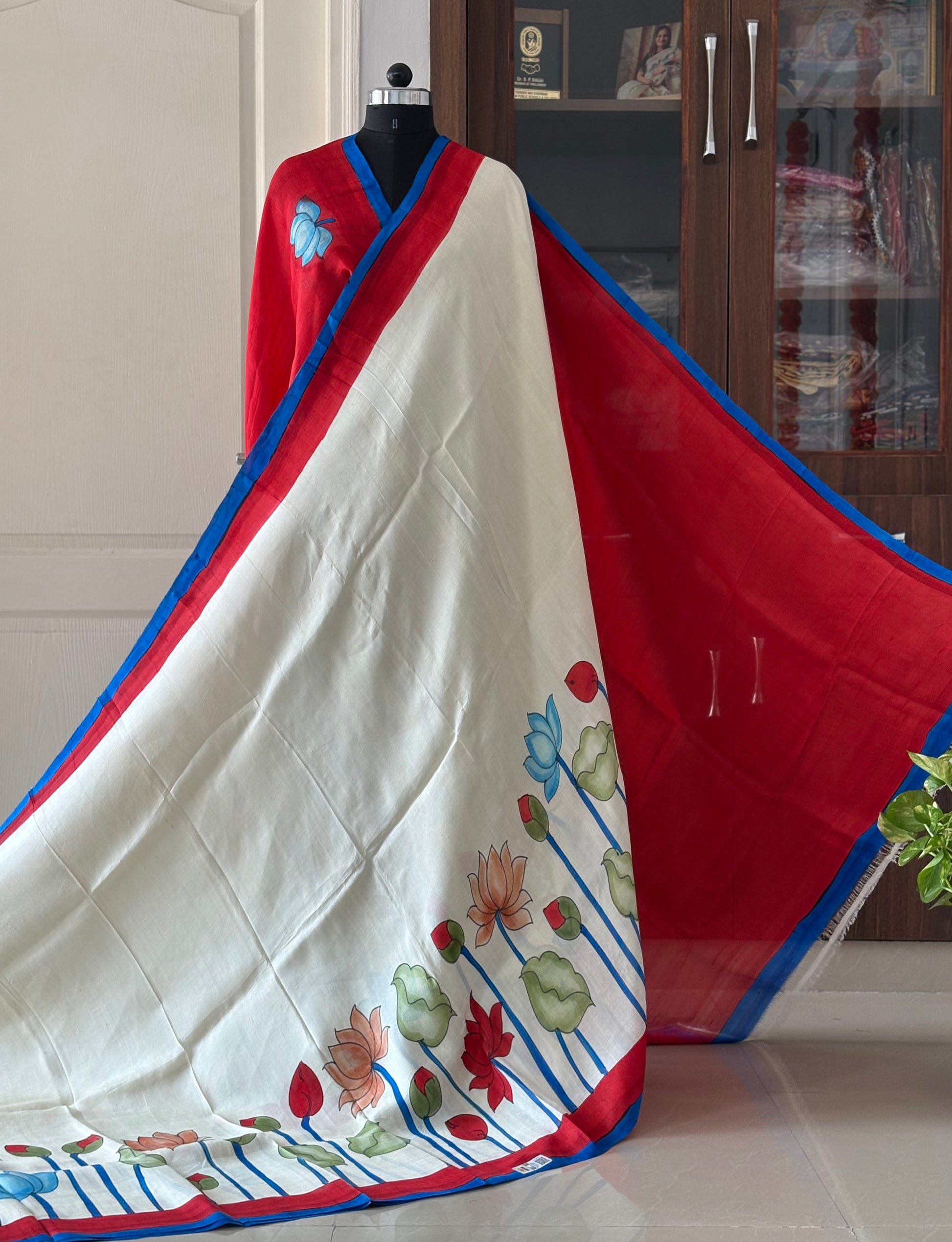 Exclusive Hand painted Pure Bishnupuri Silk Saree (Silk Marked)