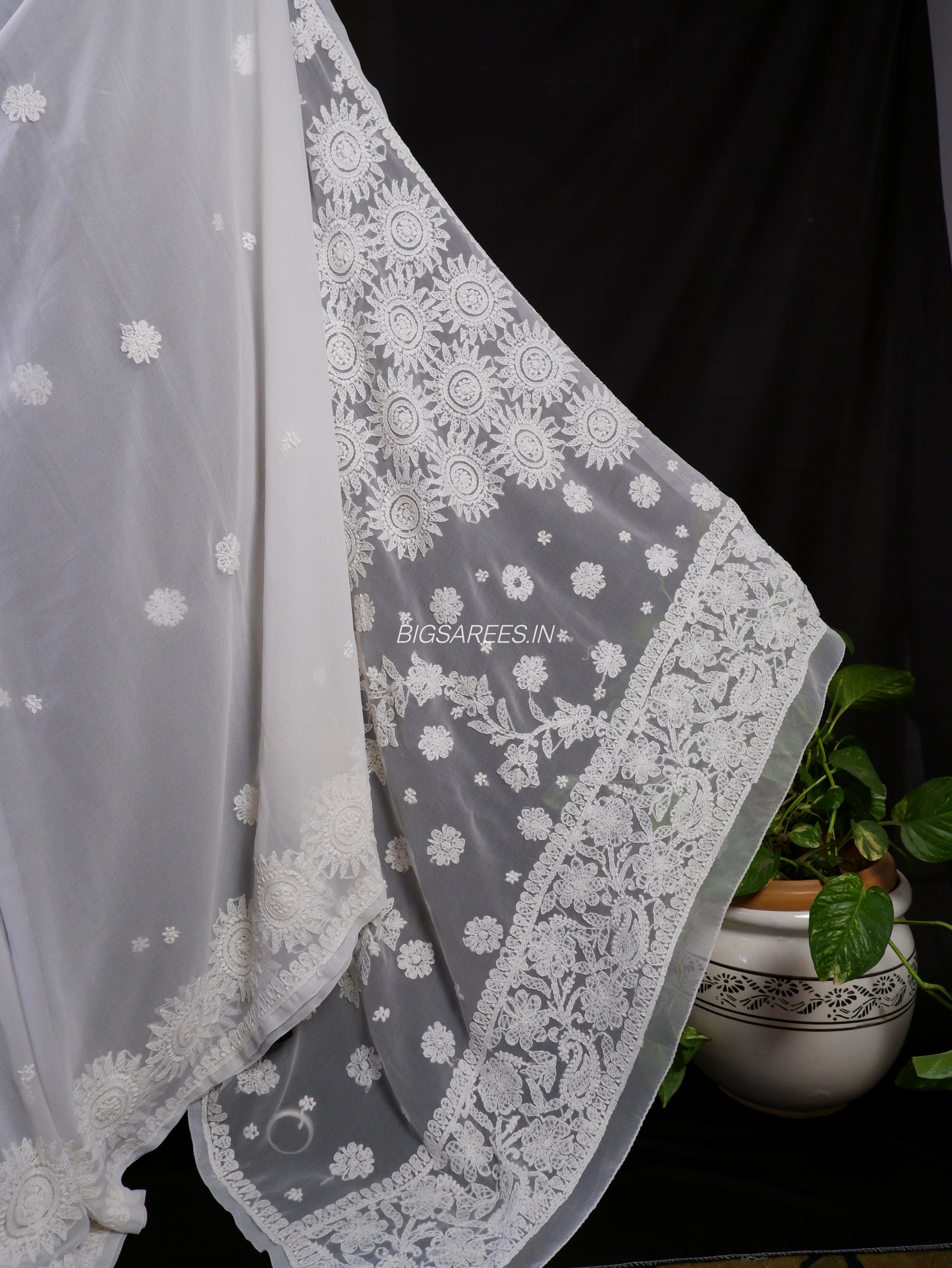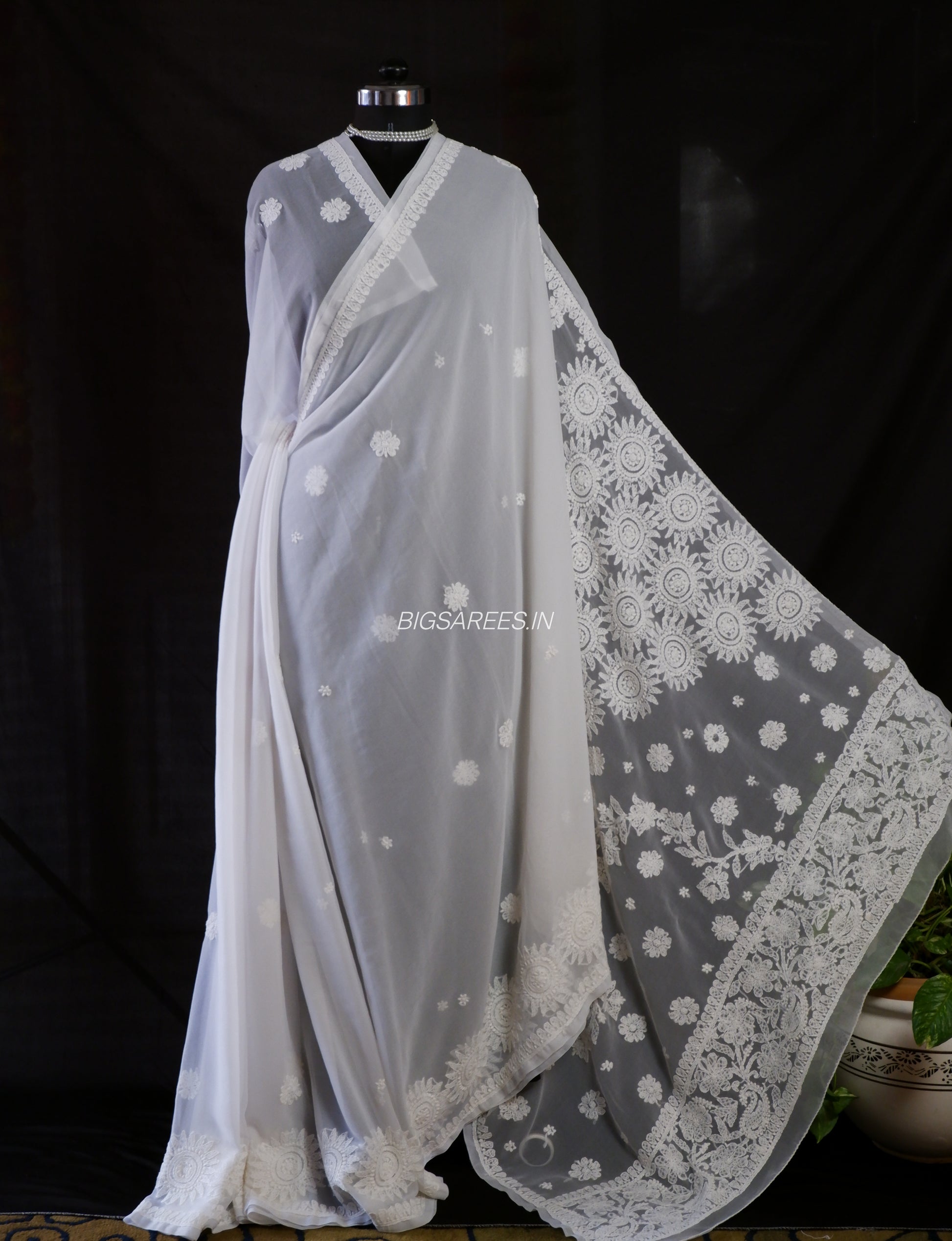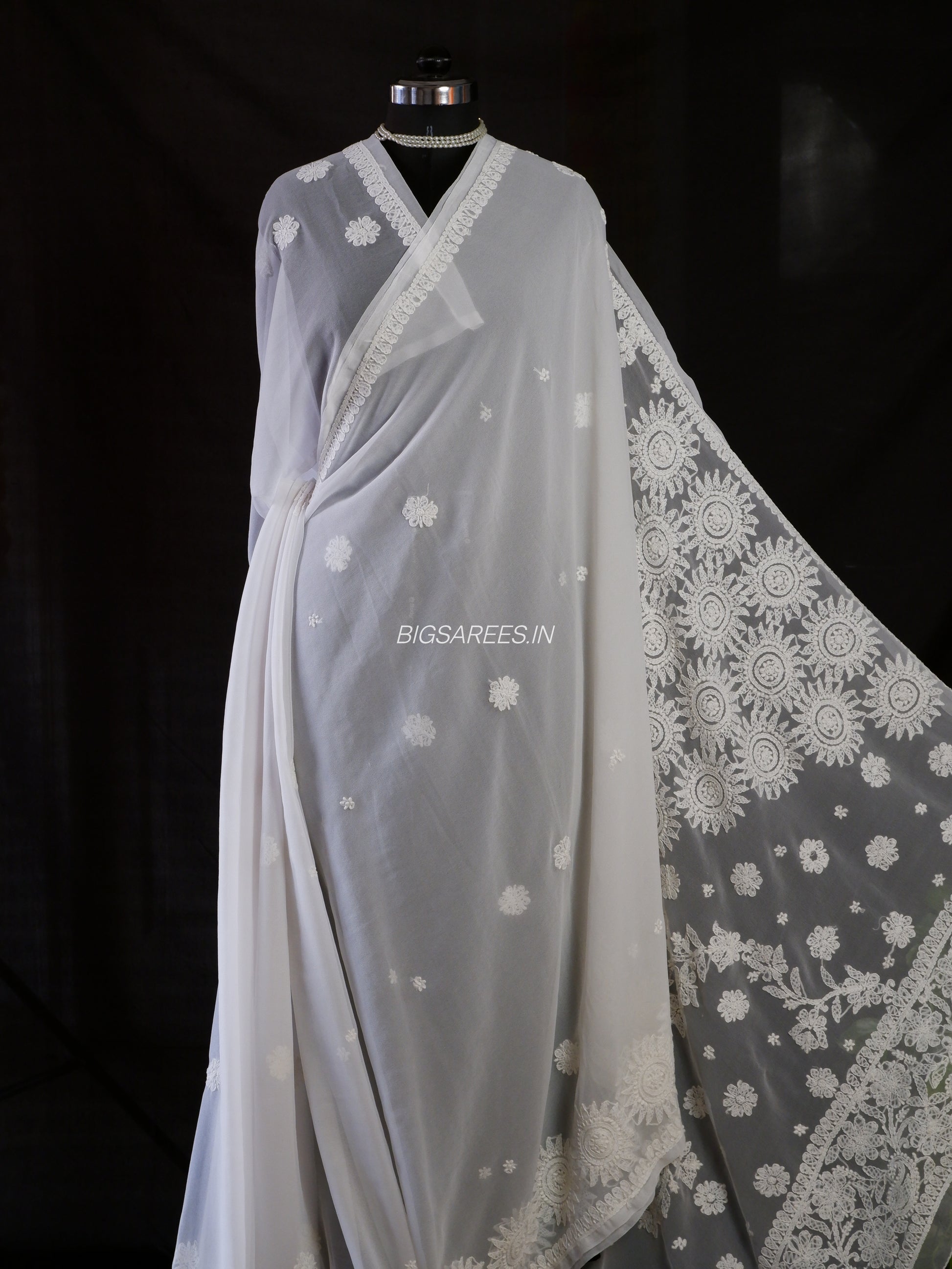 Chikankari Hand Embroidered Saree | Semi Georgette | White