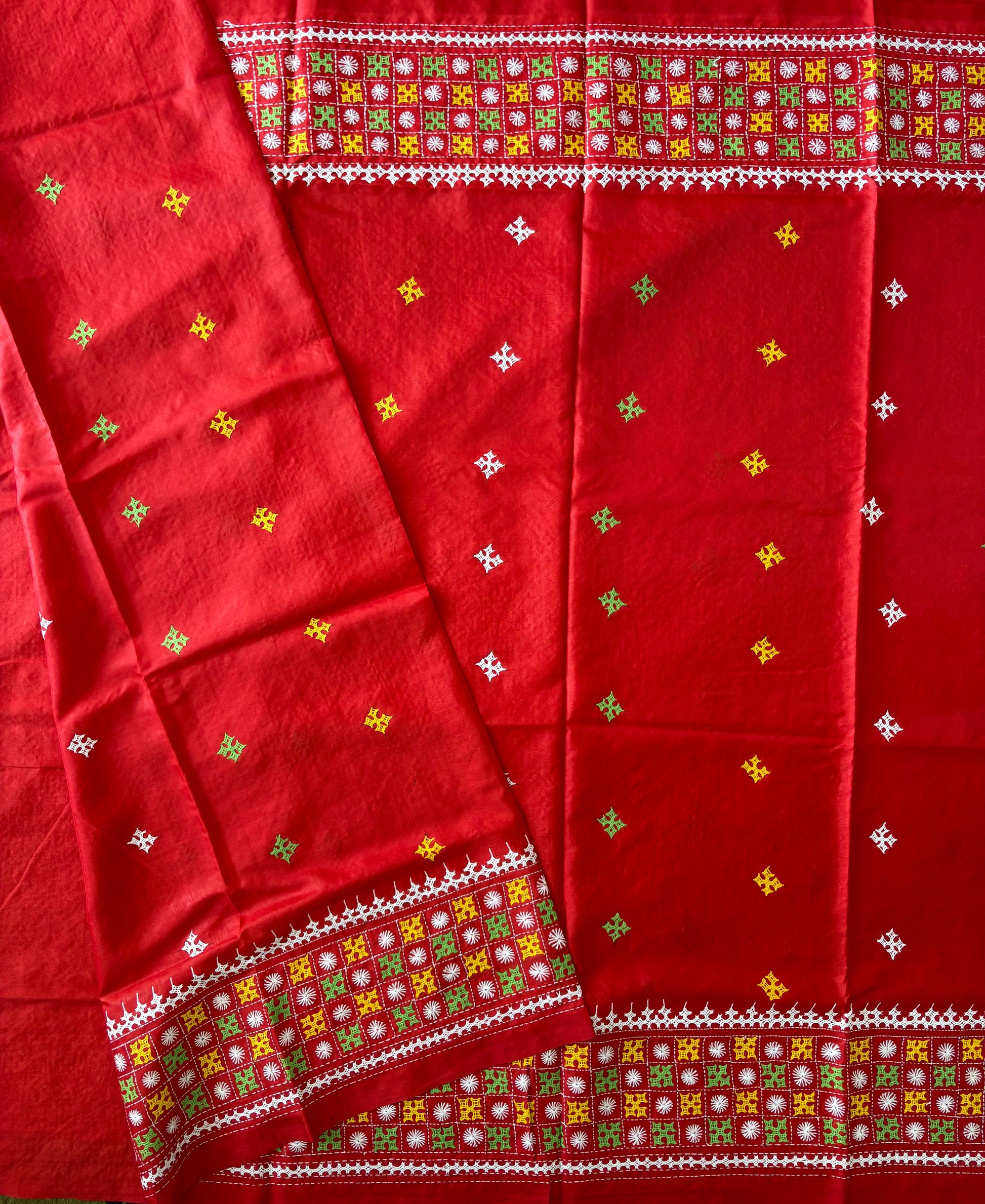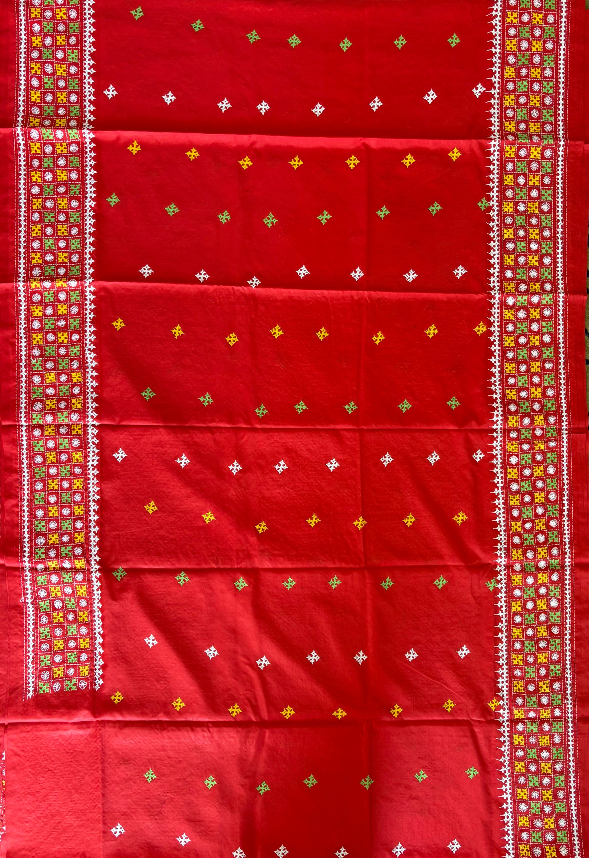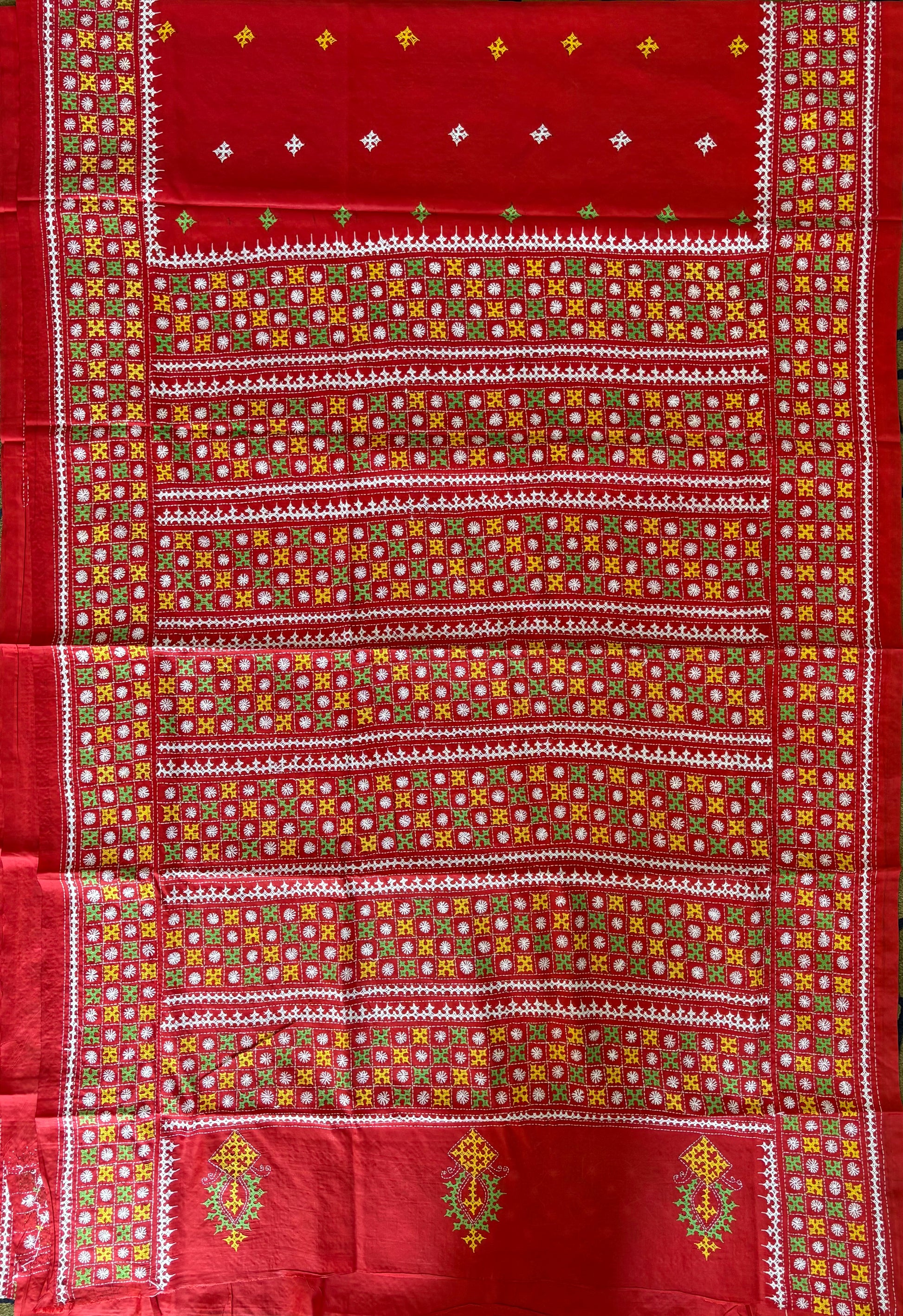 “Gujrati Stitch/Kutch Hand Embroidered Art Silk Saree.