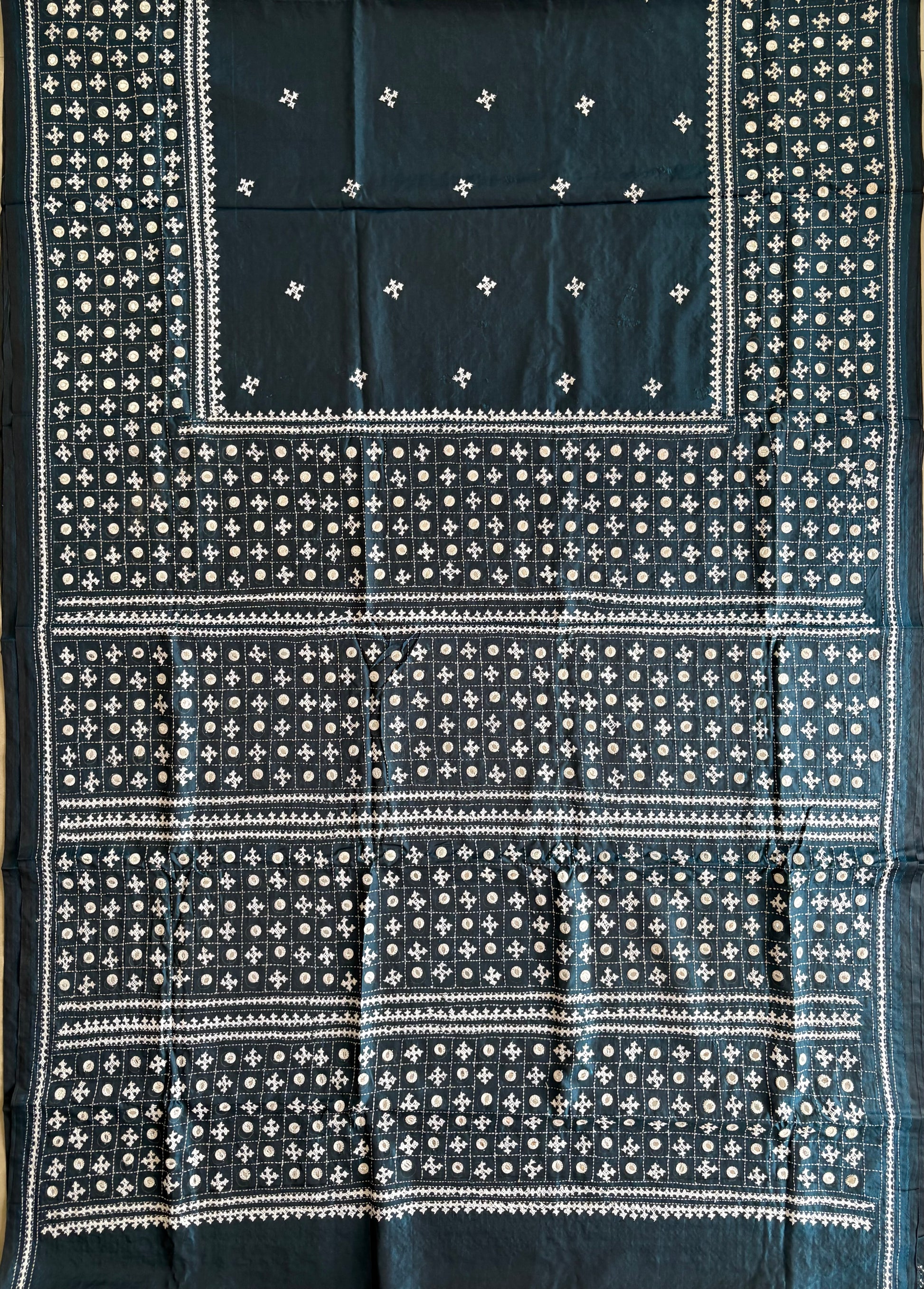 “Gujrati Stitch/Kutch Hand Embroidered Art Silk Saree.
