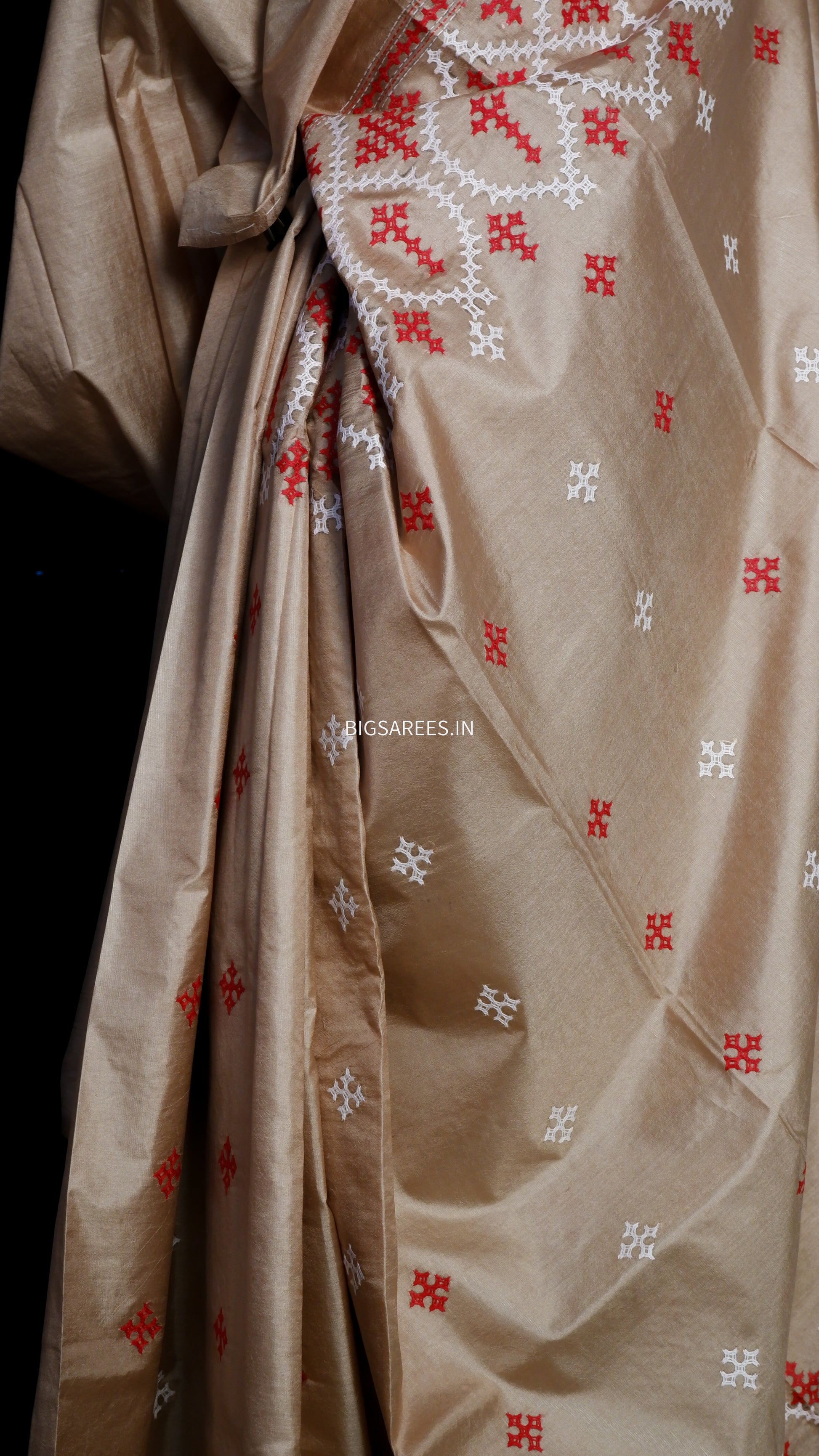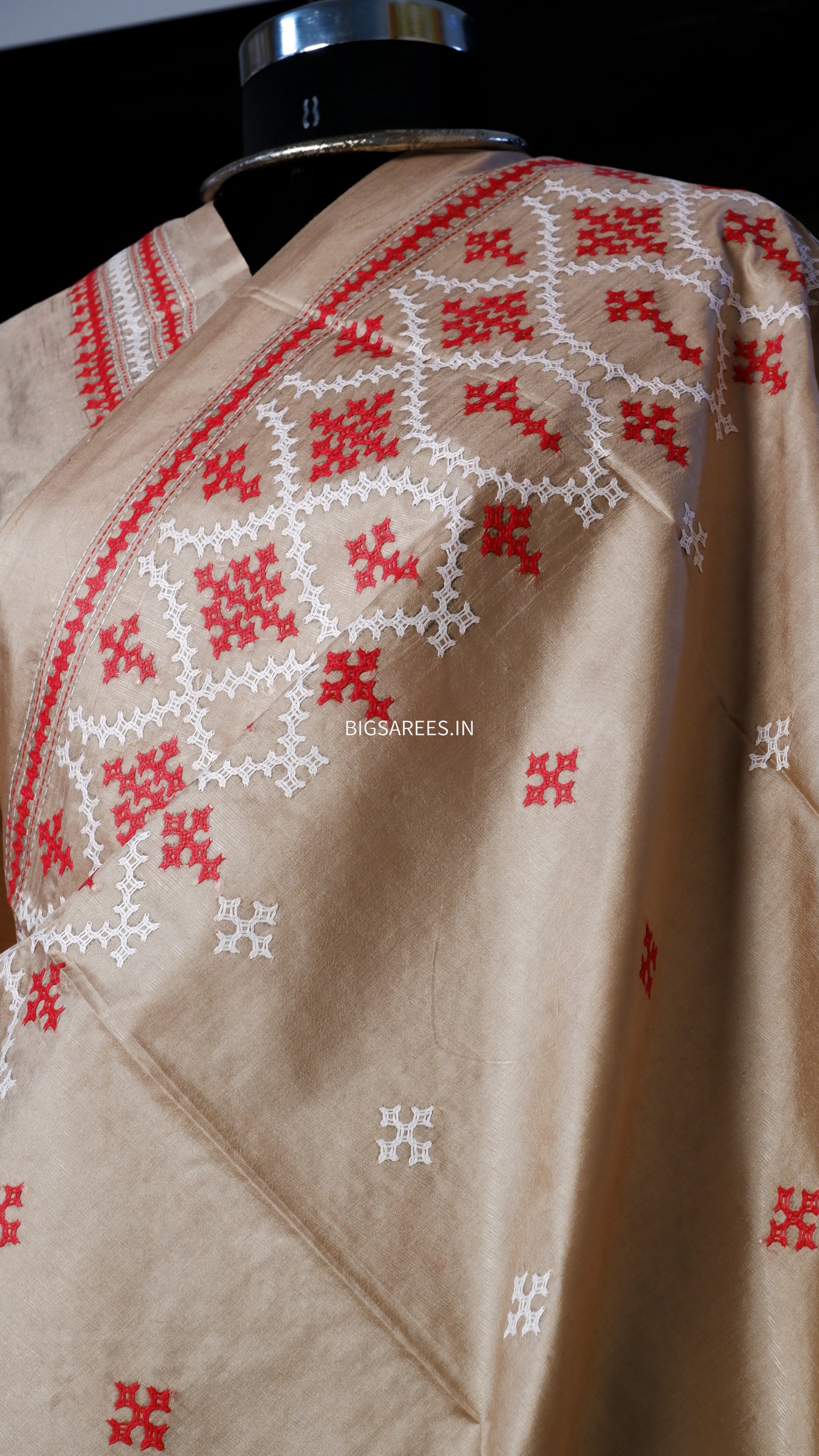 “Kutch Hand Embroidered Banglore Silk Saree.”