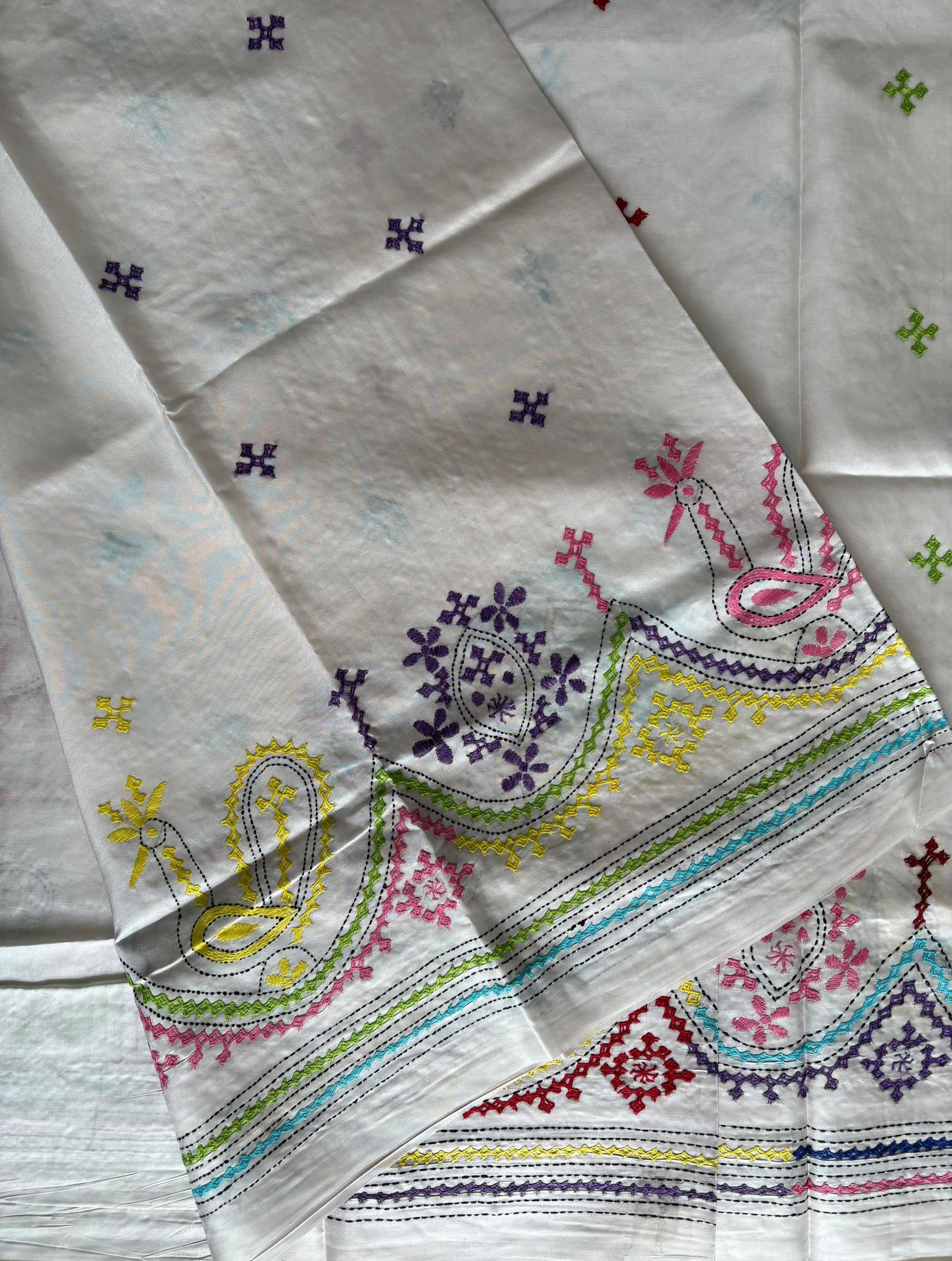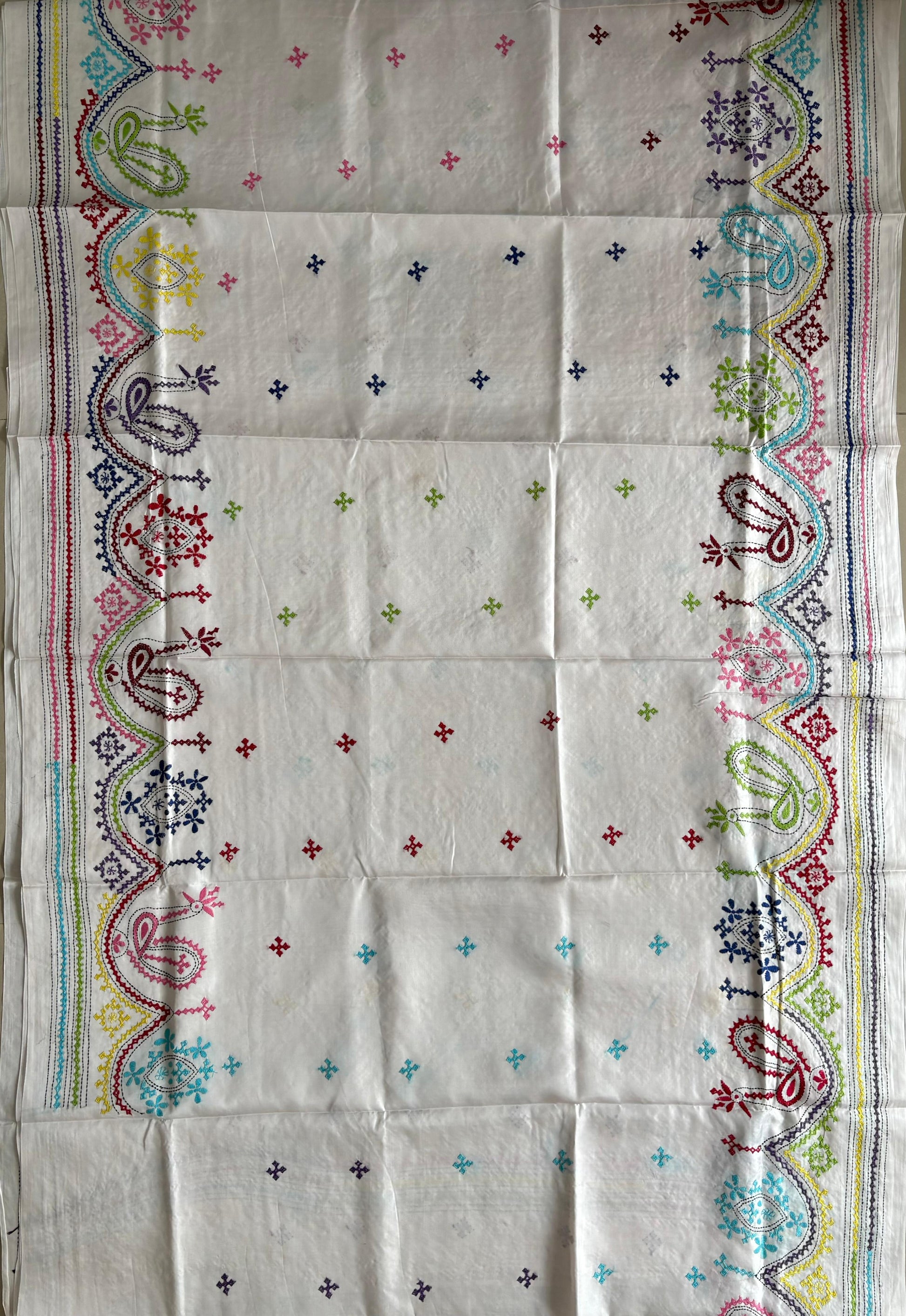 “Gujrati Stitch/Kutch Hand Embroidered Art Silk Saree.