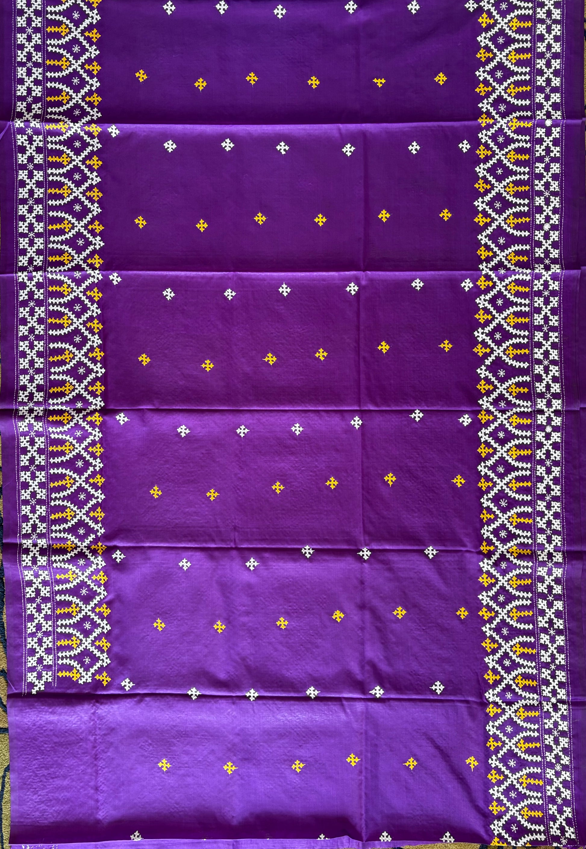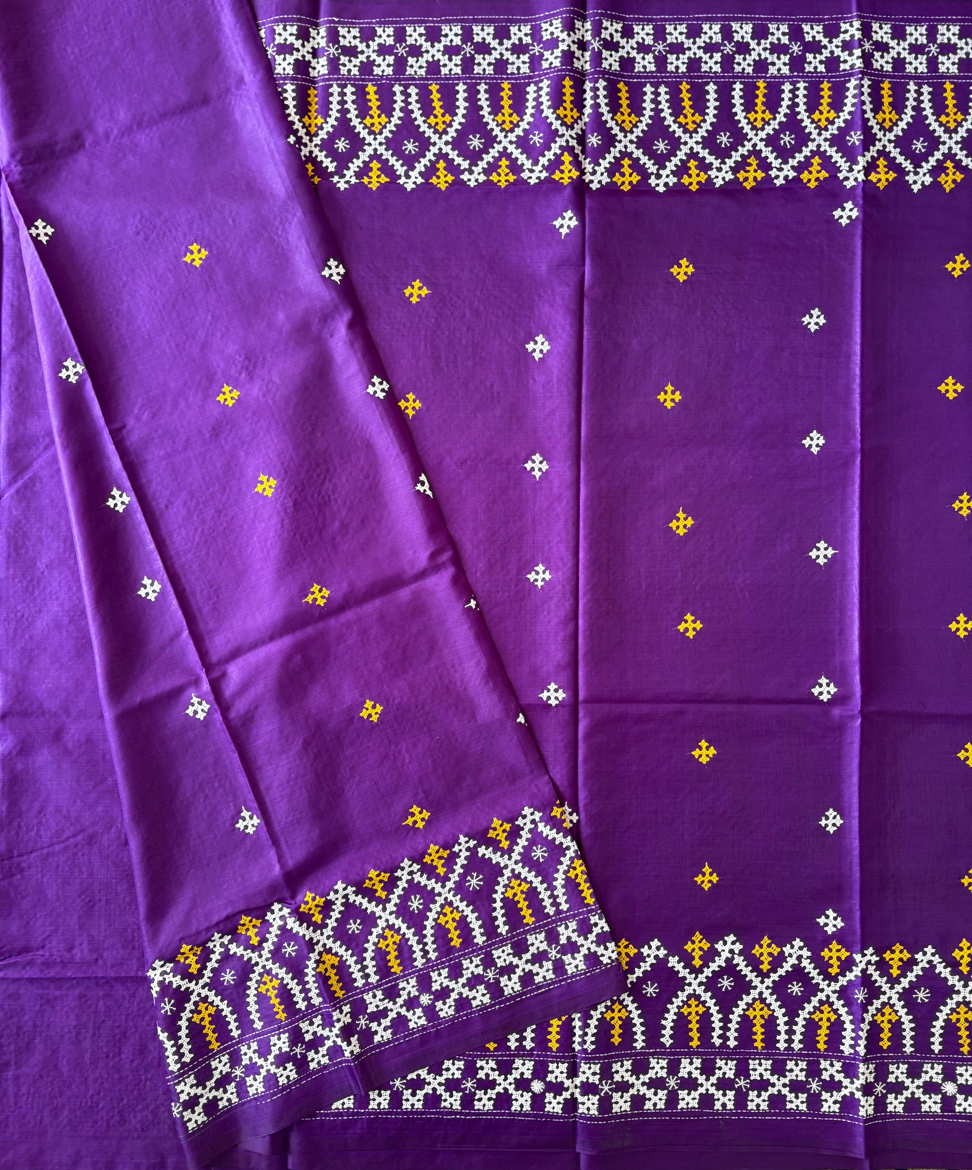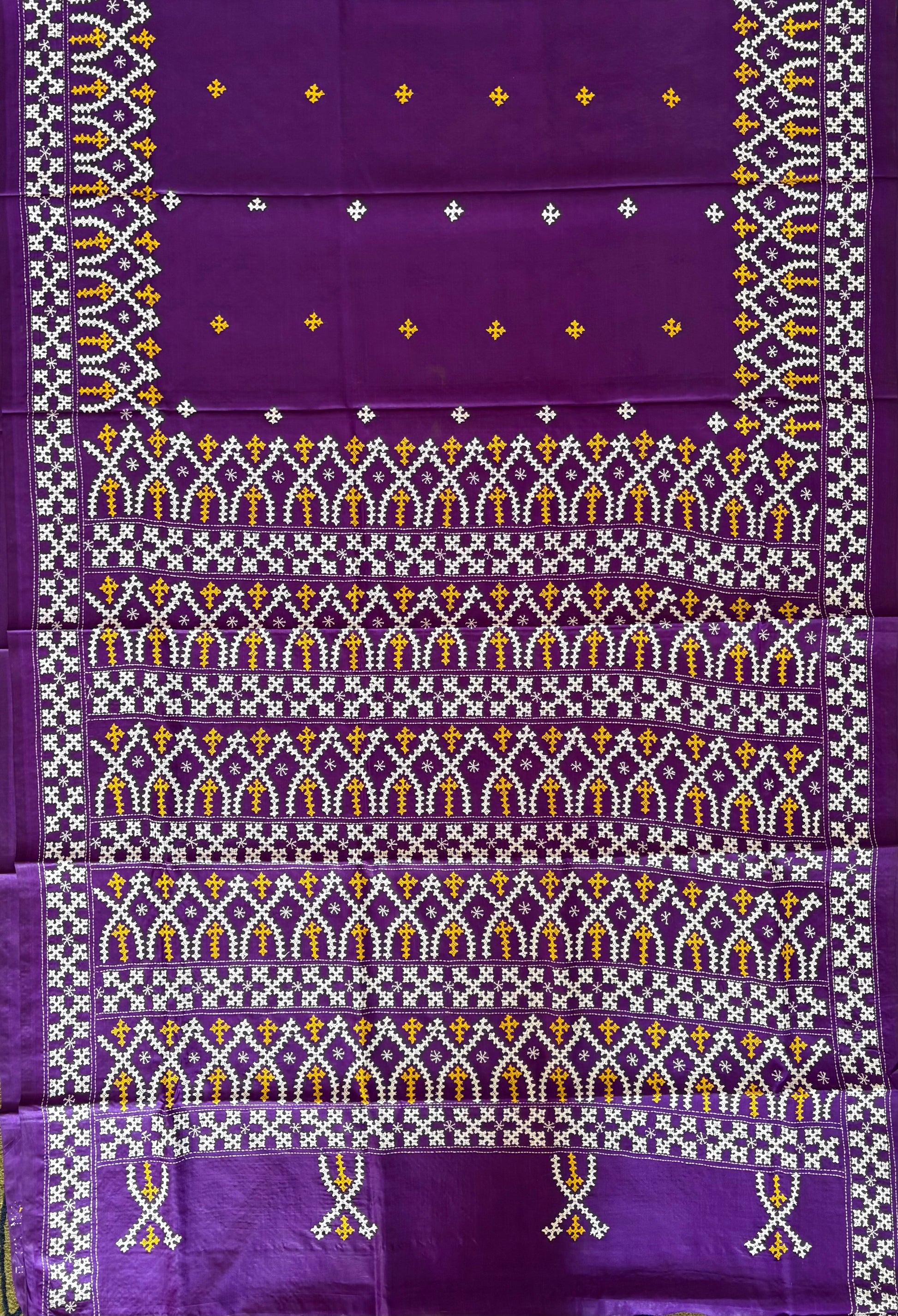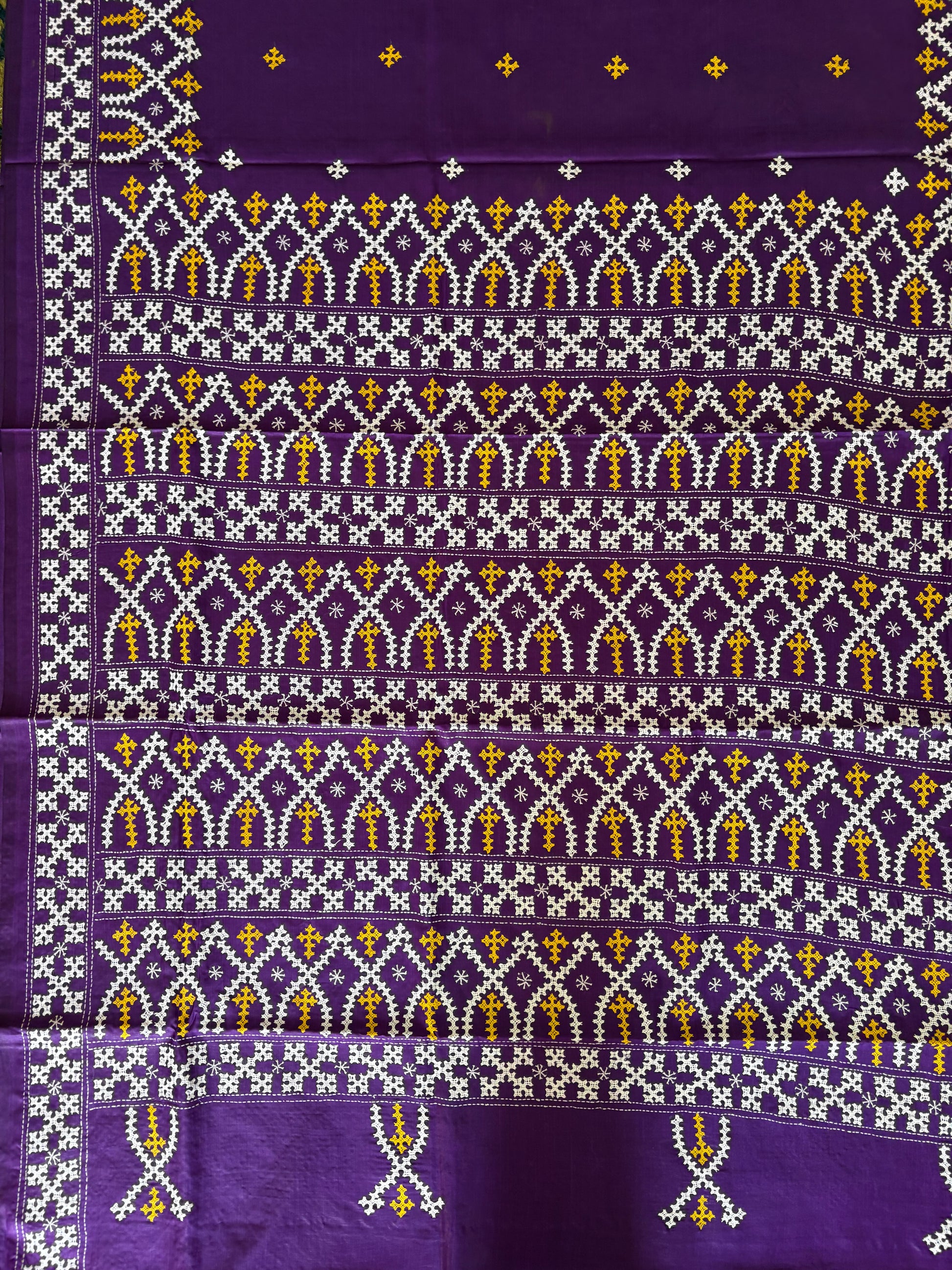 “Gujrati Stitch/Kutch Hand Embroidered Art Silk Saree.