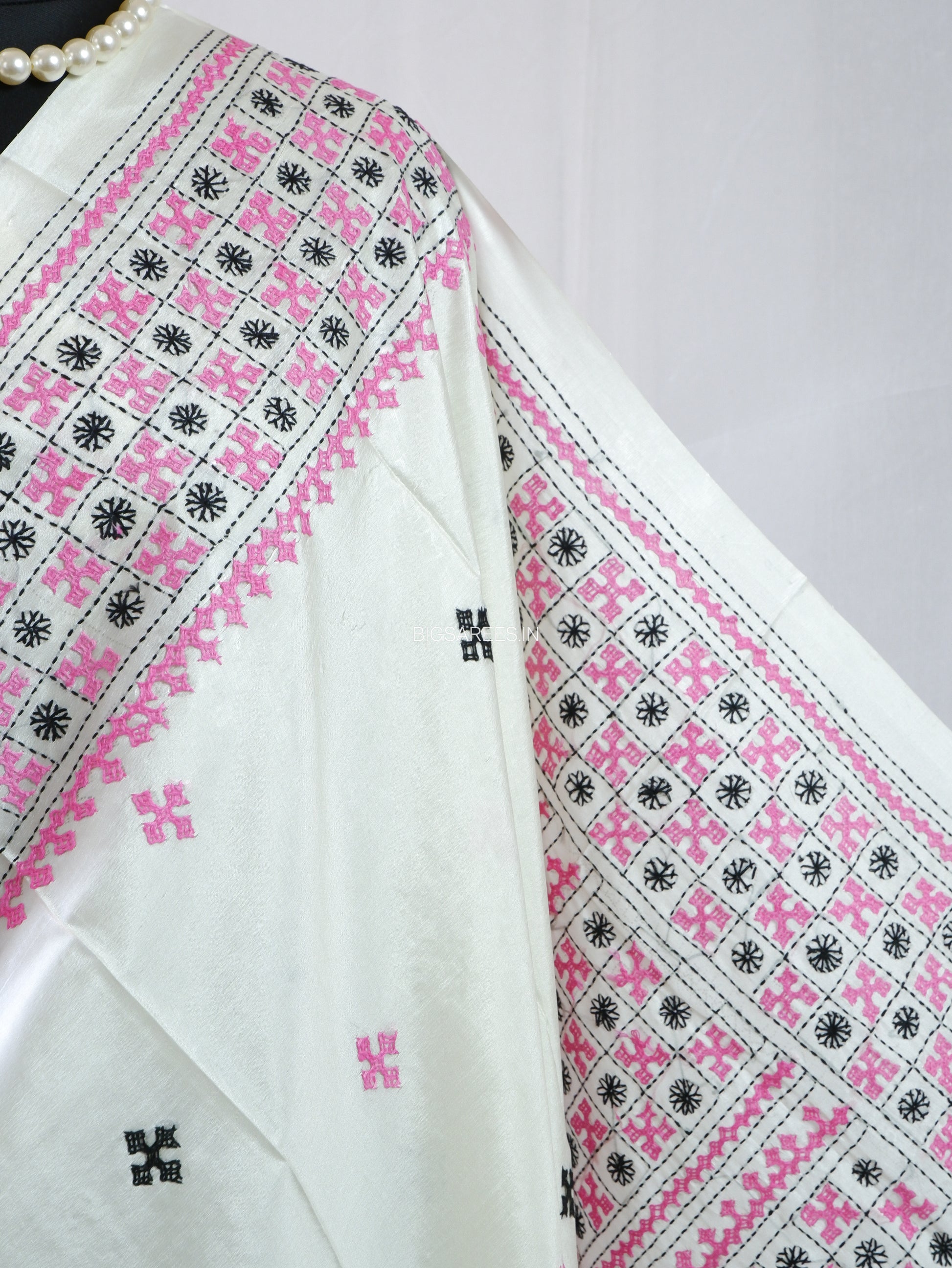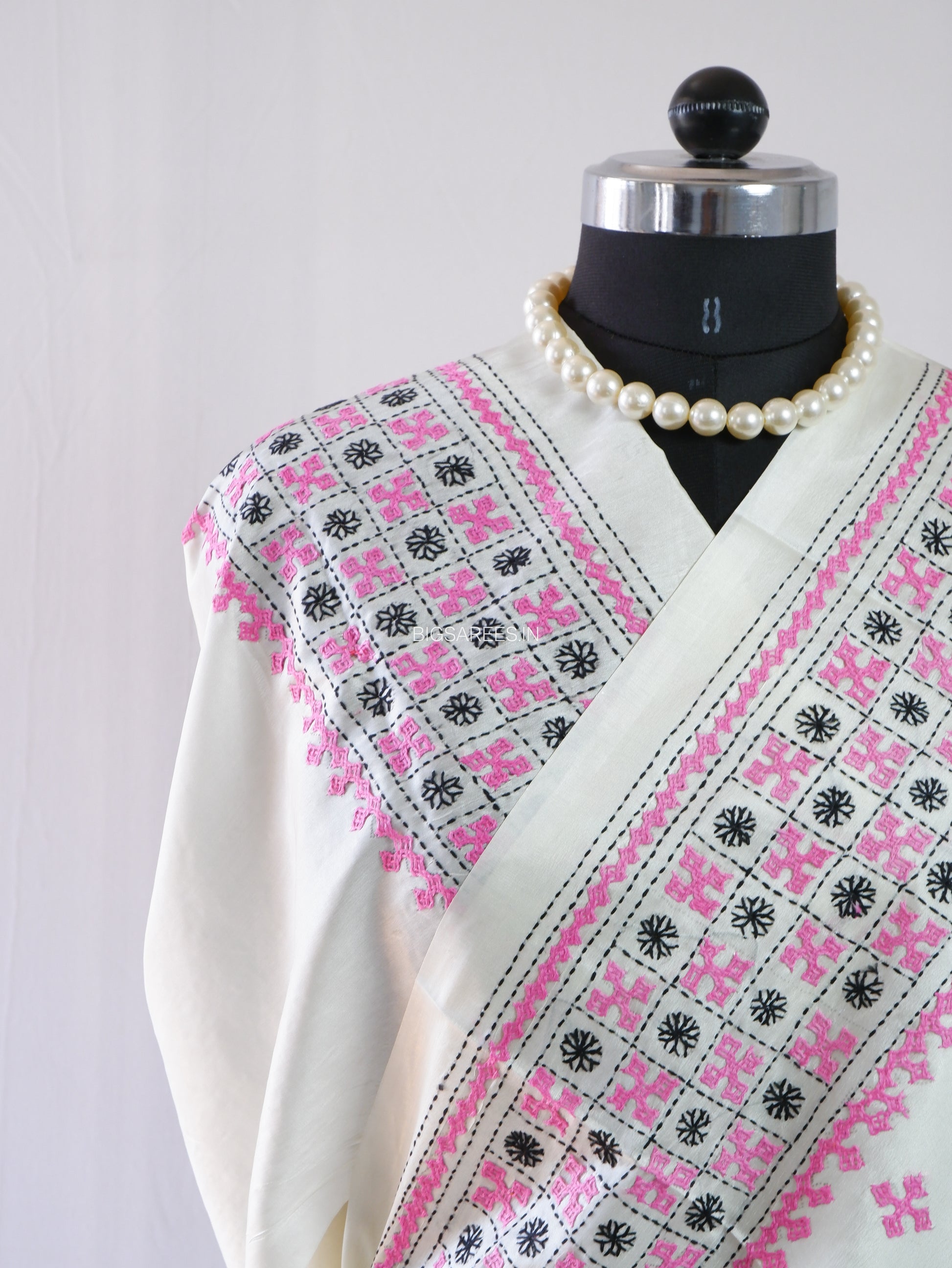 Finished with a running blouse piece featuring Kutch work, this Gujarati stitch hand-embroidered saree reflects patient craftsmanship and enduring design. Each piece takes approximately 6–8 months to create, making it a timeless addition to a conscious wardrobe meant to be worn, cherished, and passed on through generations.