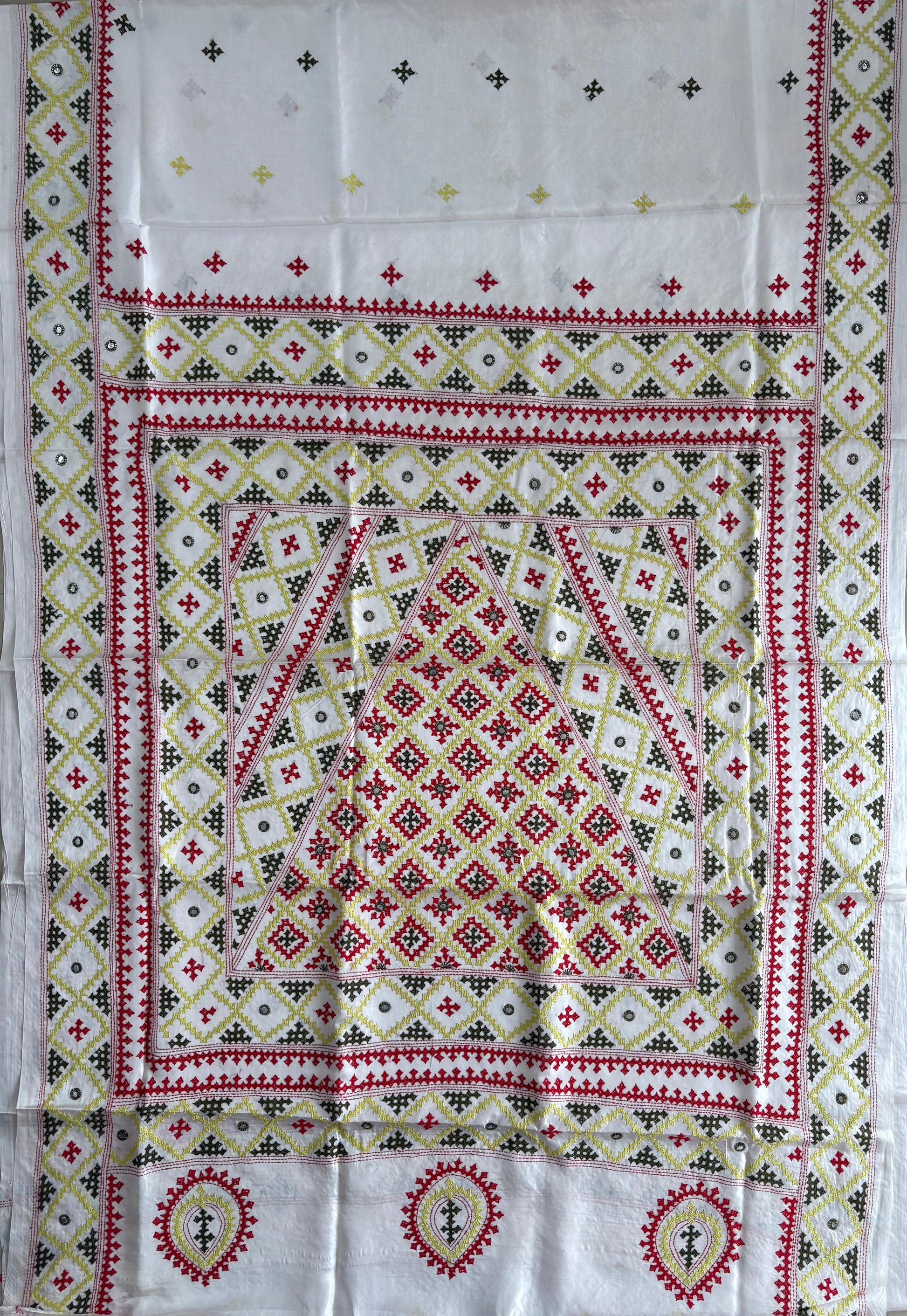 Gujrati Stitch/Kutch Hand Embroidered Art Silk Saree