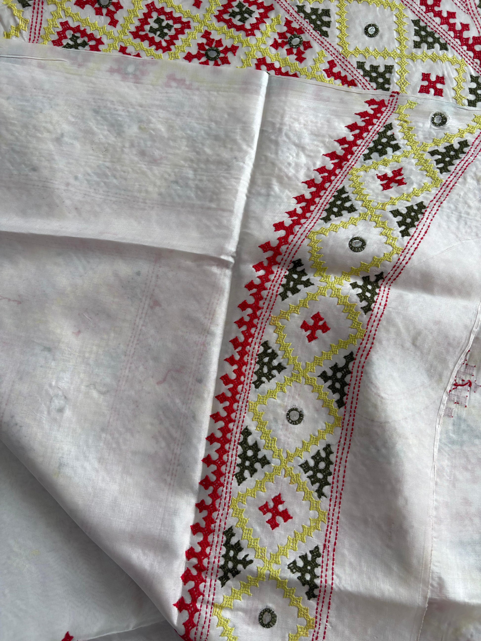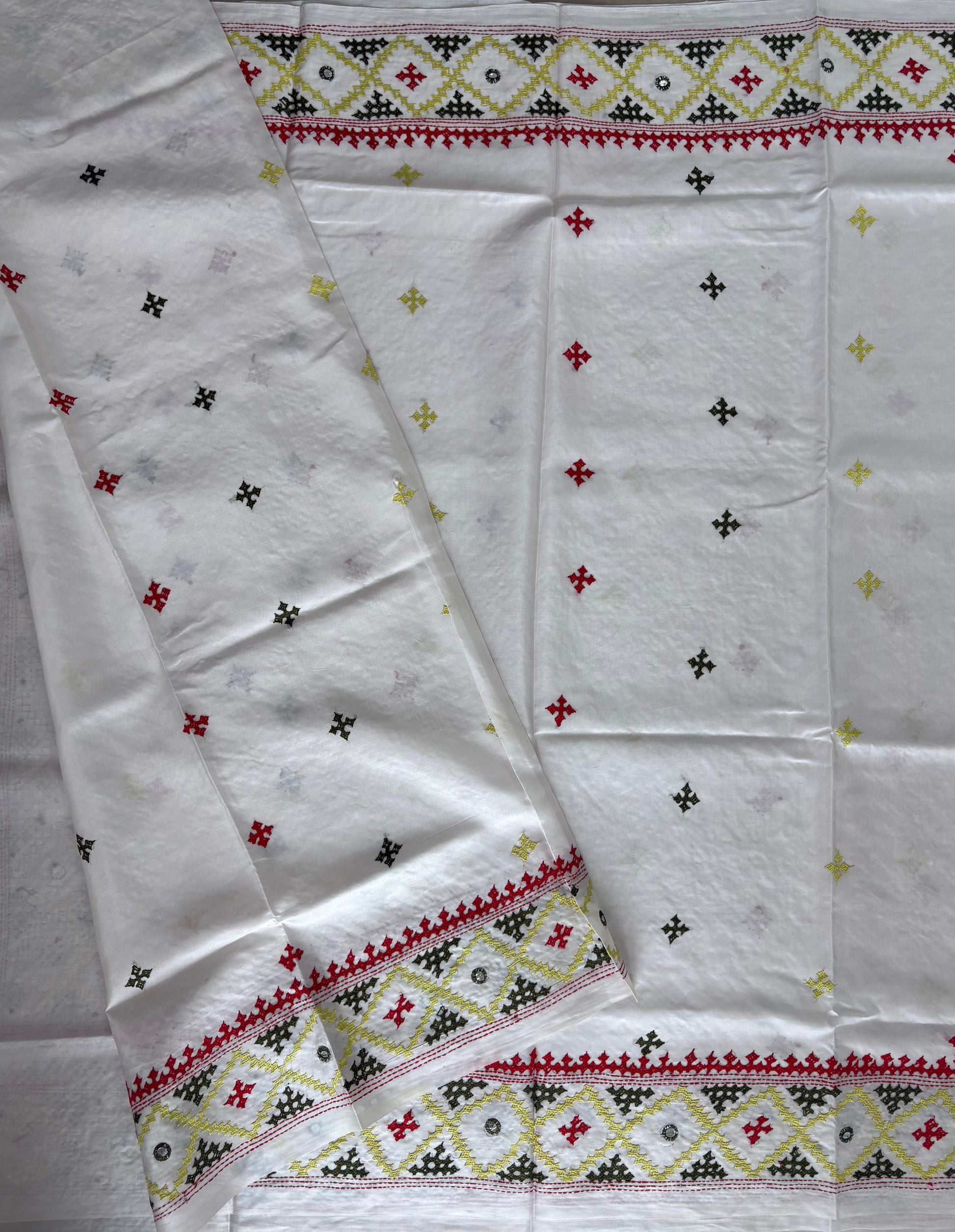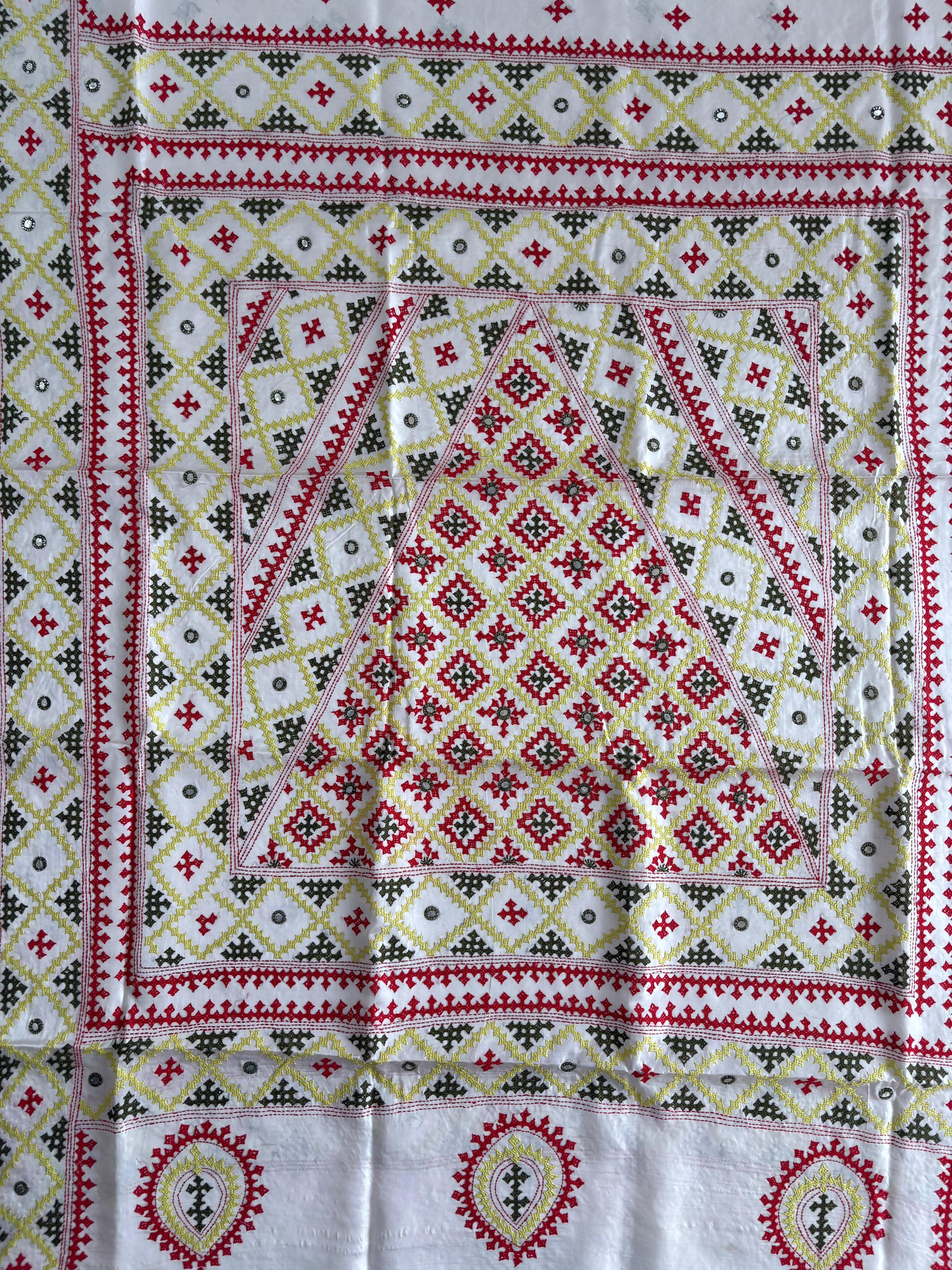 “Gujrati Stitch/Kutch Hand Embroidered Art Silk Saree.