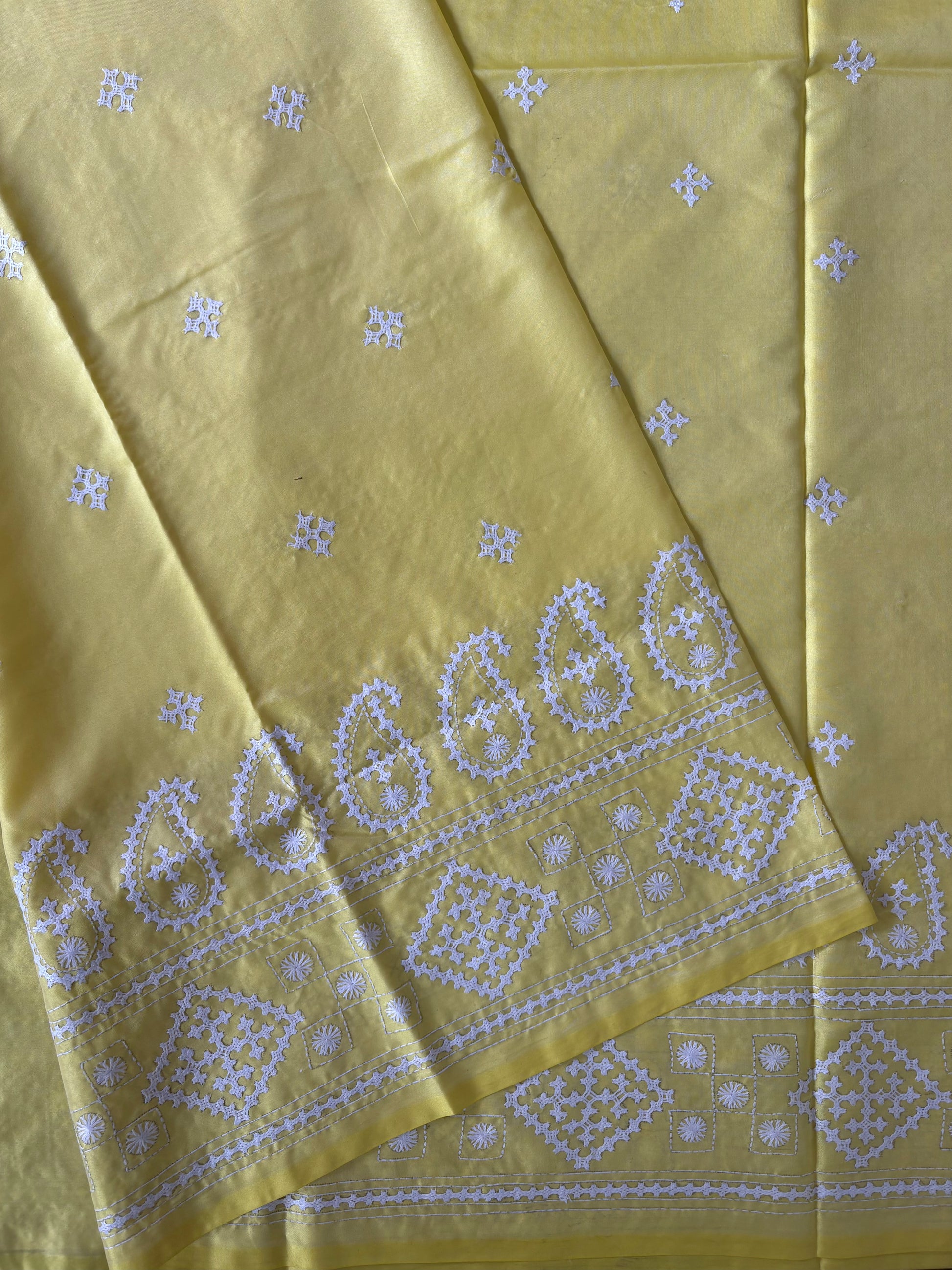 “Gujrati Stitch/Kutch Hand Embroidered Art Silk Saree.