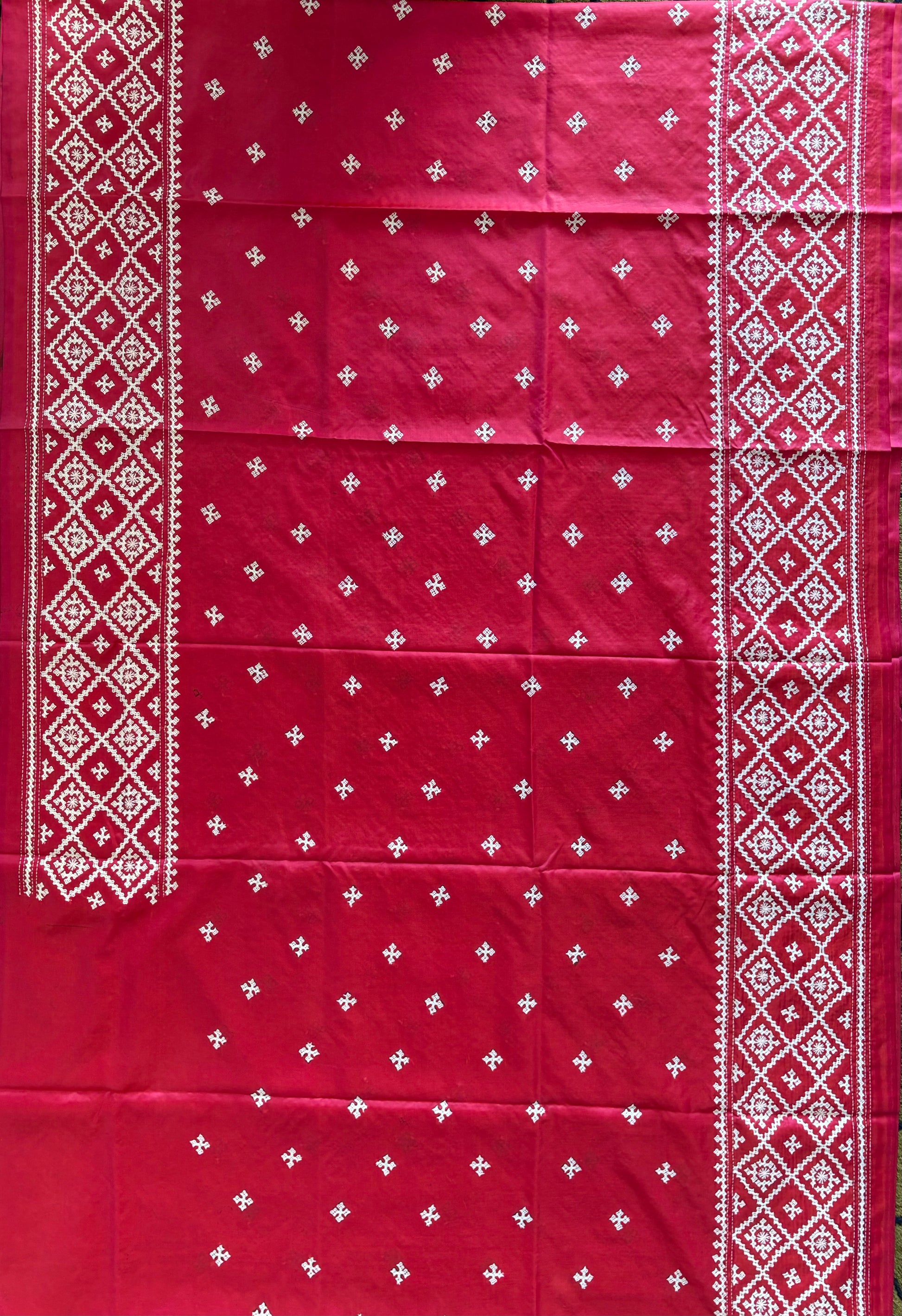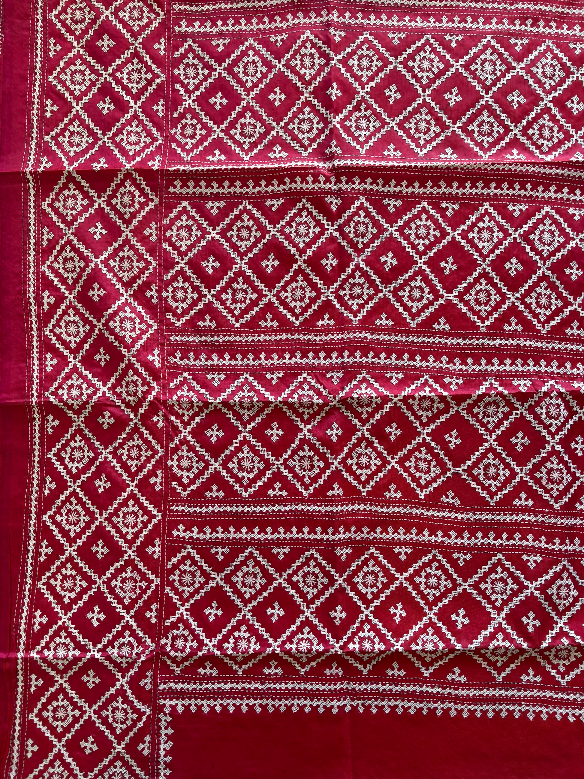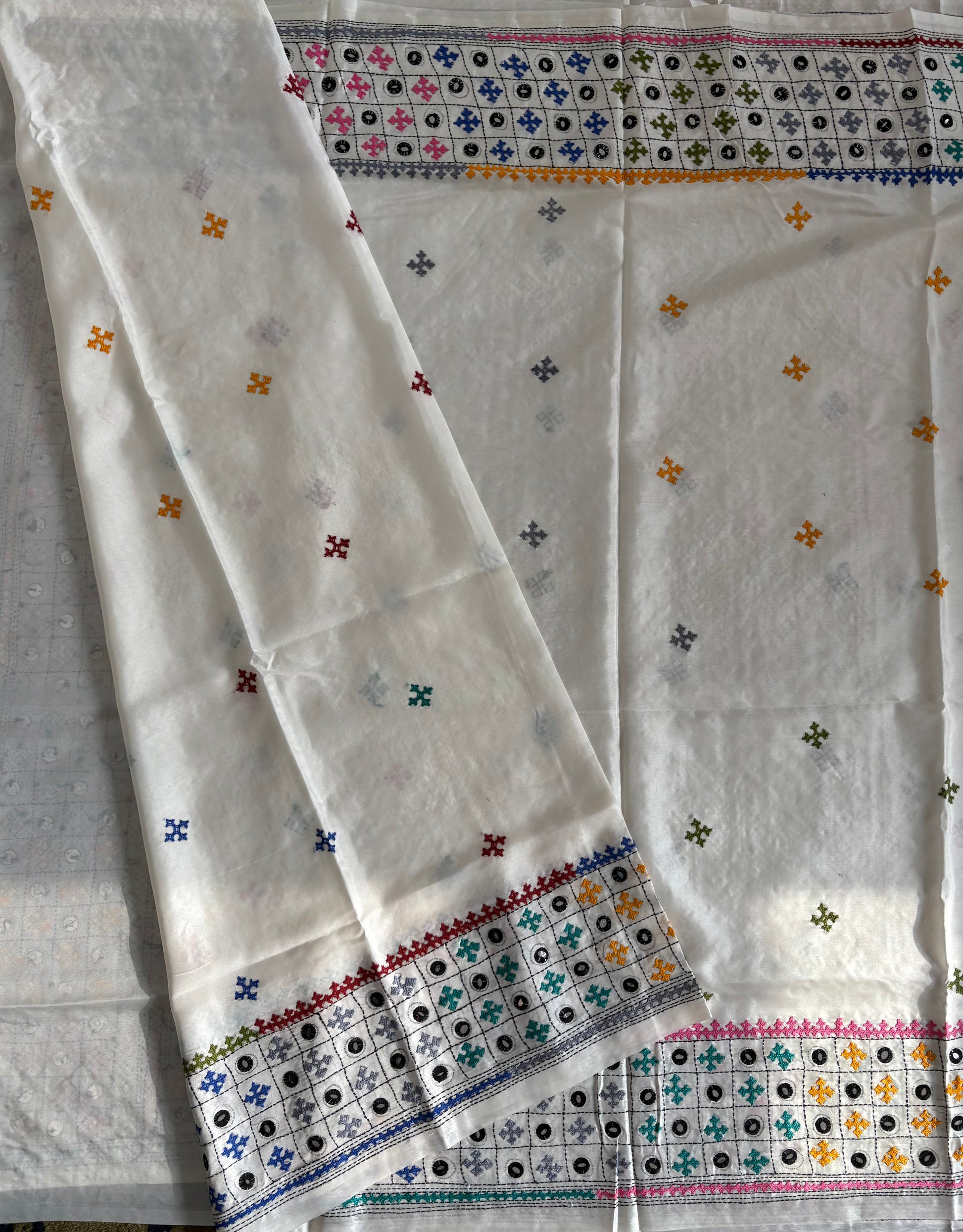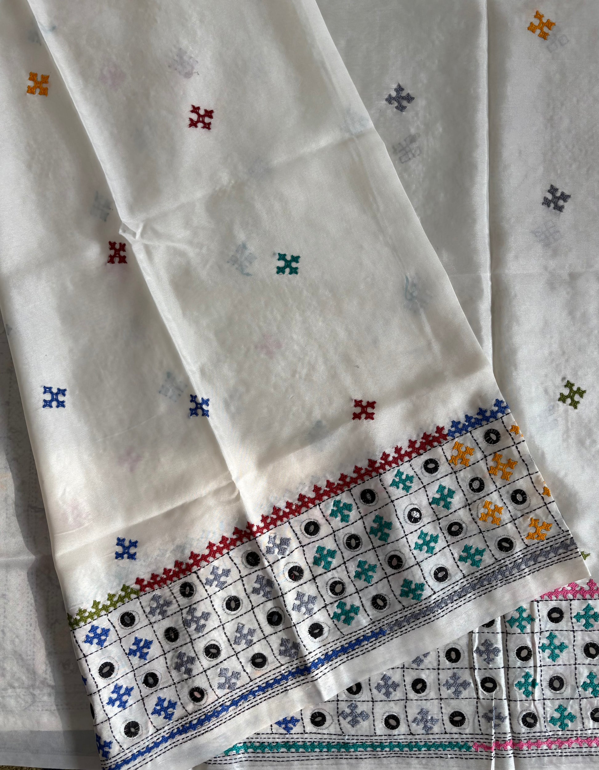 “Gujrati Stitch/Kutch Hand Embroidered Art Silk Saree.