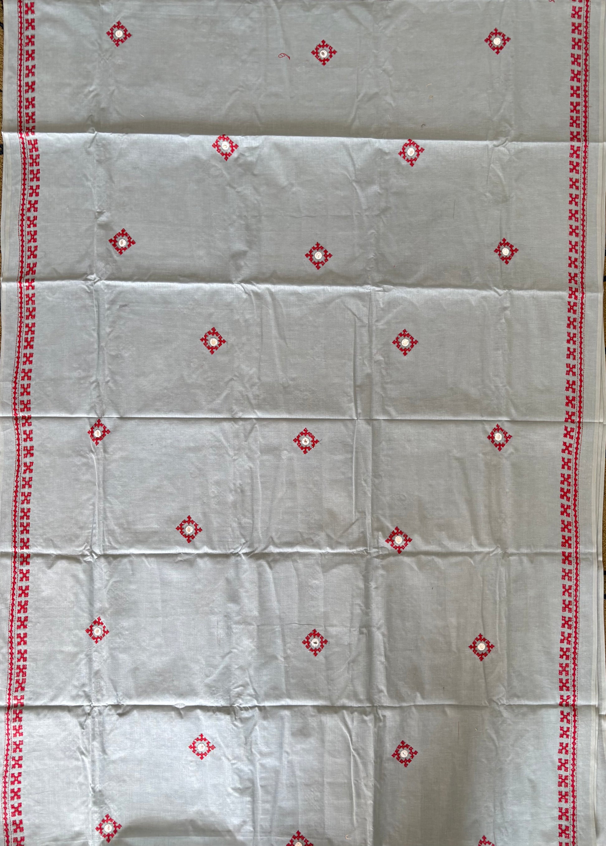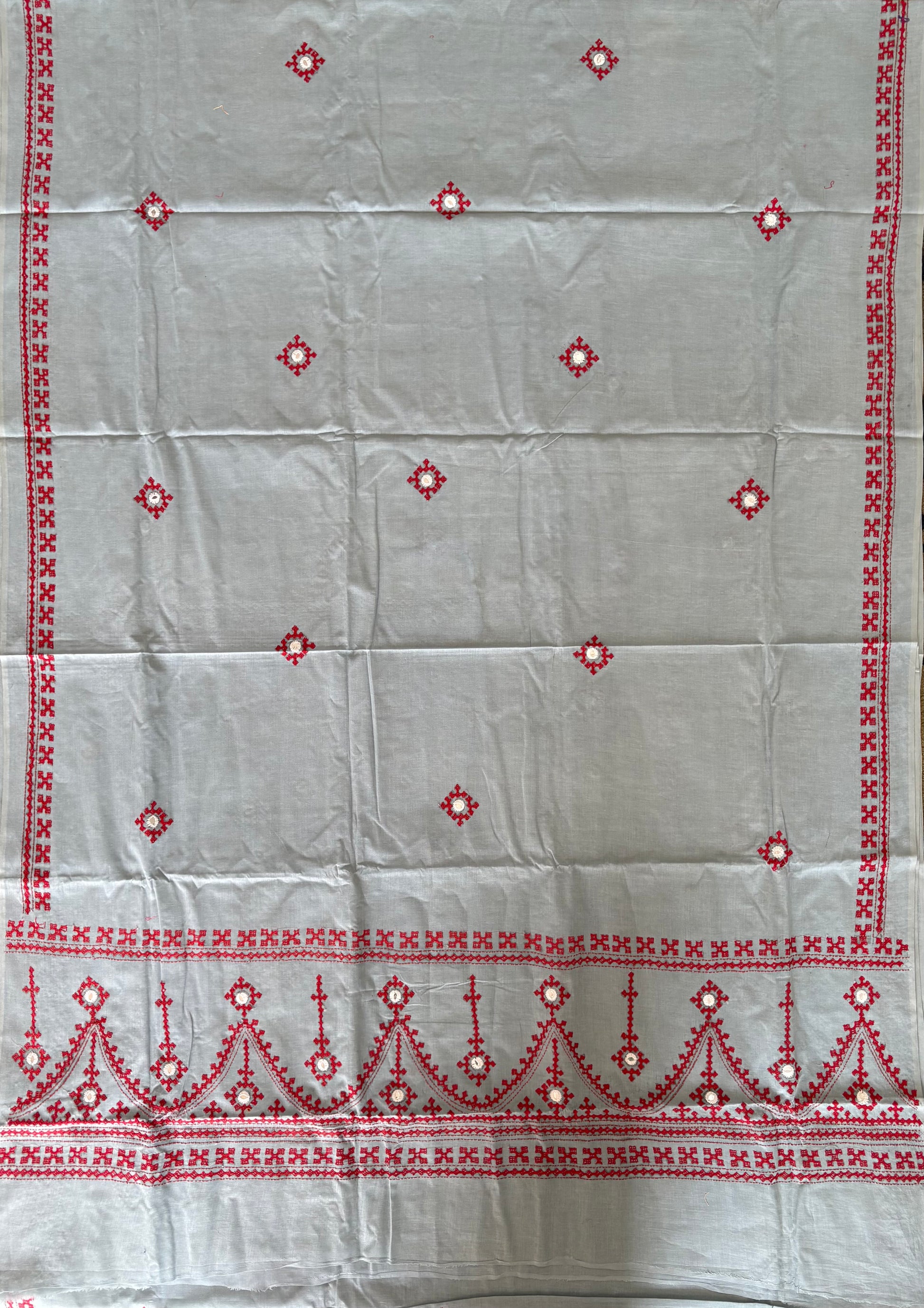 “Gujrati Stitch/Kutch Hand Embroidered malmal Cotton Saree.