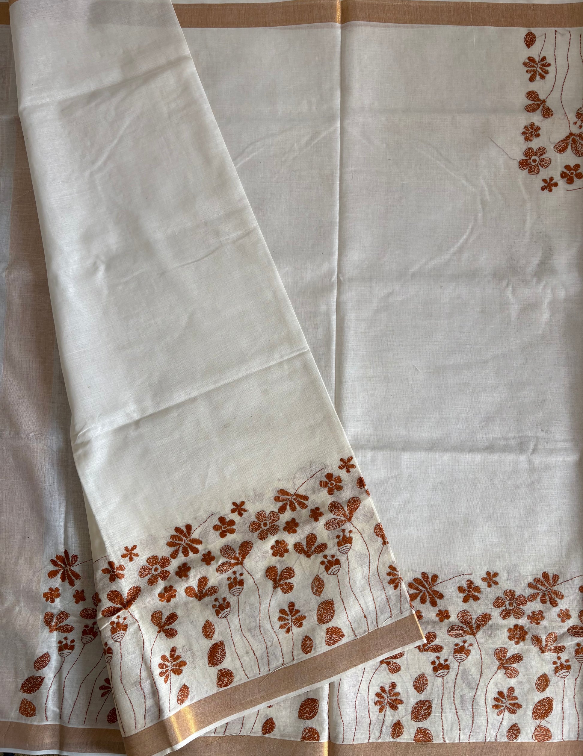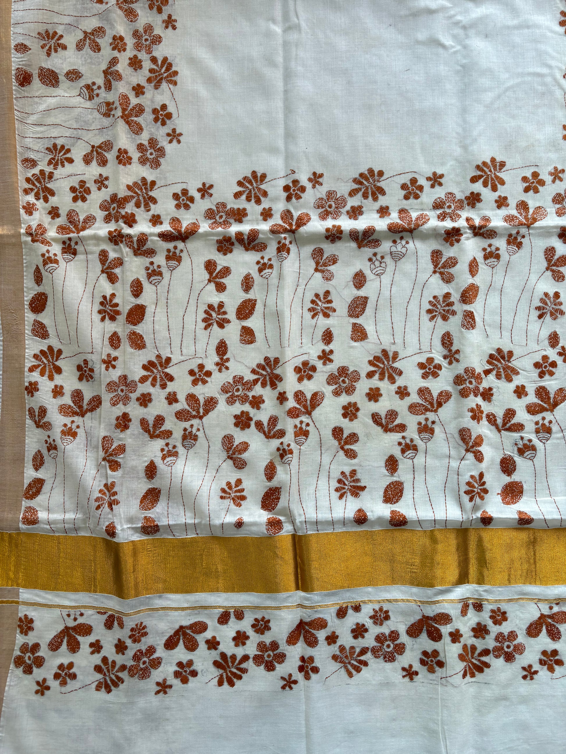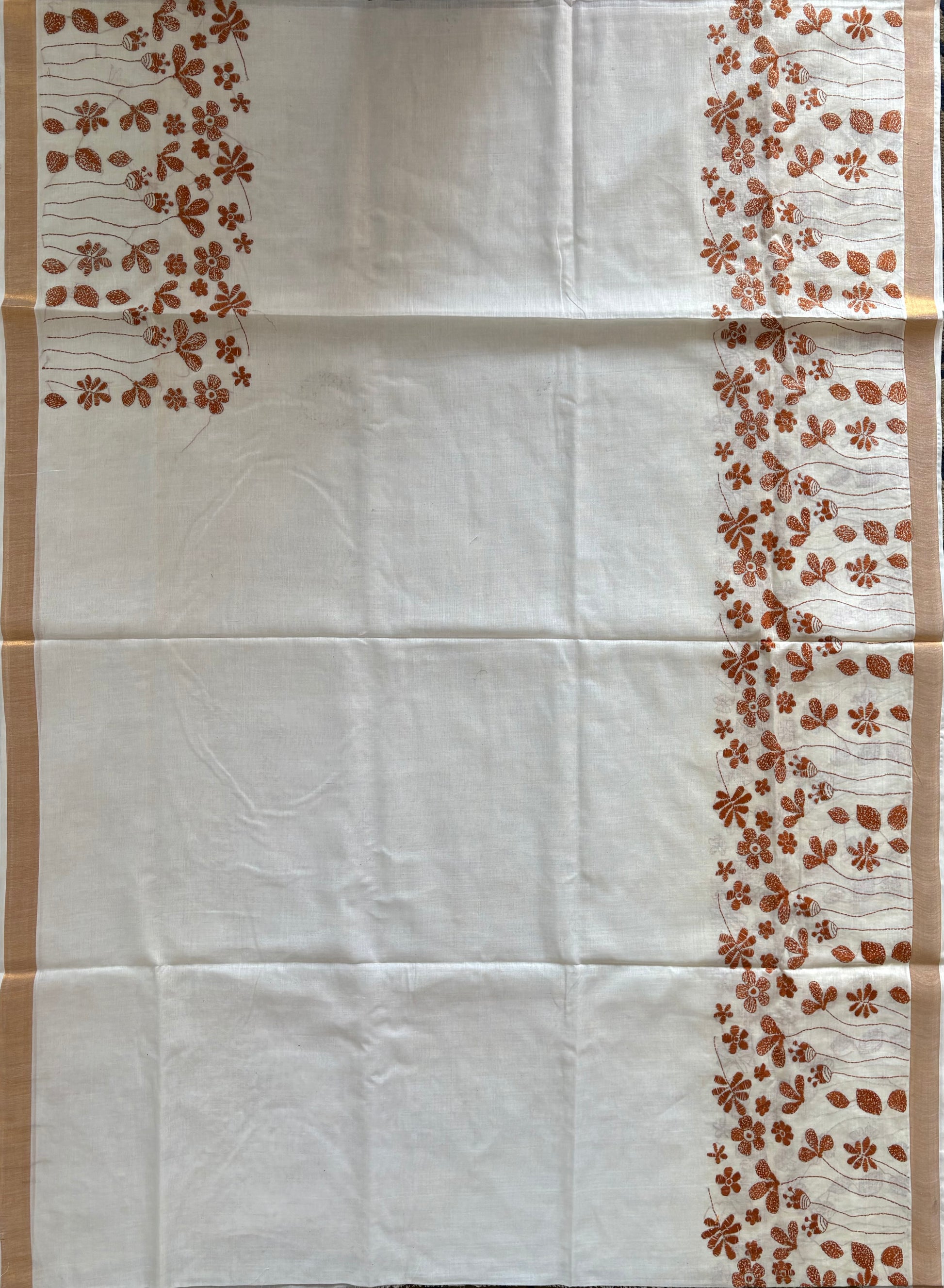 “Kantha Stitch Hand Embroidered South Cotton Saree.