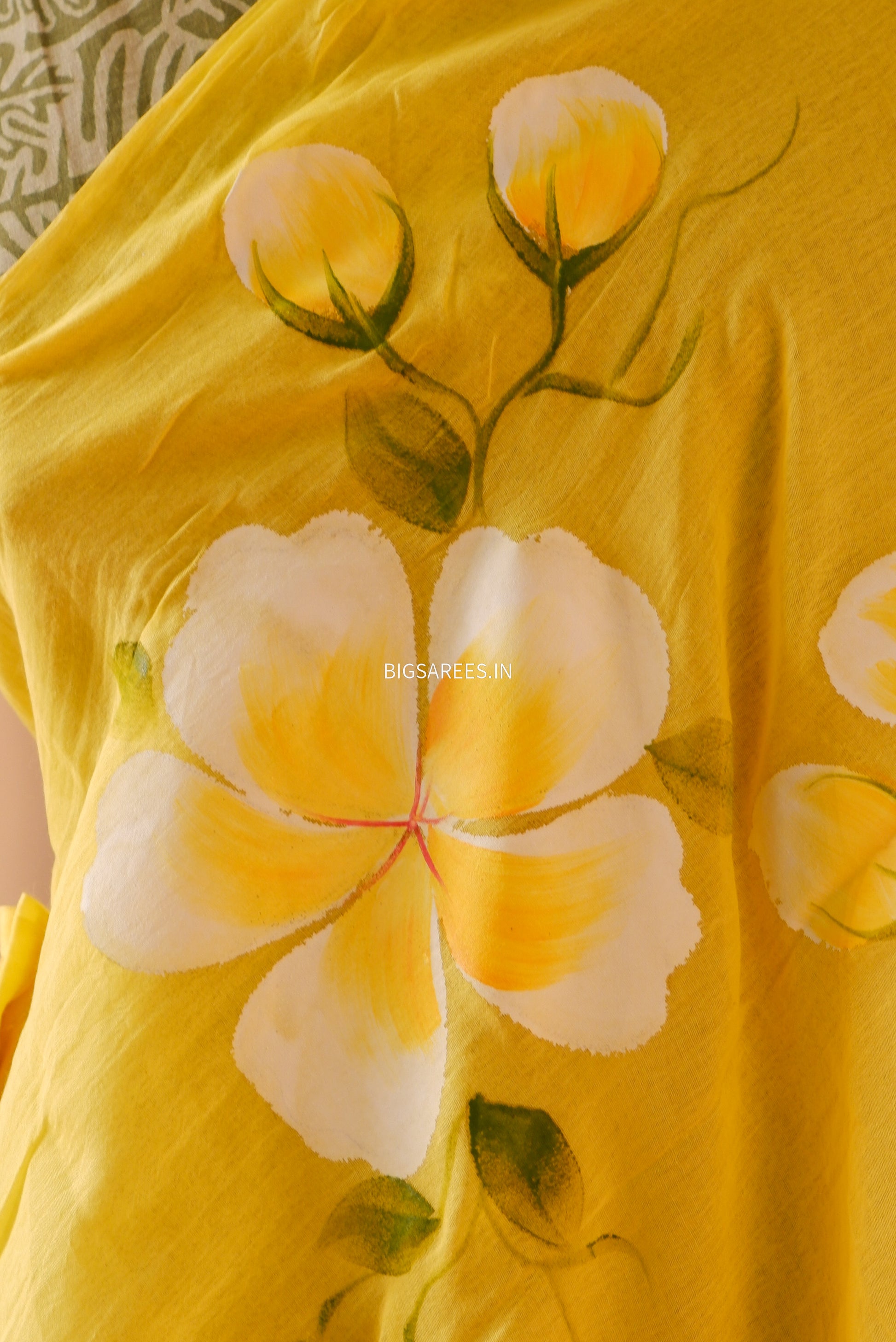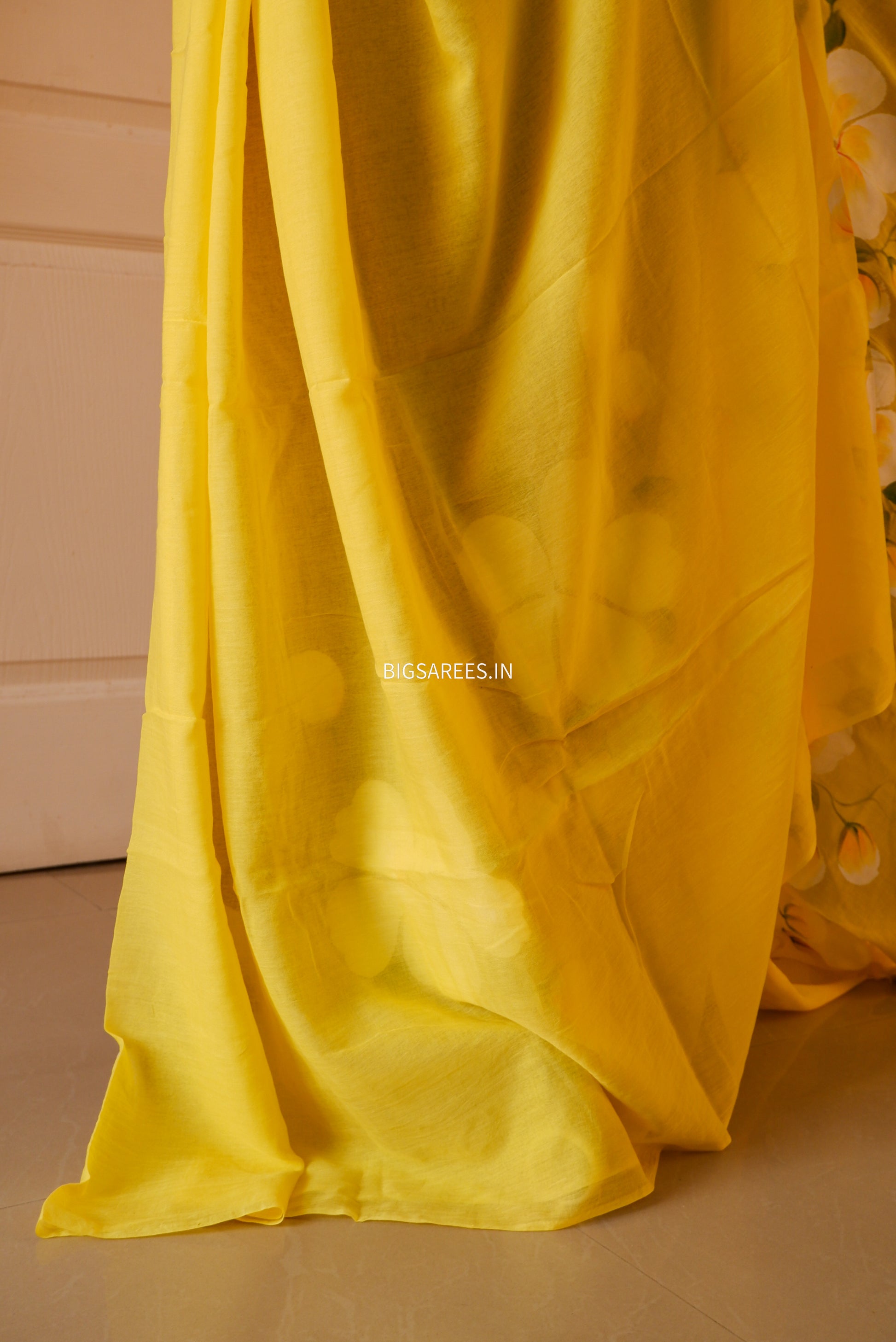 Hand Painted Mul Cotton Saree with Blouse | Yellow