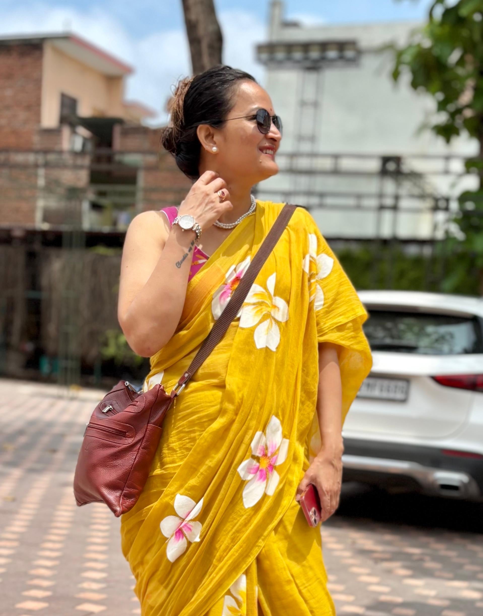 “Beautiful, Very Light Weight Very Very Soft Hand Painted Mul Cotton Saree. Accessorized With Tessels.”