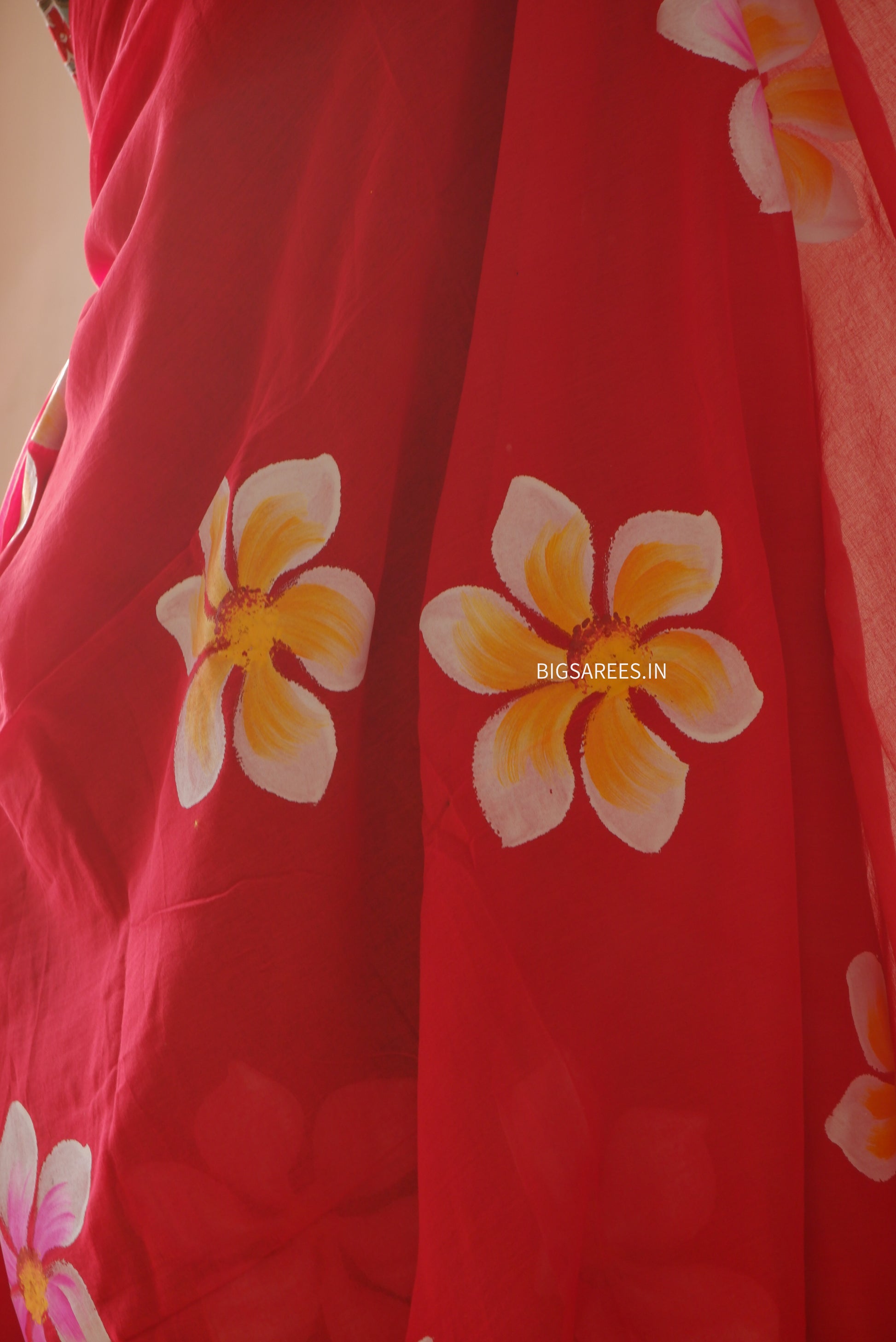 Hand Painted Mul Cotton Saree with Blouse | Red