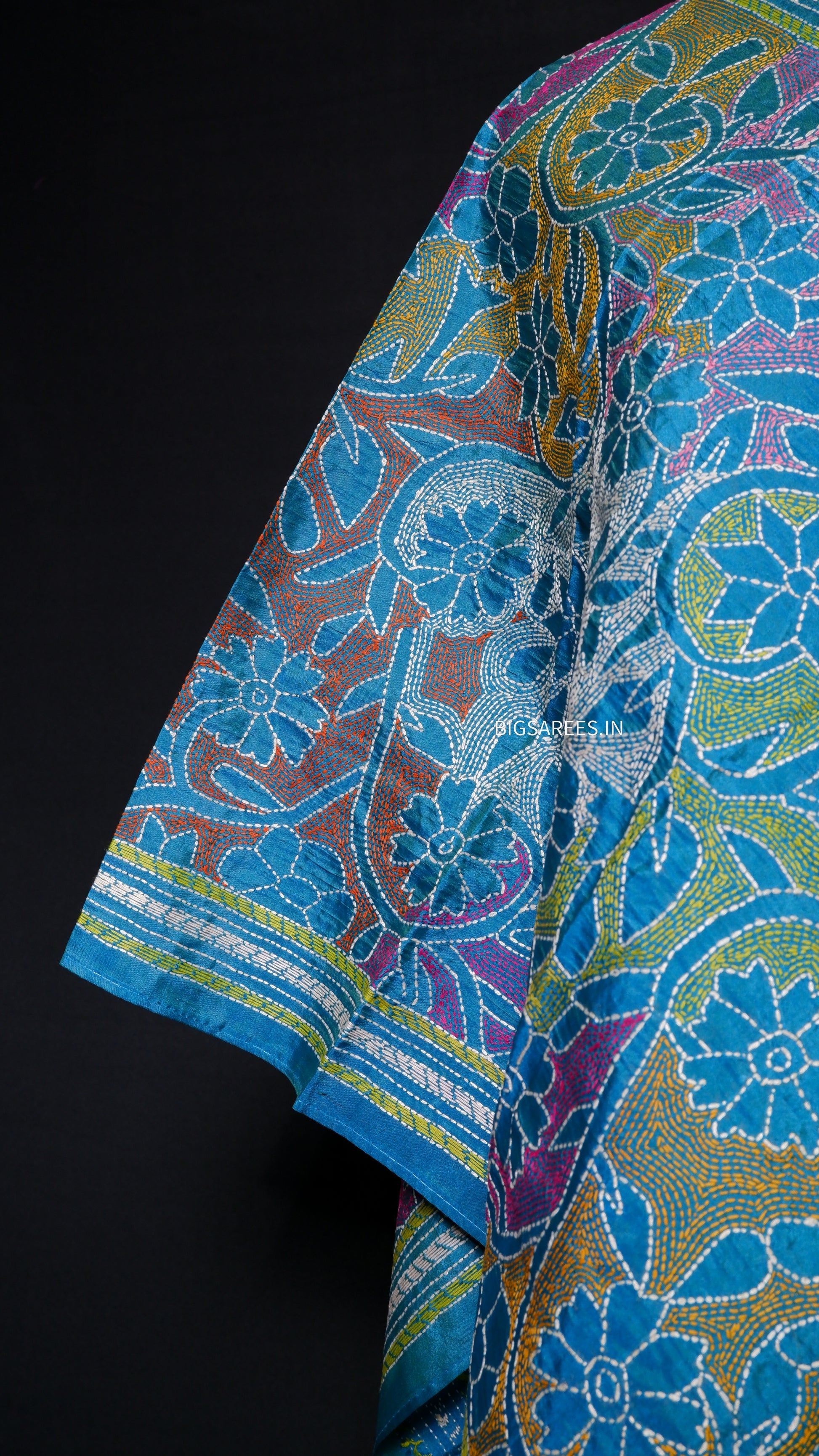 Kantha Art Silk Stole | Dual Tone(Blue - Green) | 22" |