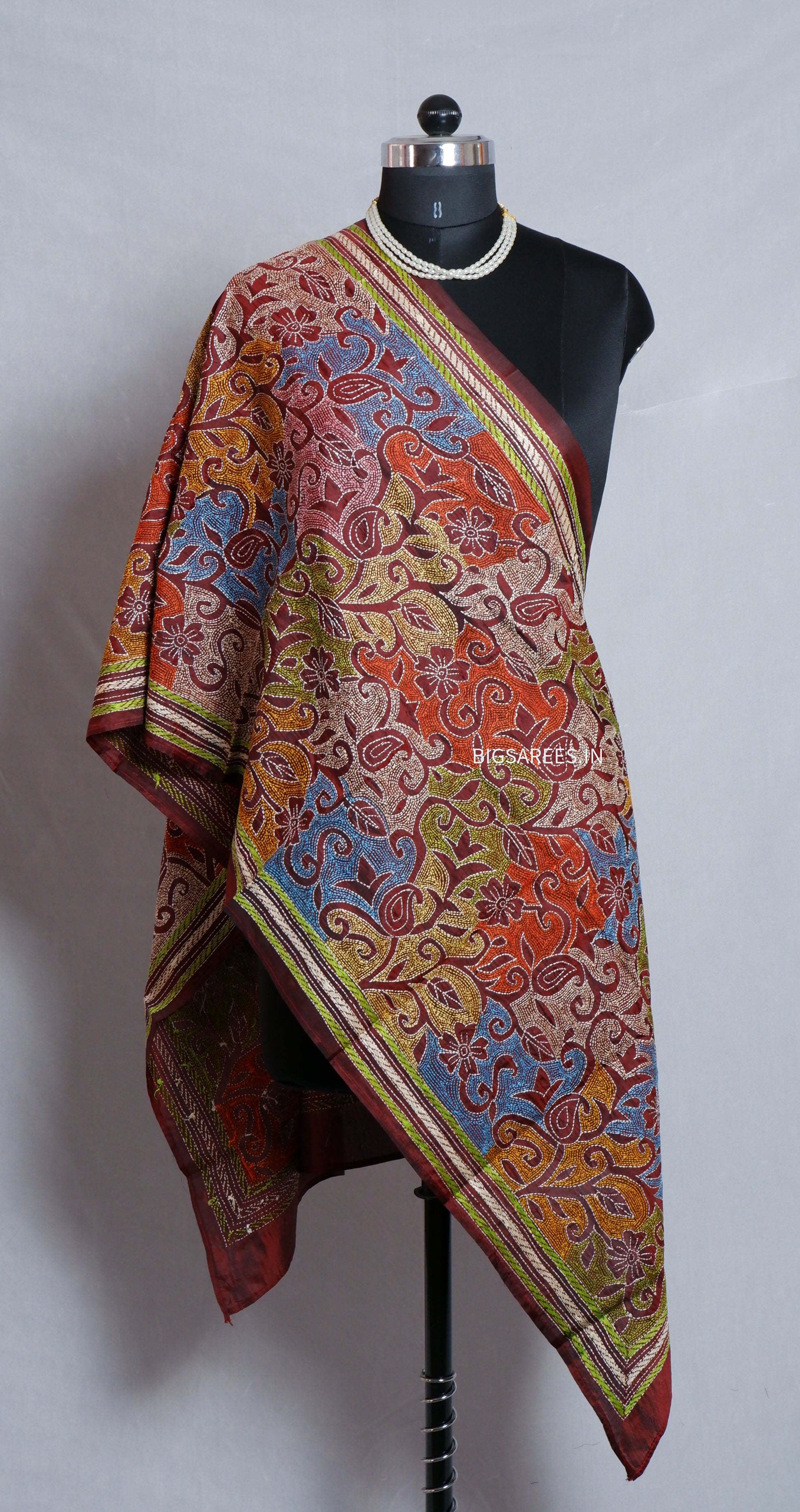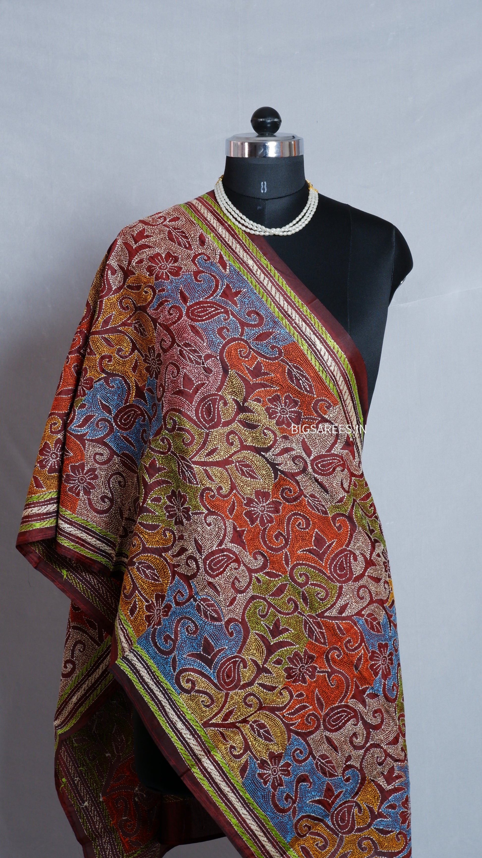 This Art Silk Stole isn’t just fabric it’s a story stitched by skilled hands. The delicate Kantha embroidery adds subtle charm to any outfit, whether you’re keeping it casual or dressing up. Lightweight, soft, and easy to drape, it’s the kind of piece you’ll reach for again and again.