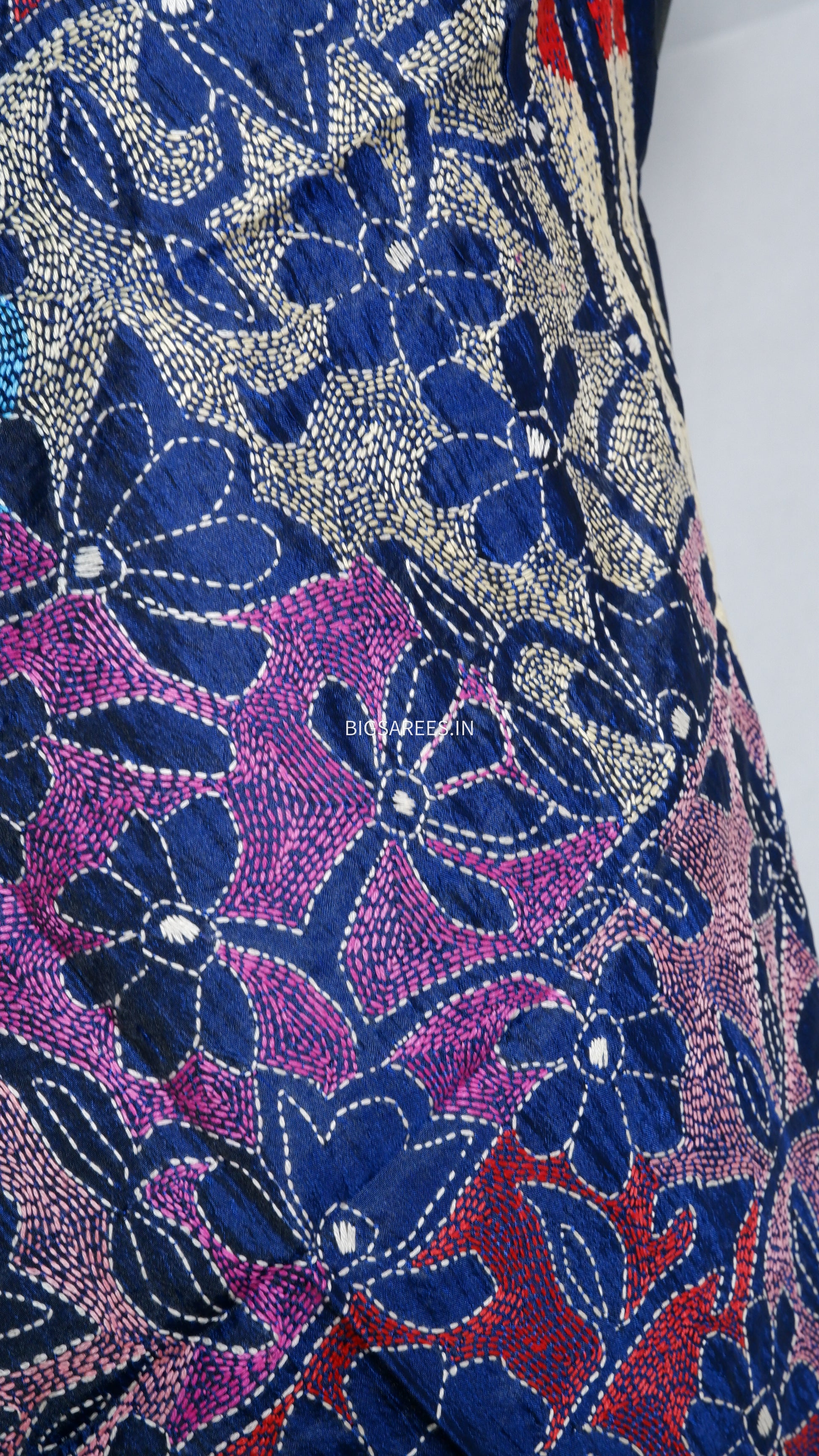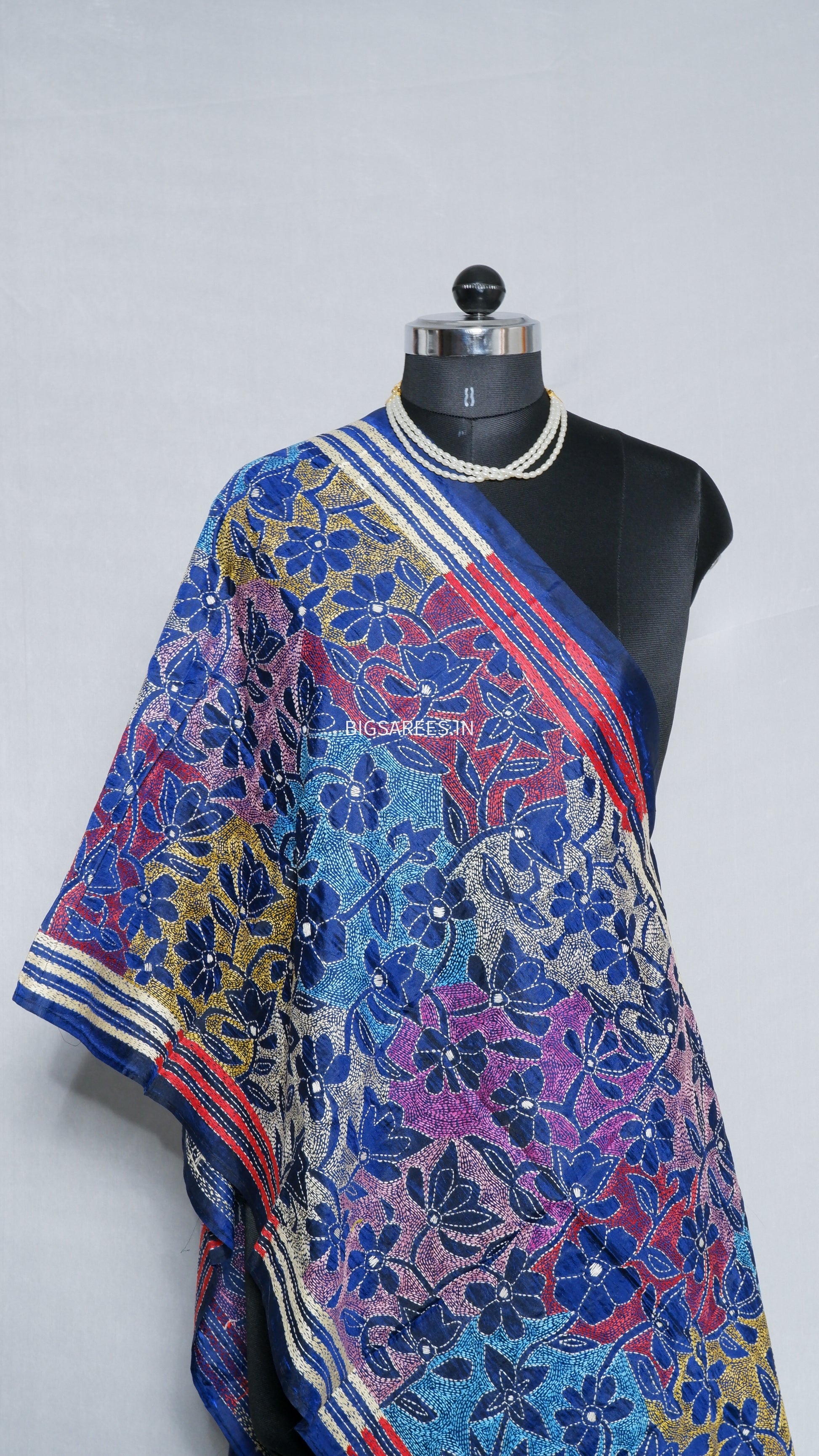 Kantha Art Silk Stole | Navy Blue | 22" |