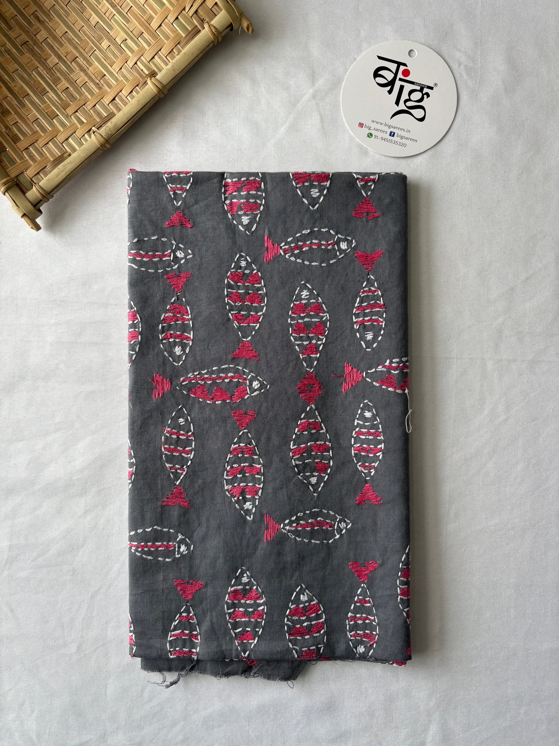 “Kantha stitch hand embroidered premium quality papaji fabric pure cotton Blouse piece full 1 mtr"