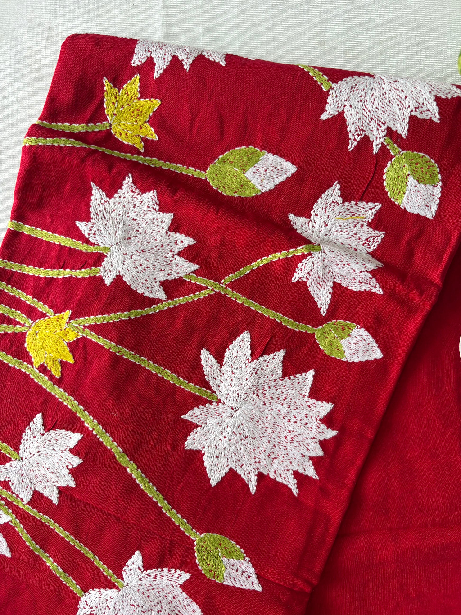 Kantha Hand Embroidary Full Work Pure Cotton Dupatta- Red “36”