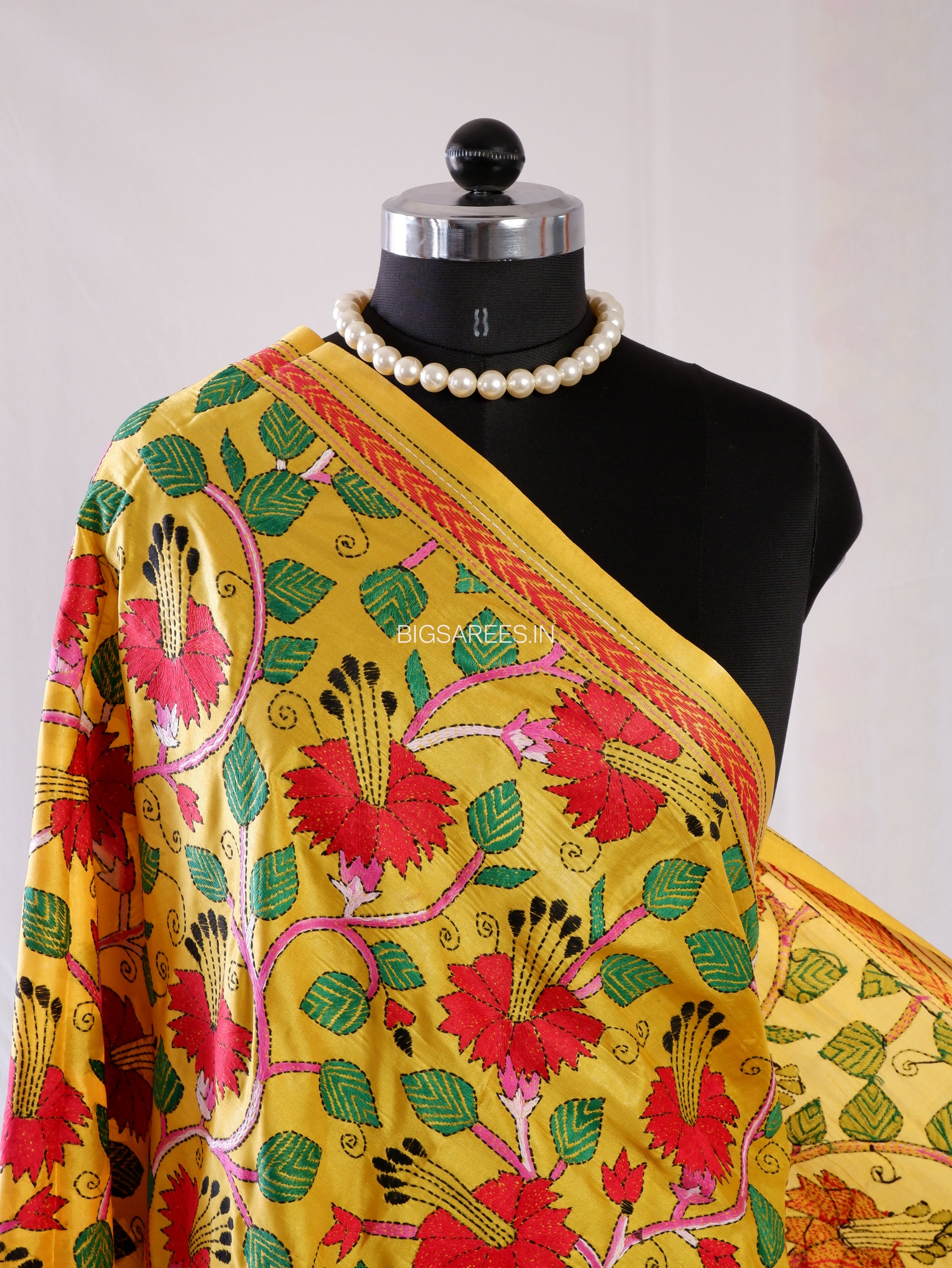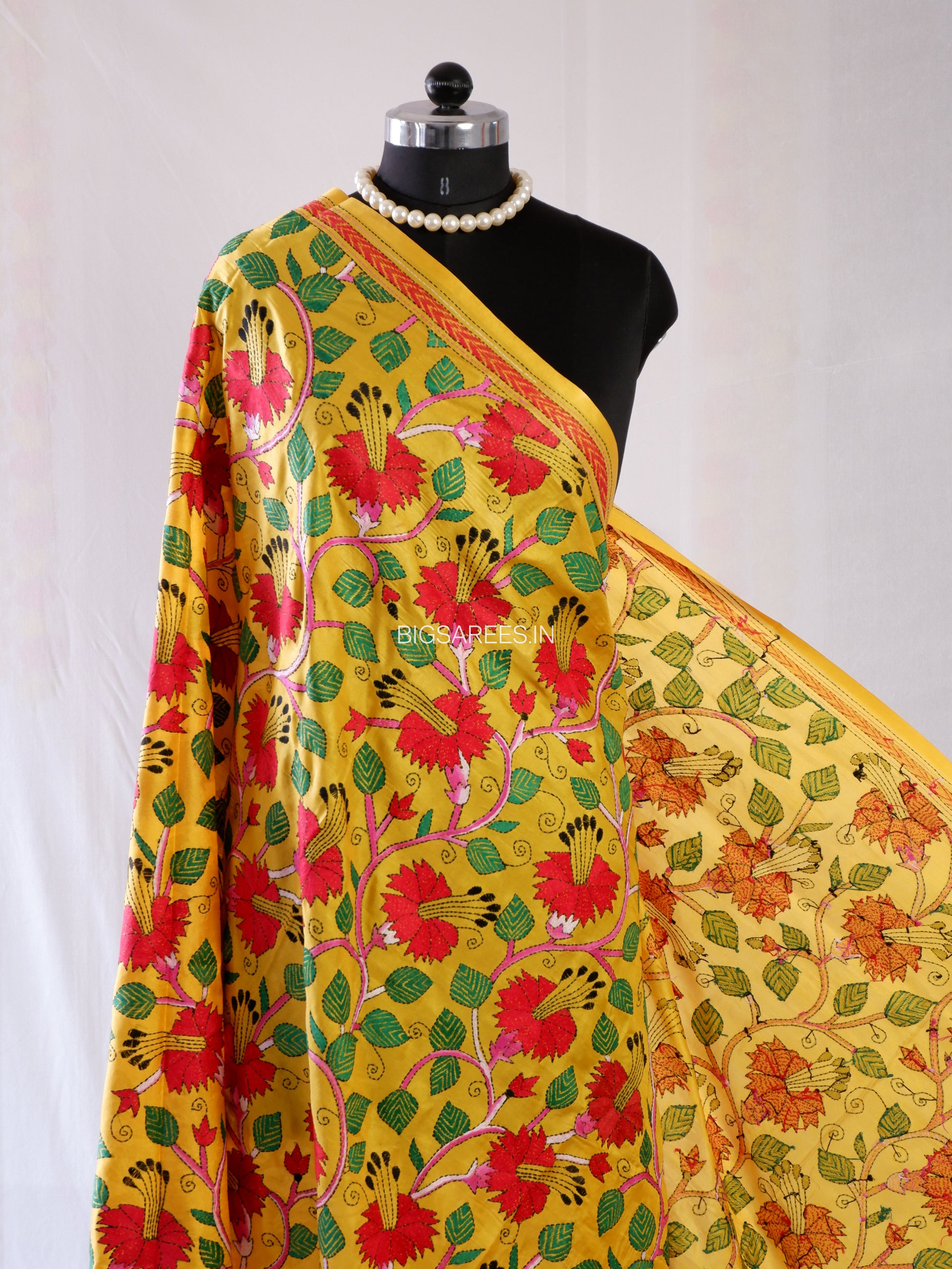 Kantha Hand-Embroidered Dupatta | Blended Bangalore Silk | Full Work | Yellow