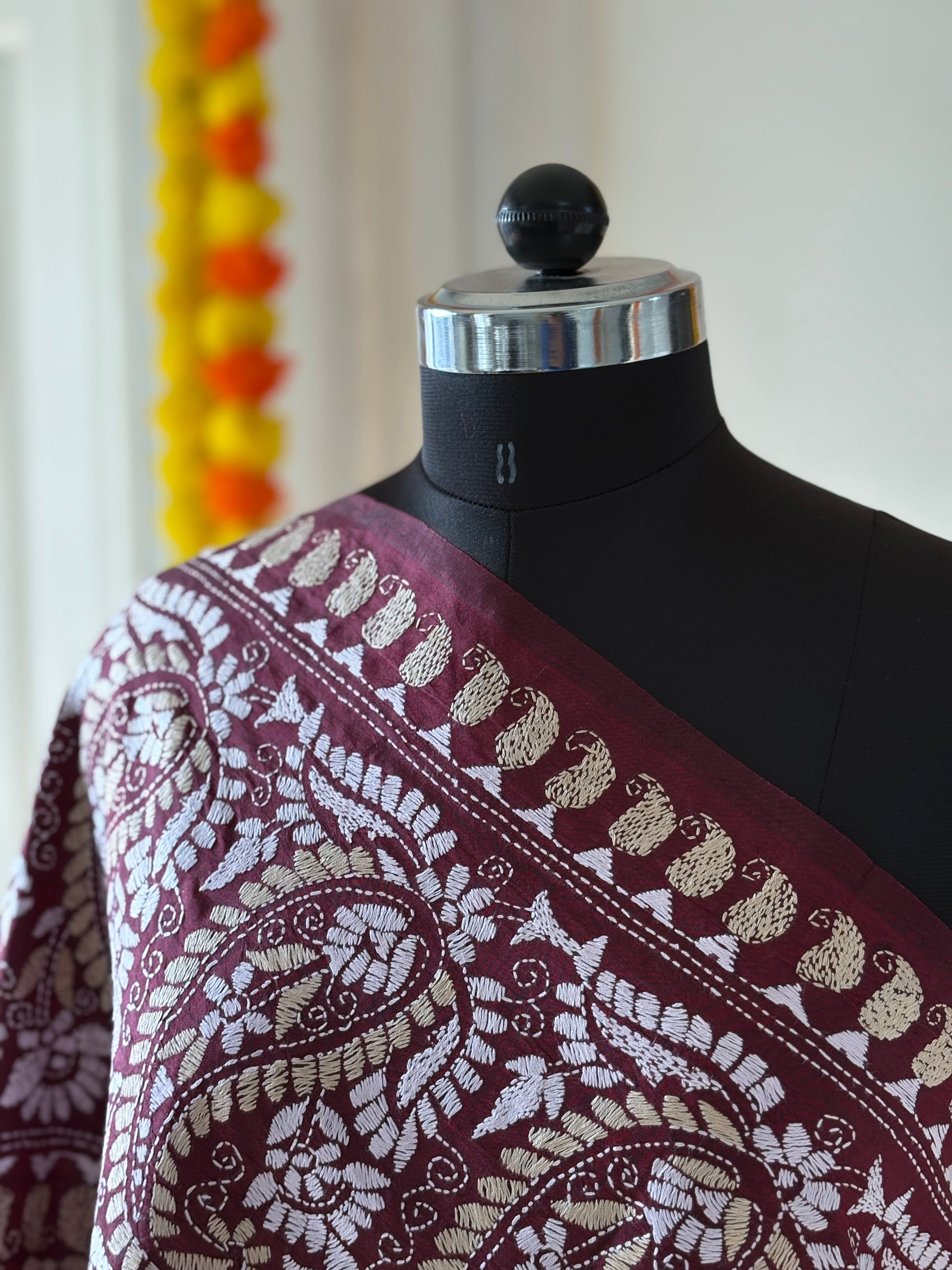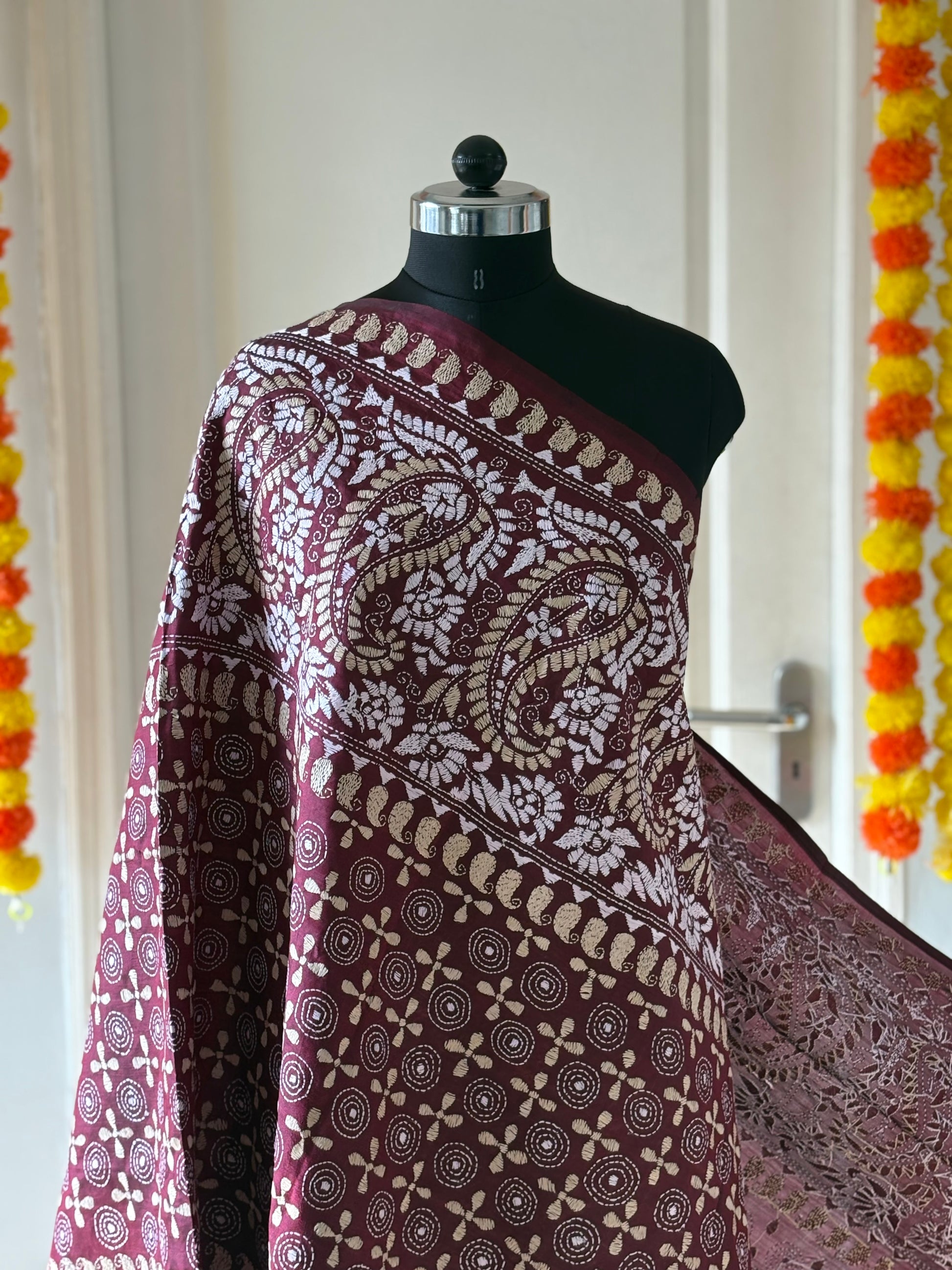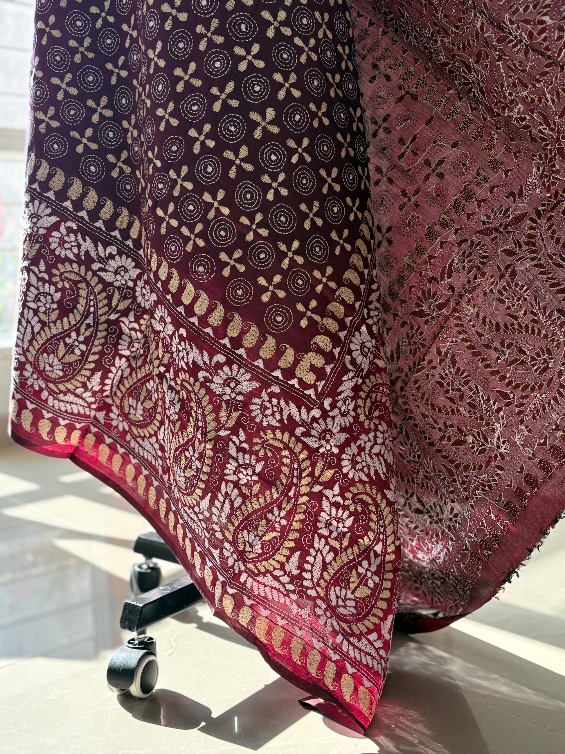 Kantha Hand Embroidary Full Work Pure Banglore Silk Dupatta. (With Silk Mark)