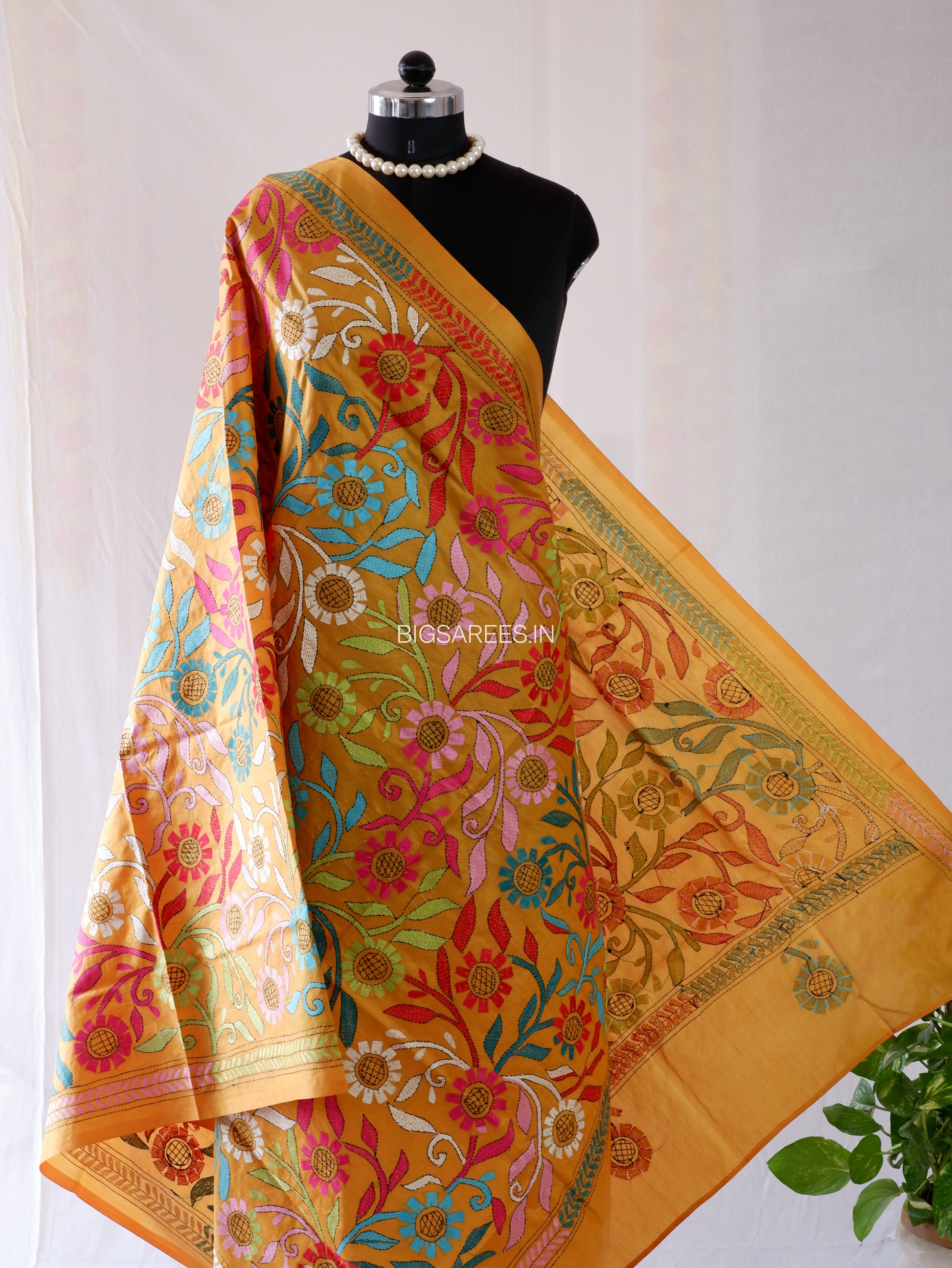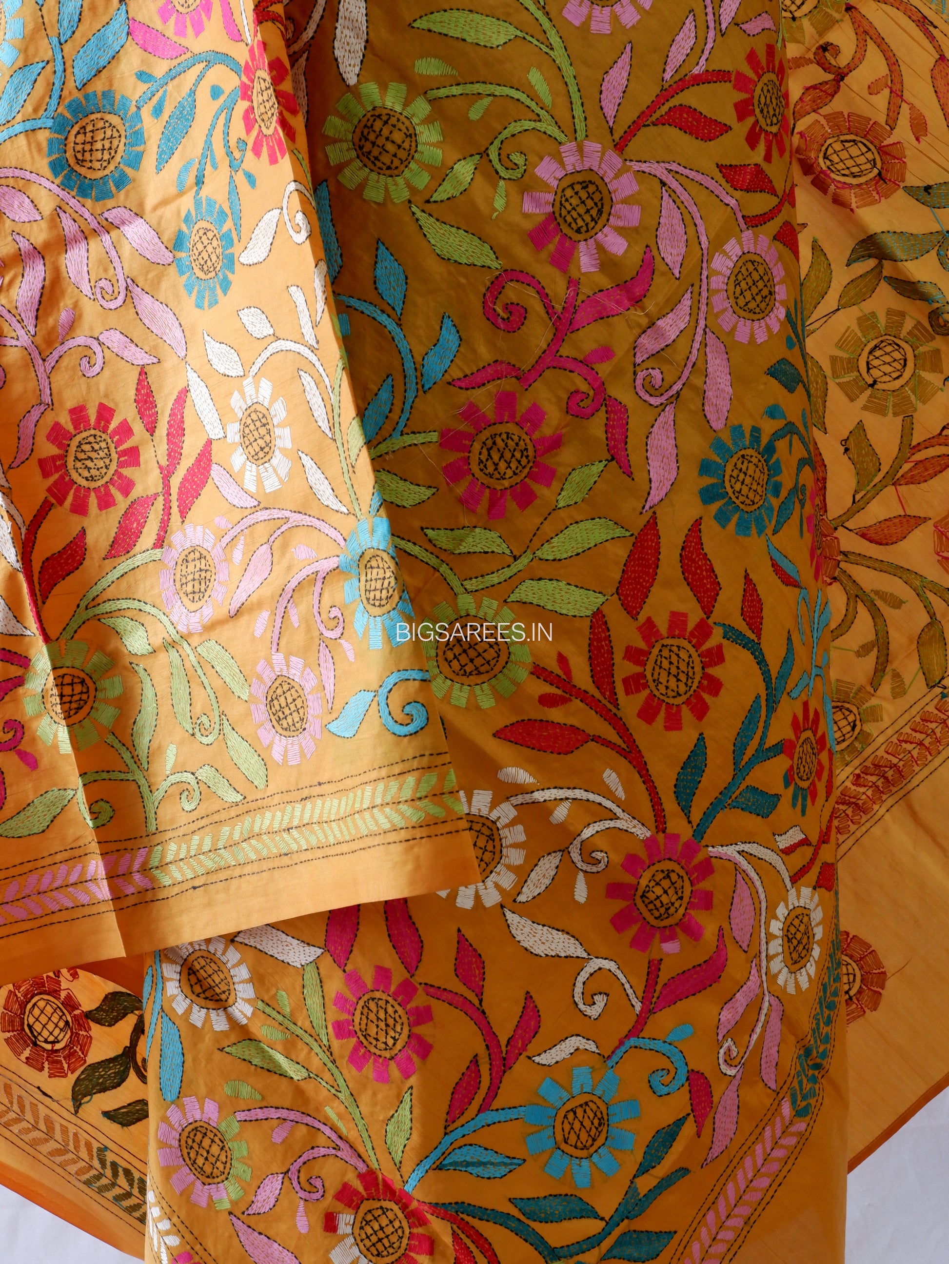 The natural sheen of pure silk paired with the detailed Kantha work brings depth and elegance to the drape, making it perfect for festive occasions as well as refined everyday styling.