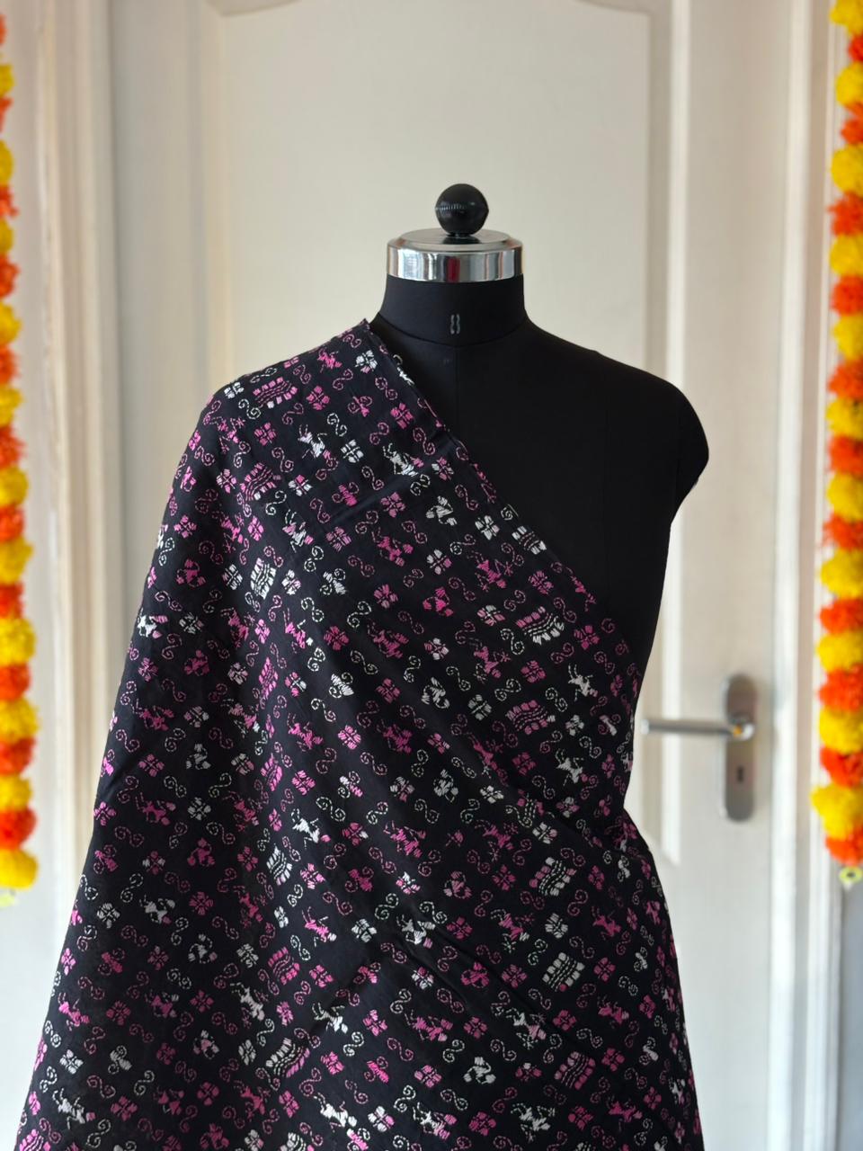 Kantha Hand Embroidary Full Work Pure Cotton Dupatta-Black “36”