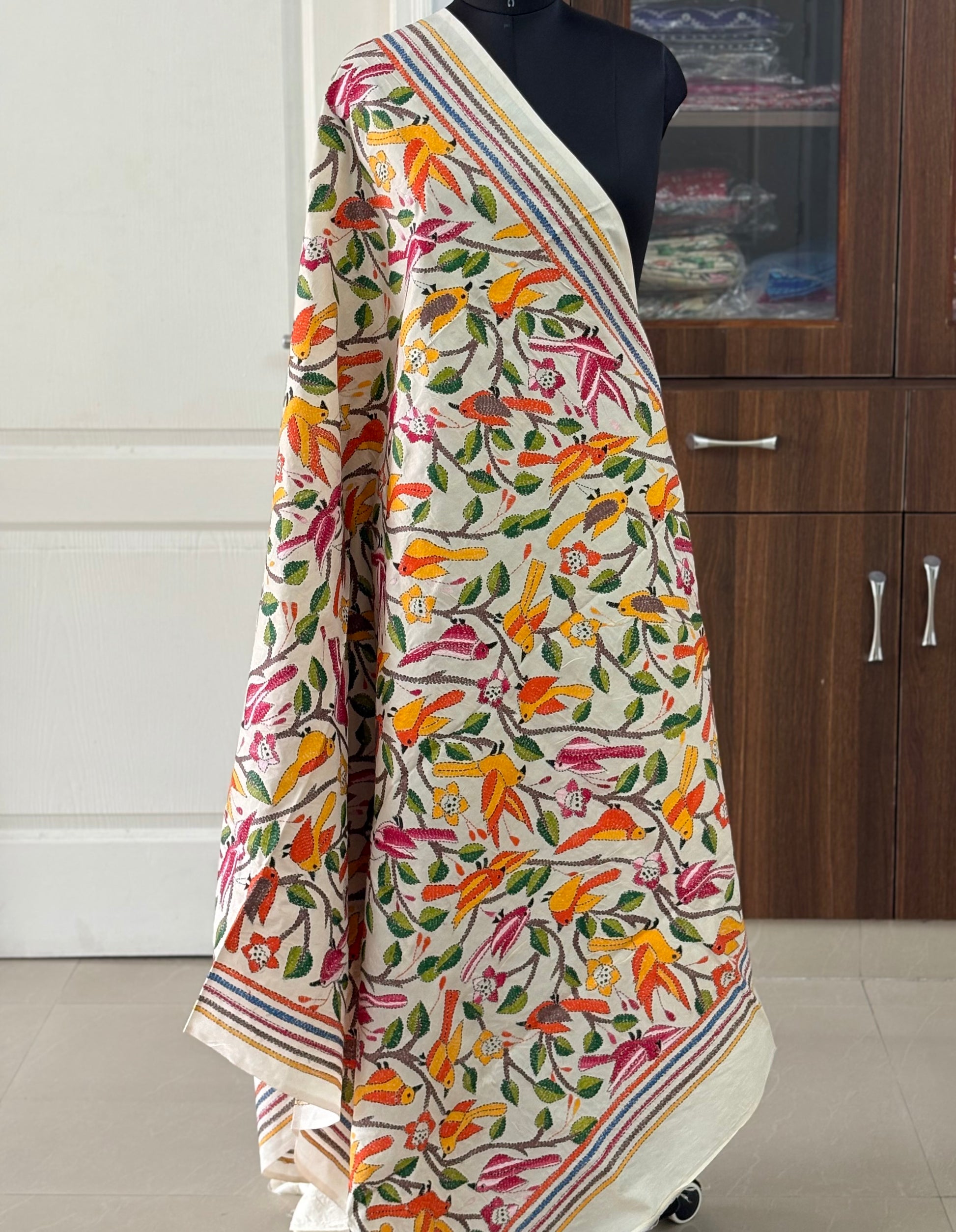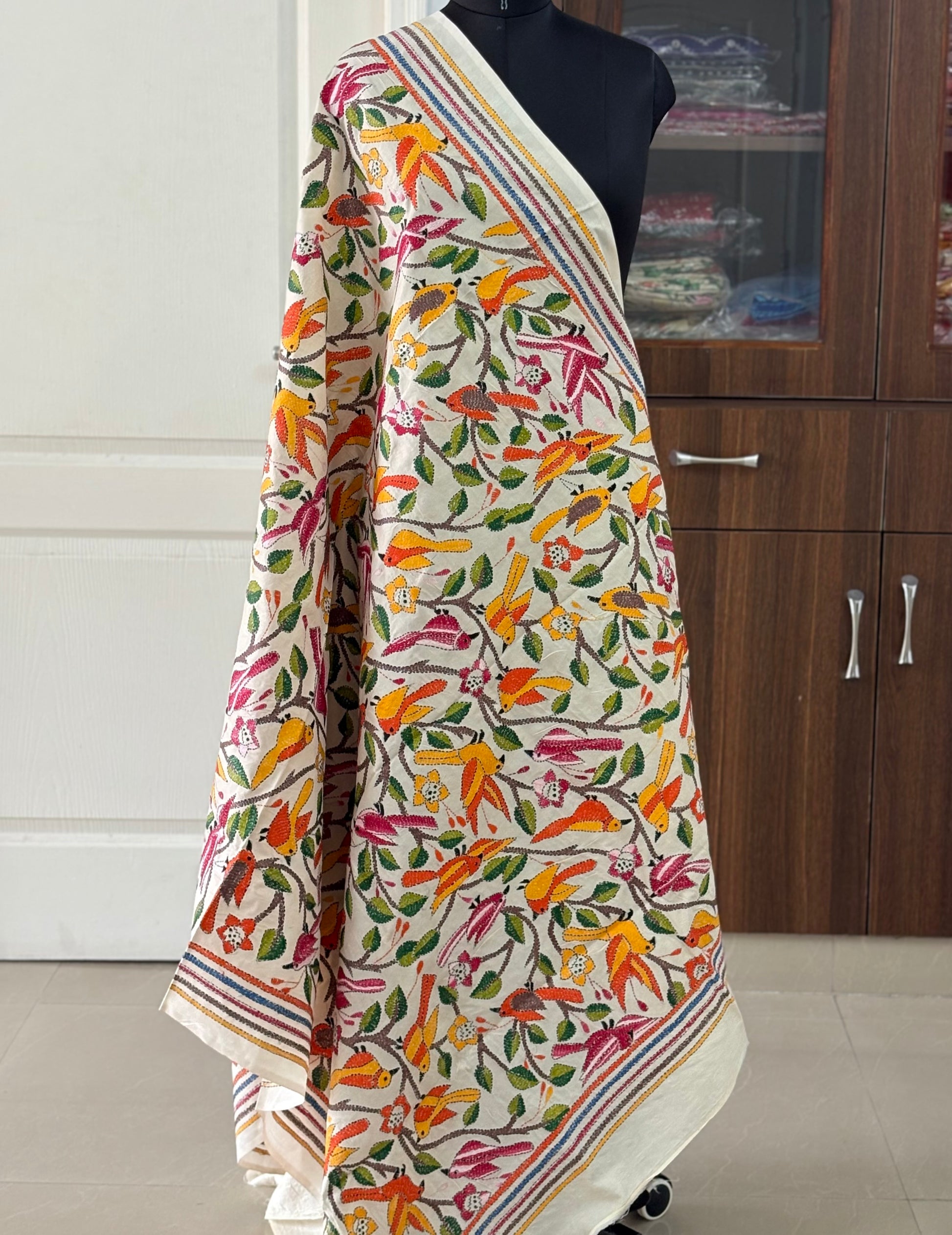 “Kantha Hand Embroidary Full Work Semi Tusshar Silk Dupatta.