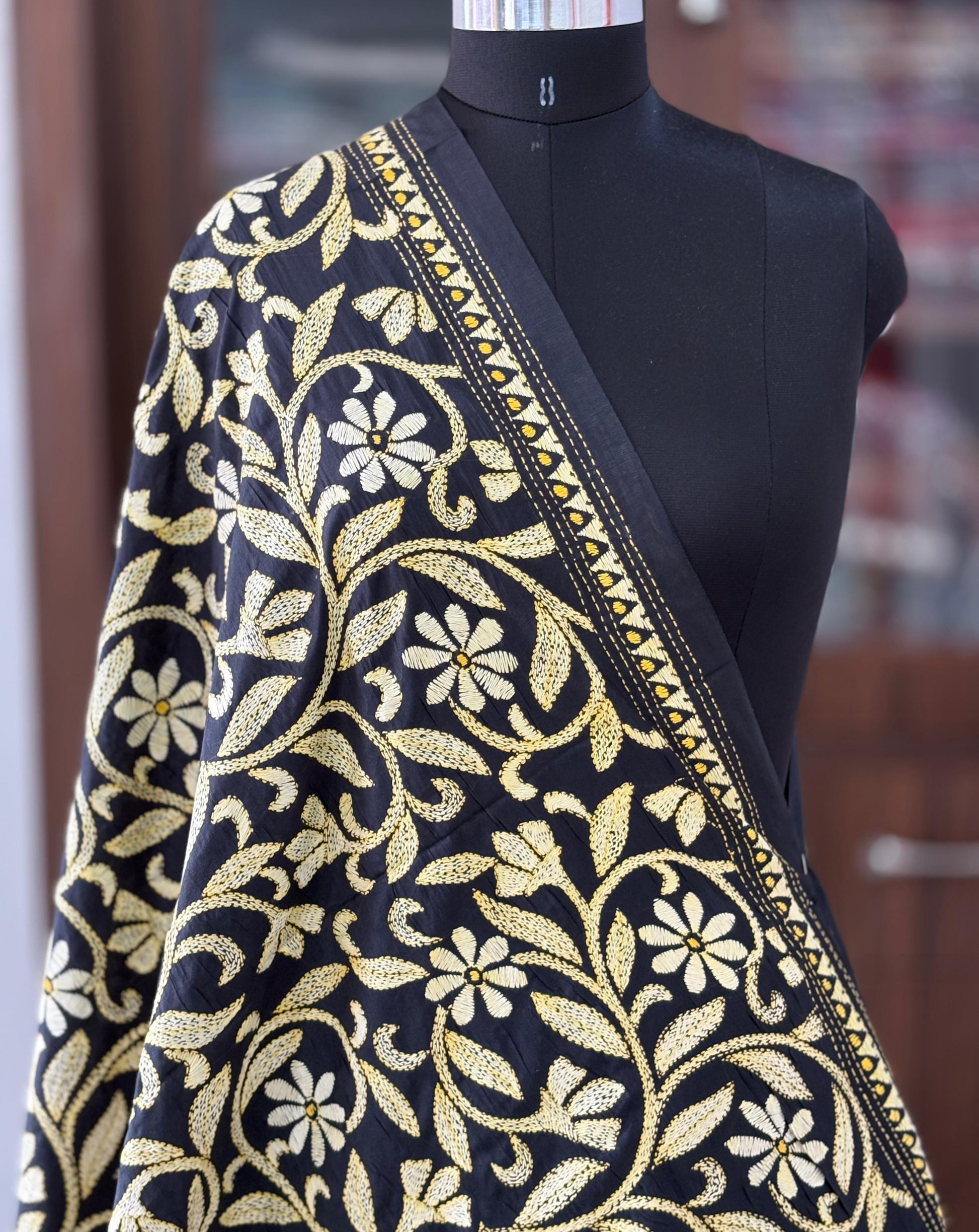 “Kantha Stitch Hand Embroidary Full Work Blended Banglore Silk Dupatta.