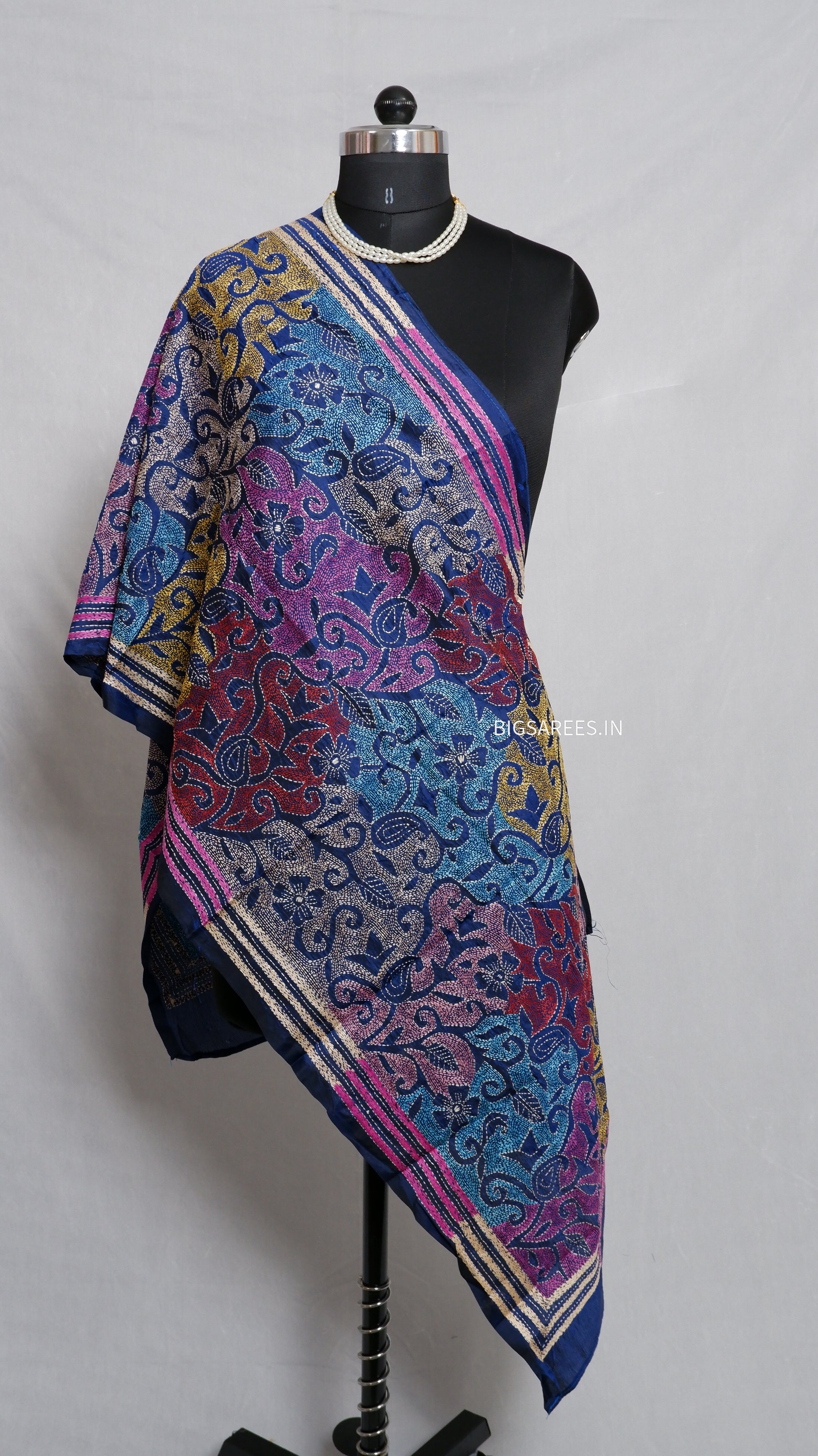Kantha Art Silk Stole | Royal Blue | 22" |