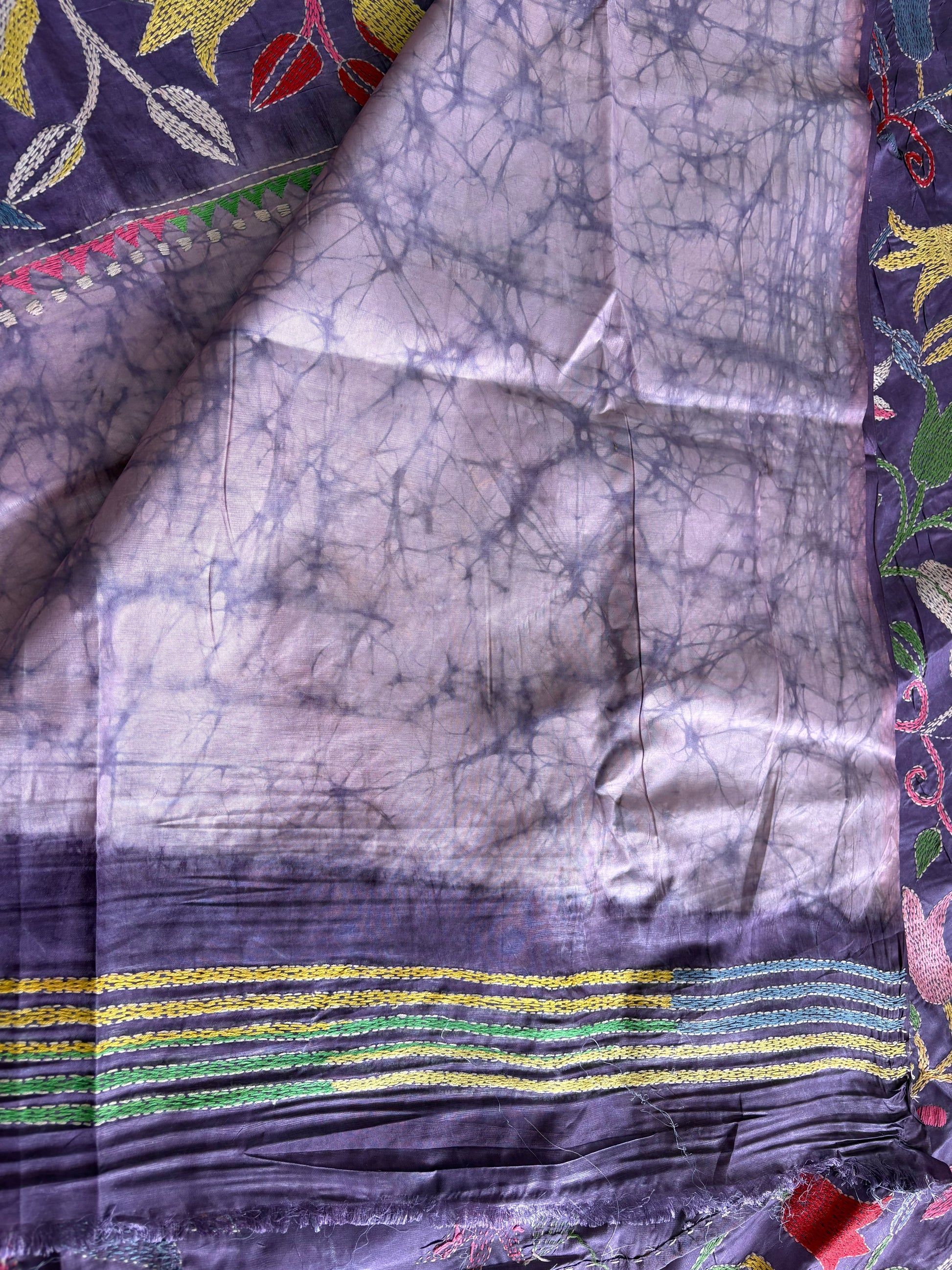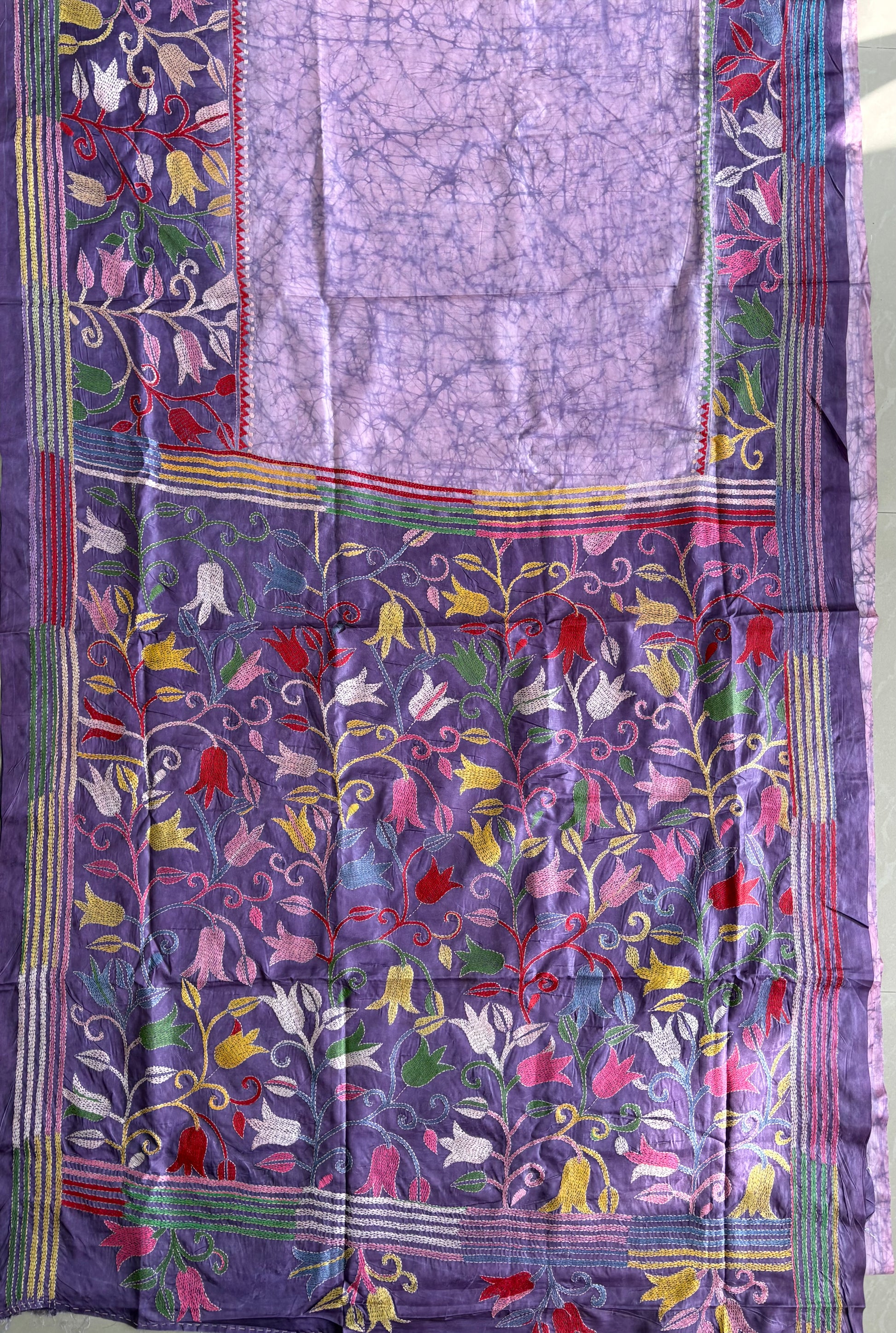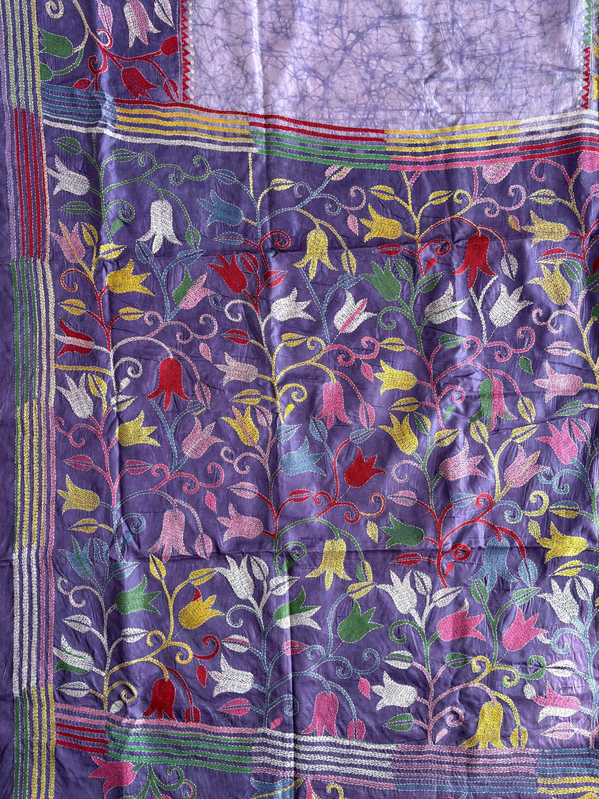 “Kantha Hand Embroidered Blended Banglore Silk/art Silk Saree With Blouse