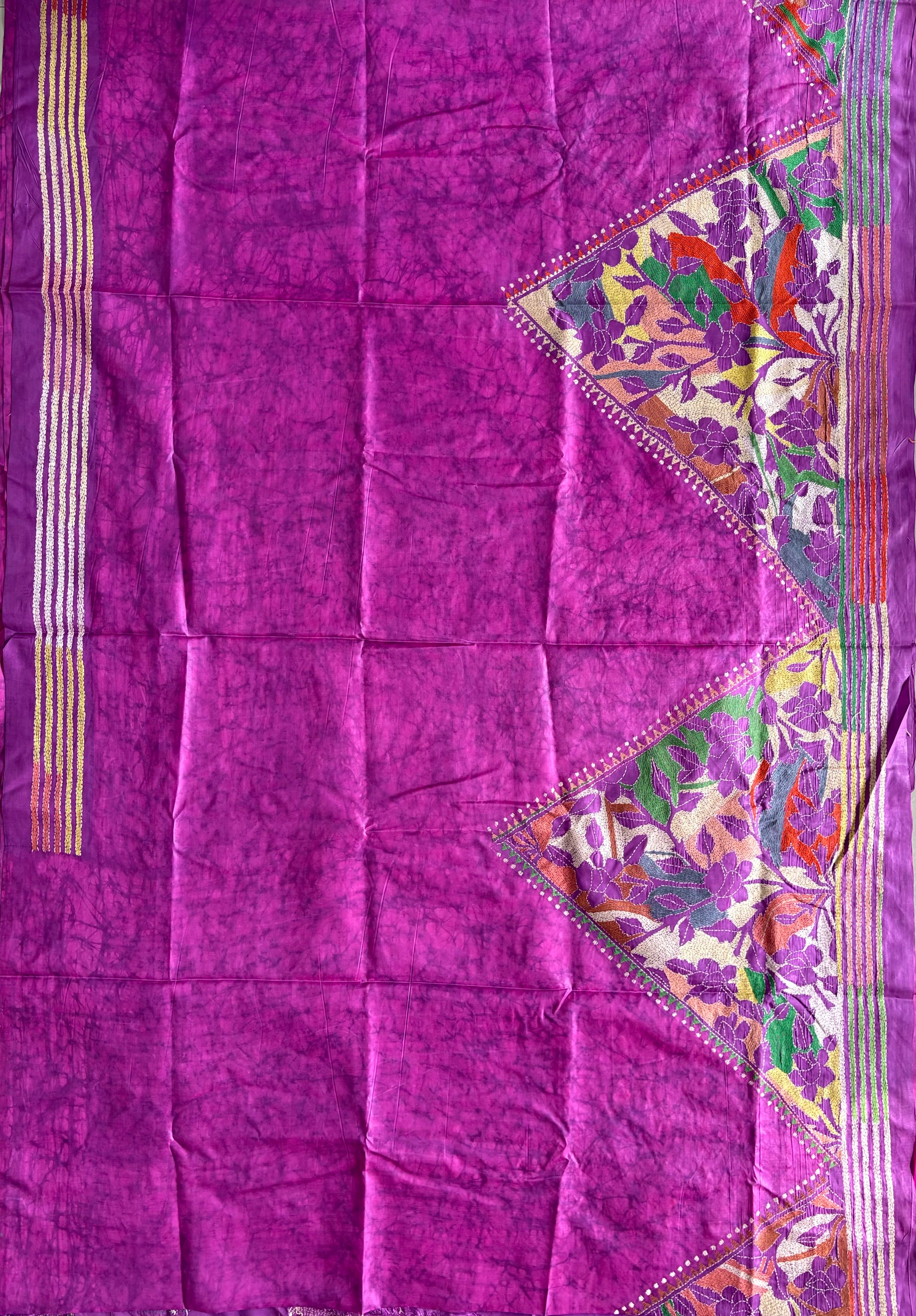 “Kantha Hand Embroidered Blended Banglore Silk/art Silk Saree With Blouse