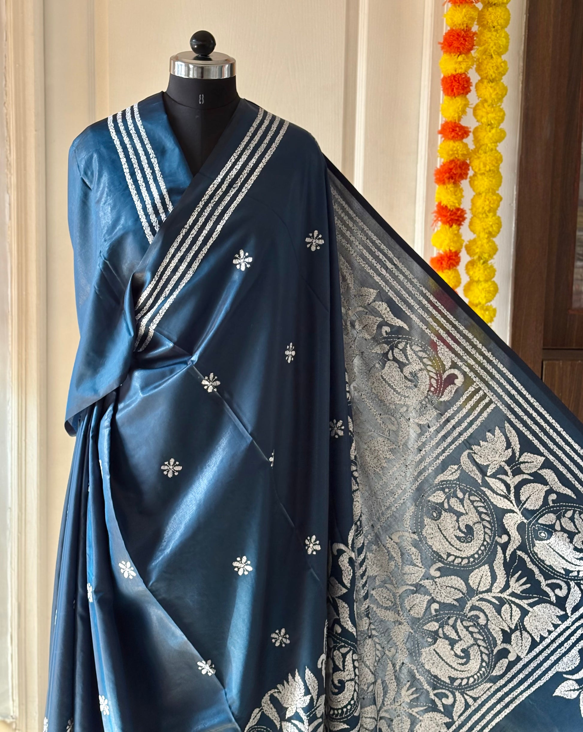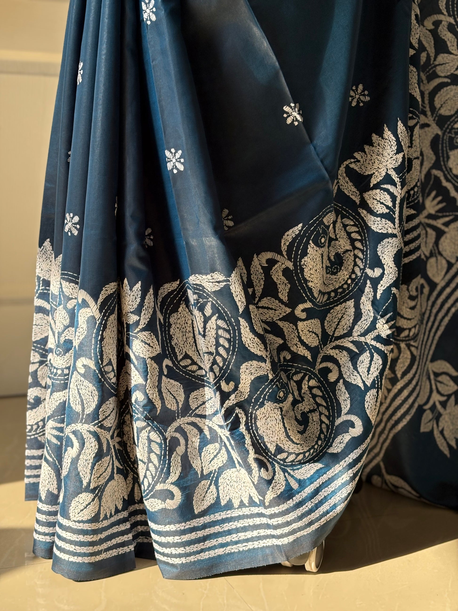 It Has Running Blouse With Katha Work. This Is Saree For Generations. Each Piece Takes 6-8 Months To Create.