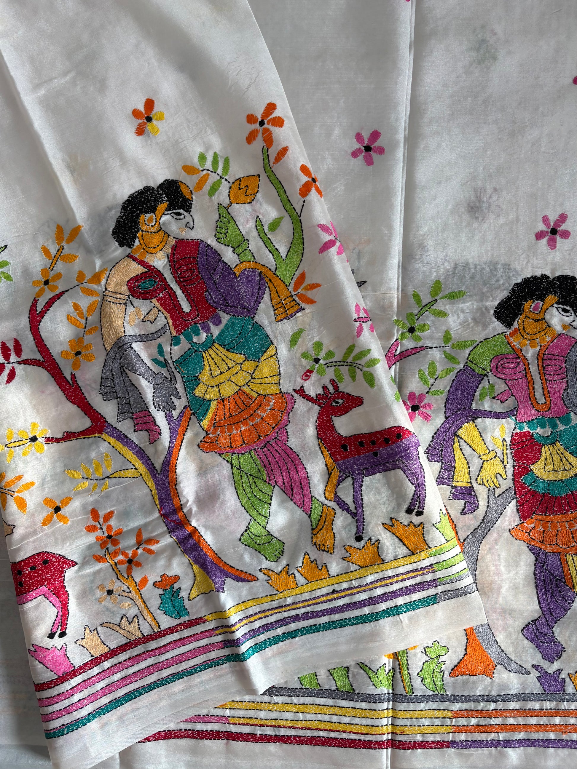 “Kantha Hand Embroidered Blended Banglore Silk/art Silk Saree With Blouse