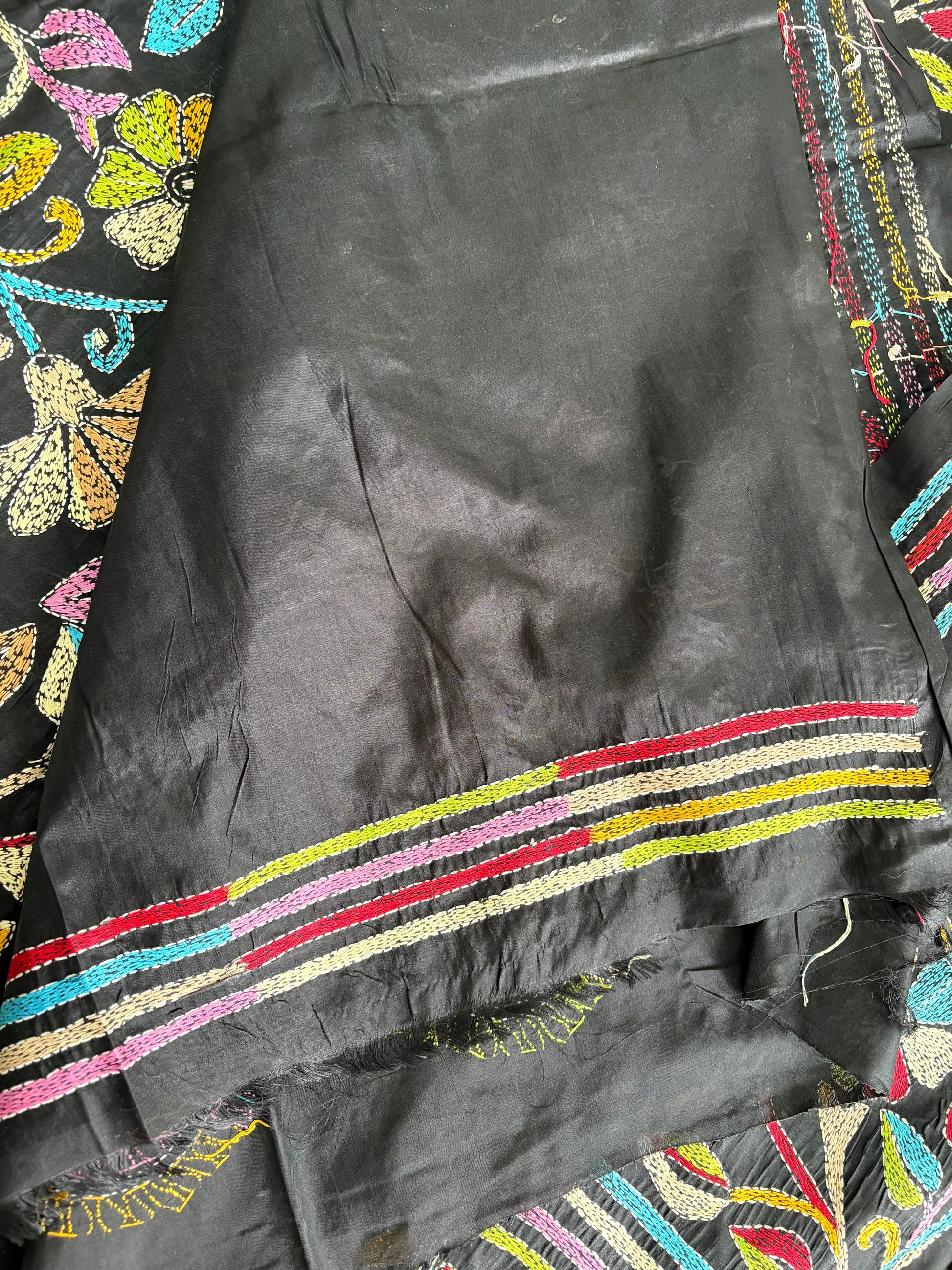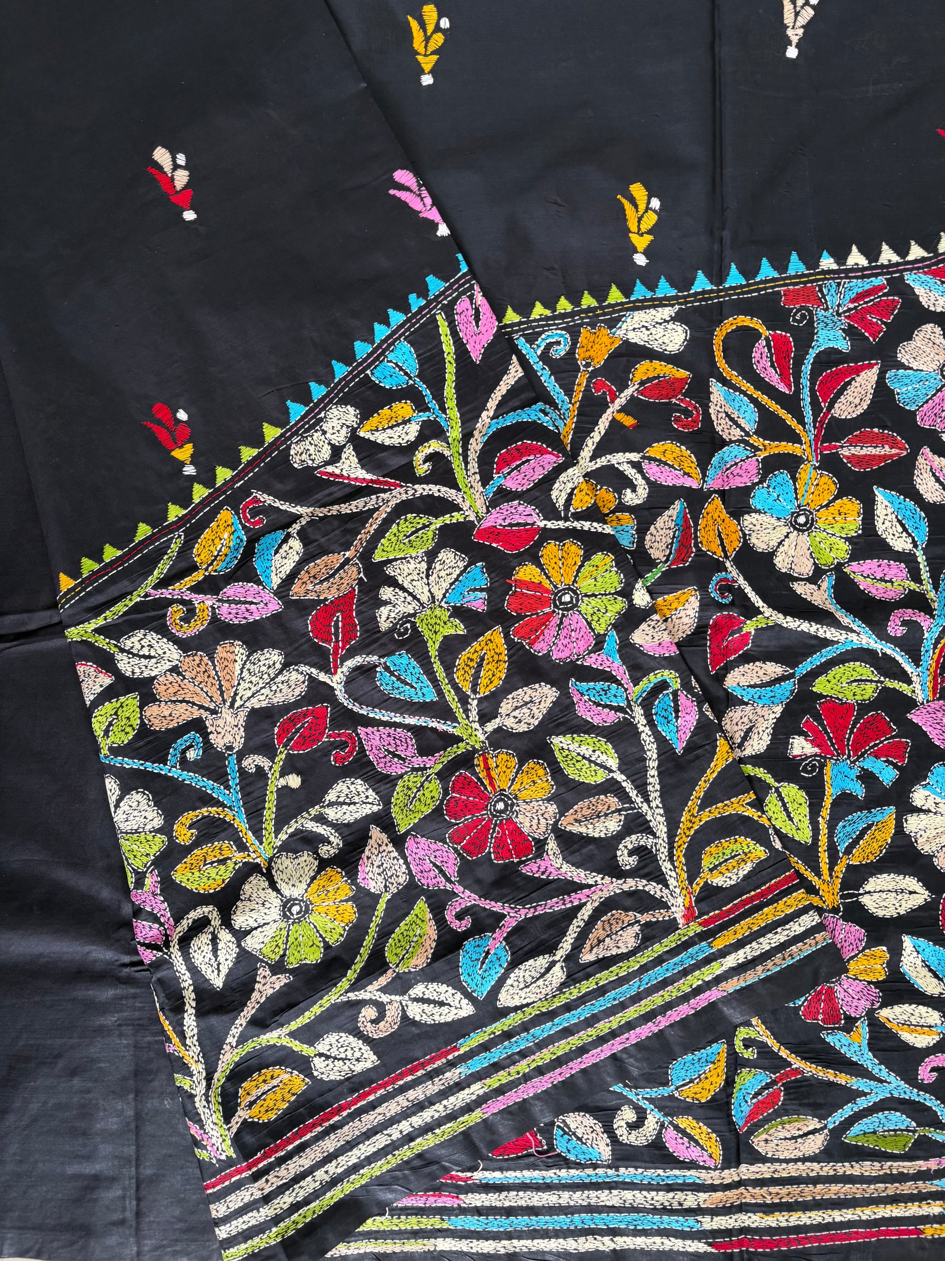 “Kantha Hand Embroidered Blended Banglore Silk/art Silk Saree With Blouse