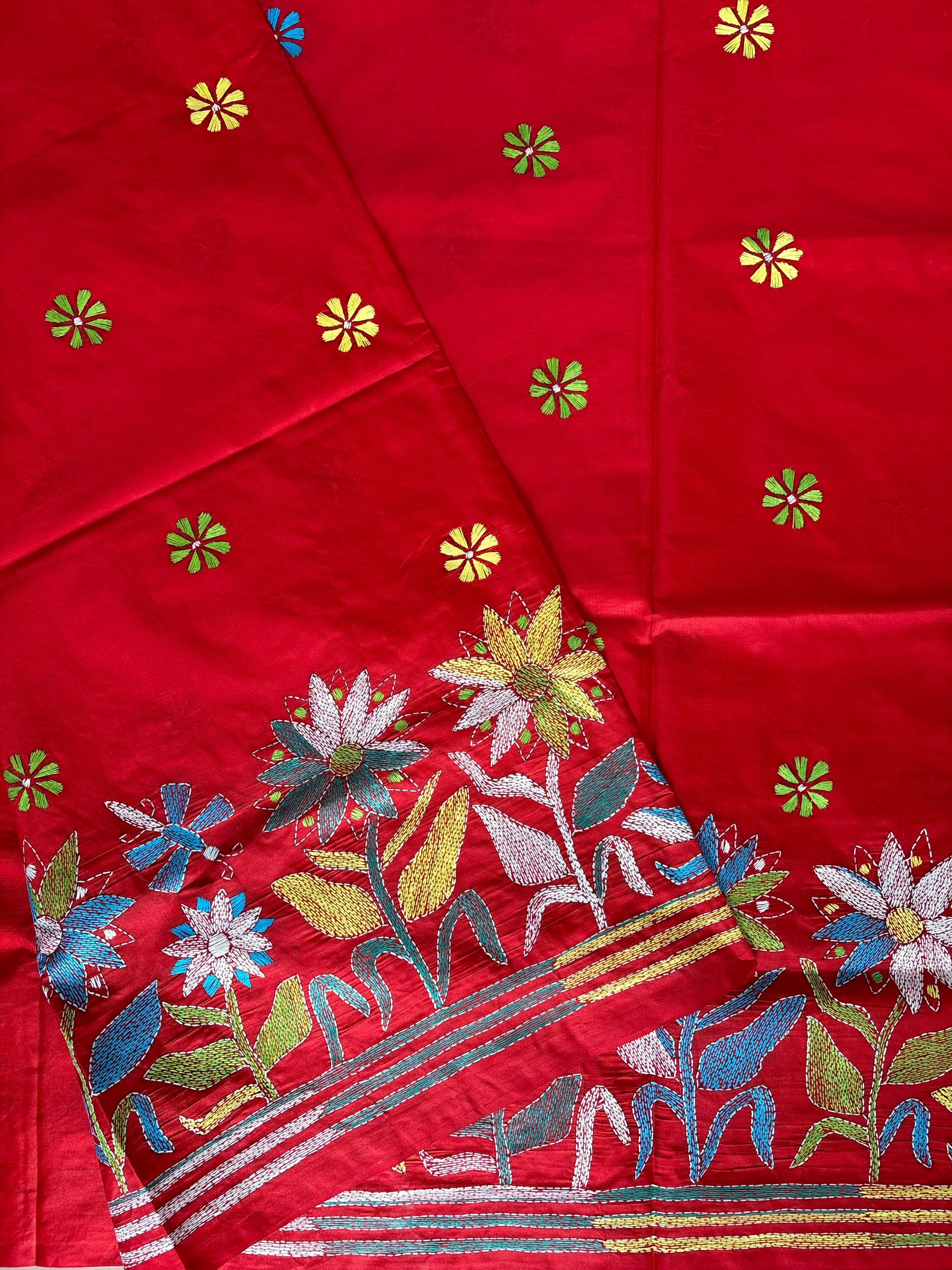 “Kantha Hand Embroidered Blended Banglore Silk/art Silk Saree With Blouse